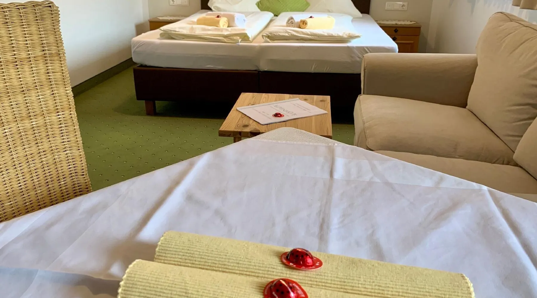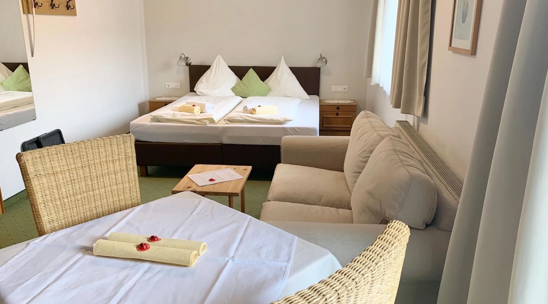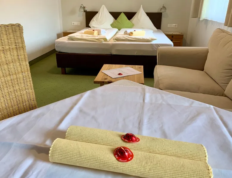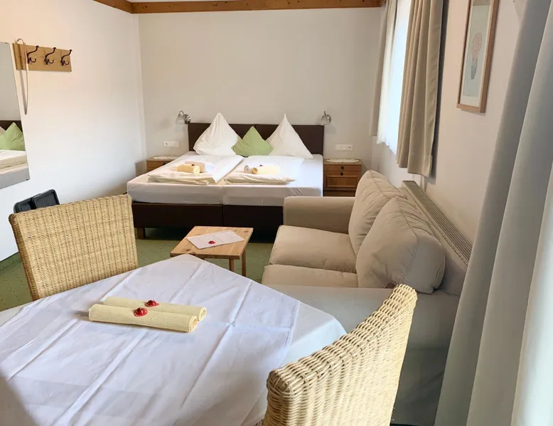 ED Refnr. 2765441 The studio has a balcony or a terrace. This studio with around 33m² of living space is ideal for two people, providing cosy accommodation with a combined living room and bedroom with a double bed and dining corner. There is also a separate little kitchen that is fully-equipped, a shower and WC, satellite TV and a hairdryer. Wireless Internet access is available throughout the house. Children up to two years old in a cot stay for free. House information: Altitude above sea level: 824 m; Bathrooms: 1 Sleeping facilities: Number of double beds (1.80 m width): 1 Living area: Satellite-tv Bath/WC: Hairdryer; Shower; Sink; Toilet Kitchen: Coffee machine; Freezer; Fridge; Oven; Stove; Water boiler Other: Non-smoking object; Owner lives on the property; Vacuum cleaner; Wifi Extra costs: - towels / bed linen: included in price . - Final cleaning: once per object Costs amounting to 50 EUR (Mandatory). - energy costs: included in price . - dishtowels: included in price . - Internet: included in price . Additional information: - Distance to next cross-country skiing trail: 0.10 km