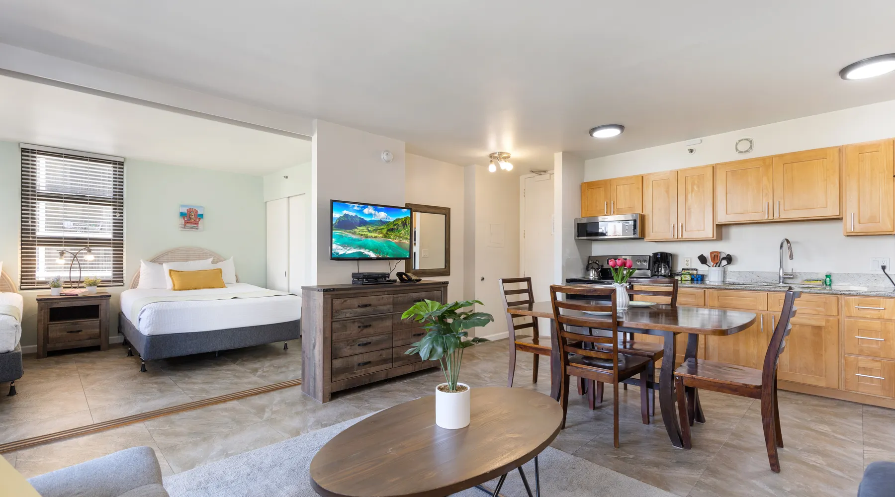 Waikiki Banyan Tower 1 Suite 802Light & Airy 8th Floor Ocean View Condo with Lanai and FREE Parking! The pool and all associated amenities will be closed starting April 7, 2025, for an estimated duration of 10 to 14 months to accommodate the Recreation Deck renovation project. This beautiful 8th floor condo has a lovely city view, a glimpse of the ocean, and is only 3 blocks away from the World-Famous Waikiki Beach! This spacious condo has a fully functioning kitchen which includes a full-sized refrigerator, stove-range, microwave, coffee maker, and all the kitchen supplies you will need to have an at home cooking experience while on vacation. This kitchen is complete with a dining table and chairs to make great family memories during your stay! Please sit back and relax in the airy living area that includes a large TV and comfy sofa sleeper. The lanai includes lounge chairs and side table so you can enjoy a warm cup of coffee and watch the island sunrise! This unit has a great bedroom with 2 Queen Sized Beds and a large window to let in all the natural light. The bedroom can be made private by the sliding partition doors or left open for a very spacious room. A comfy sofa sleeper is built into the living room, so if you need extra beds, we've got you covered! The bathroom right off the bedroom includes all you need, storage, large countertop, and a beautiful marble stone shower/bath with a detachable shower head. This bathroom is the perfect place to wash away a great day spent exploring the beautiful city of Waikiki! High quality inflatable beds are available upon request in advance of your stay. Please contact us directly prior to your stay. This unit comes with FREE parking for one vehicle (saving up to $30 per day) , FREE Wi-Fi internet. There is A/C in the unit located in the living room. We hope you will take full advantage of all of the extras we provide for the ultimate vacation of your dreams!Koko Resorts at The Waikiki BanyanMost of our condos at Koko Resorts are located in the luxurious Waikiki Banyan, an ideal spot for any occasion in Hawai'i. Just a block from the famous Waikiki Beach, you can easily enjoy dipping your toes in the soothing ocean water, surfing, swimming, scuba diving, hula dancing, and exploring Hawaiian nightlife. The Waikiki Banyan is also close to top-notch dining options and shopping centers like the International Marketplace and Royal Hawaiian Shopping Center. For family fun, the Zoo and Aquarium are just around the corner, and public transportation is readily available for exploring Honolulu, conveniently located just outside the building. The Waikiki Banyan features a beautifully furnished lobby with Hawaiian decor, soothing waterfall sounds, and a koi pond. Enjoy coffee and breakfast at The Banyan Breeze, a local coffee shop, and stock up on local treats at the lobby's Mini Mart. The recreation deck includes a full-length pool, hot tubs, saunas, a tennis court, barbecue grills, and a children's playground. Koko Resorts offers additional amenities such as free parking for one vehicle, free Wi-Fi and fully equipped kitchens in each suite. Portable beds and cribs are available upon request, and each floor has a laundry room with provided detergent. With 24-hour security and an emergency guest assistance line, Koko Resorts ensures a safe and enjoyable stay. If the Waikiki Banyan condo isn’t available, feel free to inquire about other fantastic vacation rentals. Mahalo! **Please Note: The Waikiki Banyan strictly enforces the 6 foot parking height limitations. Please pay attention to the vehicle that you are renting to ensure that you will have parking inside the vehicle. Hawaii TAT: TA-051-731-8656-01 TMK: 1-2-6-025-005-0026 STR: #1358, Expires 5/3/2025 RA: 337244 ID: 428085 WB 802-1 Attractions: Cinemas Leisure: Scenic Drives, Sight Seeing, Walking Resort Amenities: BBQ Grills, Hot Tub, Near Beach (Short Walk), On-Site Coin Laundry, On-Site Parking, Play Ground, Sauna, Swimming Pool Themes: Adventure, Away From It All, Budget Unit Amenities: Bathroom Amenities - Hand Shower, Free Parking, Free Wi-Fi, Full Kitchen, Hand Shower, Hi-Speed Internet, Kitchen Dining Table, Lanai (Balcony), Mid-Stay Cleaning, Rice Cooker, crib