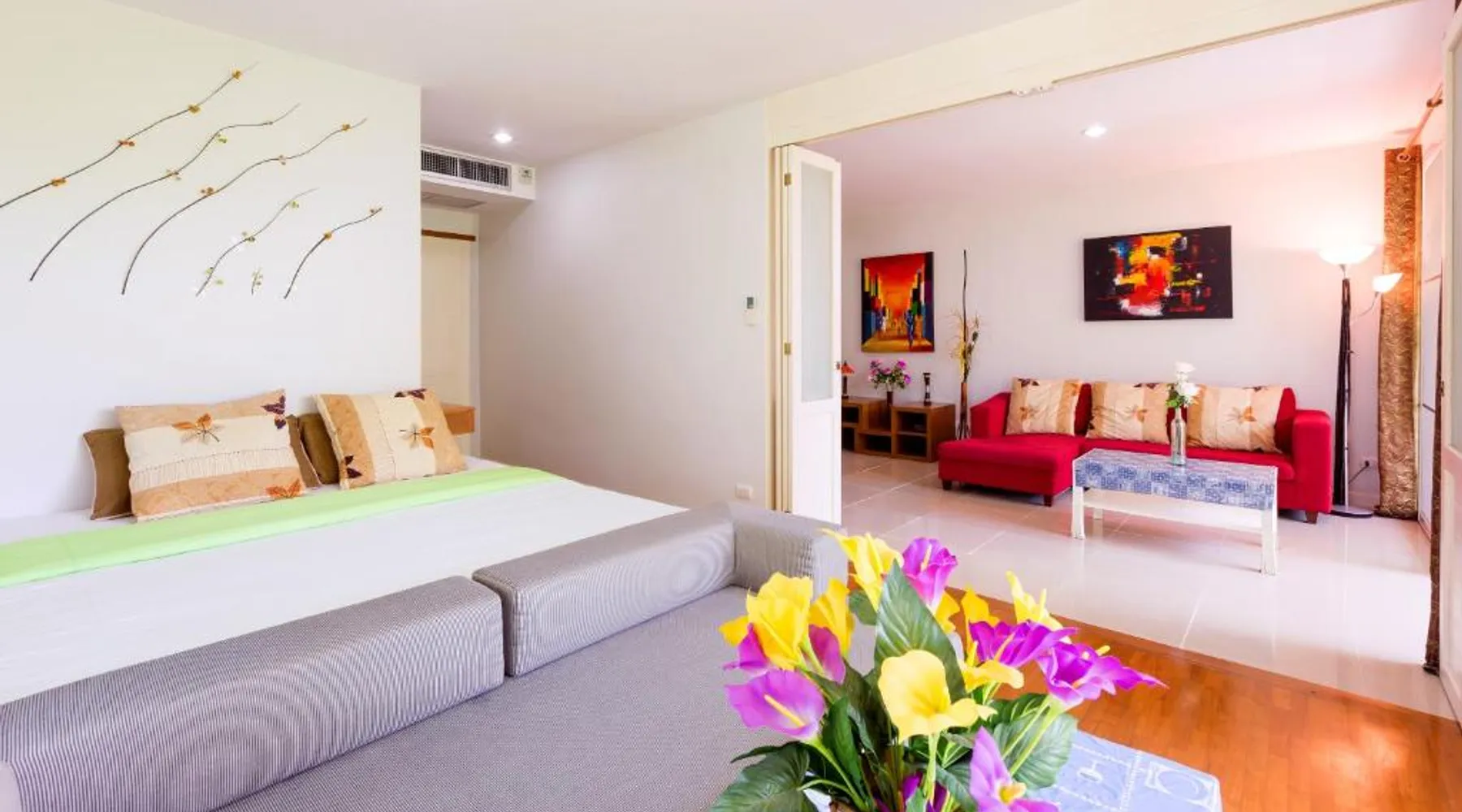 Beachfront Location: Baan Poolom Beachfront Condominium in Hua Hin offers direct beachfront access with stunning sea views. Guests can relax on the sun terrace or take a dip in the year-round outdoor swimming pool. Comfortable Accommodations: The apartment features air-conditioning, a balcony, and a private bathroom. Each unit includes a fully equipped kitchen, dining area, and free WiFi, ensuring a comfortable stay. Leisure Facilities: Guests can enjoy a sauna, garden, and free on-site private parking. Additional amenities include a paid shuttle service, elevator, family rooms, and car hire. Nearby Attractions: Hua Hin Beach is a 3-minute walk away, while Cicada Market lies 1969 feet nearby. Hua Hin Railway Station is 3.1 mi from the property, providing easy access to local attractions. Featuring 2 bedrooms and 1 bathroom, this spacious apartment offers a well-fitted kitchen and a dining area. The apartment's kitchen is available for cooking and storing food. Boasting a balcony with sea views, this apartment also offers air conditioning and a TV. The unit has 3 beds.