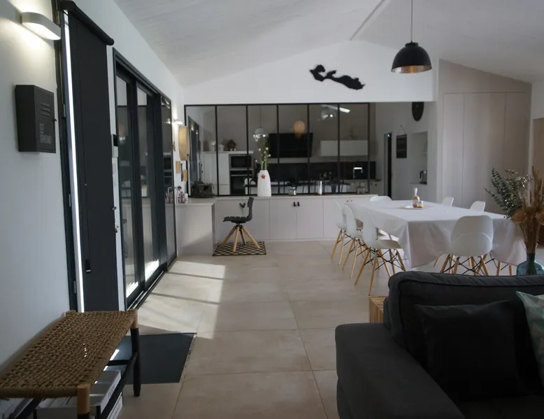 On the wild coast, a few minutes walk to the beach, large 185 m2 house located in a very quiet area, close to shops. The house has a large, bright 90 m2 living room, a sunny courtyard, a garden and a heated and secure 9.5 X 4.5 saltwater pool. The night areas are composed of two suites, each with their own bathroom and toilet, and two other bedrooms, with a large bathroom and toilets. The space The house is classified as 5-star furnished tourist accommodation. It is located facing the ocean, a few hundred meters from the beach, and yet in the heart of the village, a few minutes walk from the shops. Particular attention has been paid to sound and thermal insulation. It has a laundry room, a back kitchen, three bathrooms and three toilets, as well as a garage and bike racks. Guest access You have access to the entire house, as well as the patio, garden, and private heated pool. Registration Details 17360000689H1