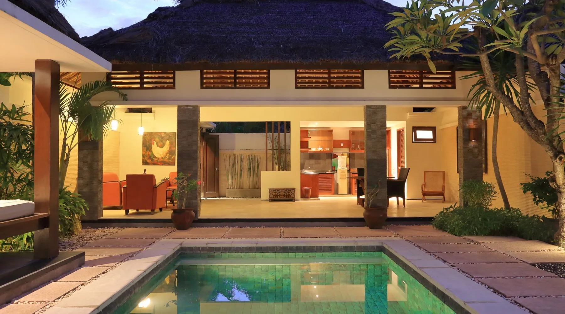Villa size: 130 m² Features a 25 m² pool, kitchen within a secluded walled garden and an open-air terrace which provides for outdoor dining. Bedrooms come with a DVD player, flat-screen TV and a choice of either outdoor or indoor bathrooms featuring rainforest showers and round bathtubs. No child allowed to stay under the age of 12 years old. The villa is located in the fishing village of Mangsit Bay on Lombok Island. Surrounded by tropical gardens, it has a spa and a beautiful infinity pool. Steps from the sandy beach, the villa is just a 5-minute drive from the town centre of Senggigi. Lombok International Airport is a 1.5-hour drive away. In-house dive instructors are available to give introductory lessons in the pool. Guests can also request for a private ballroom dance lesson. The villa has a yoga garden, an art gallery and a tour desk. Featuring handcrafted wooden furniture, the villa have either an indoor or garden bathroom. Amenities include a minibar, tea/coffee making facilities and a personal safe. The villa comes with kitchens and private pool. Open-air beachfront fine dining can be enjoyed at The Ballroom Restaurant, which serves seafood and Indonesian specialities. Cocktails are also available.