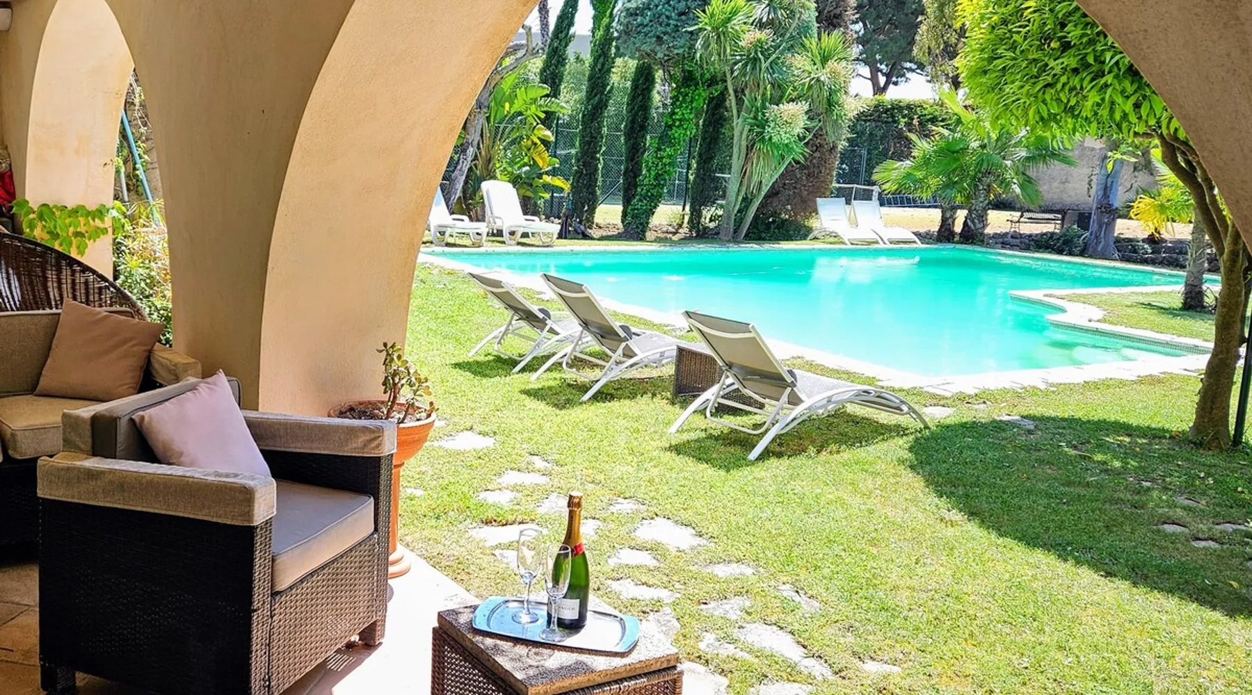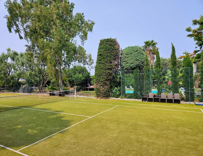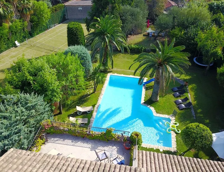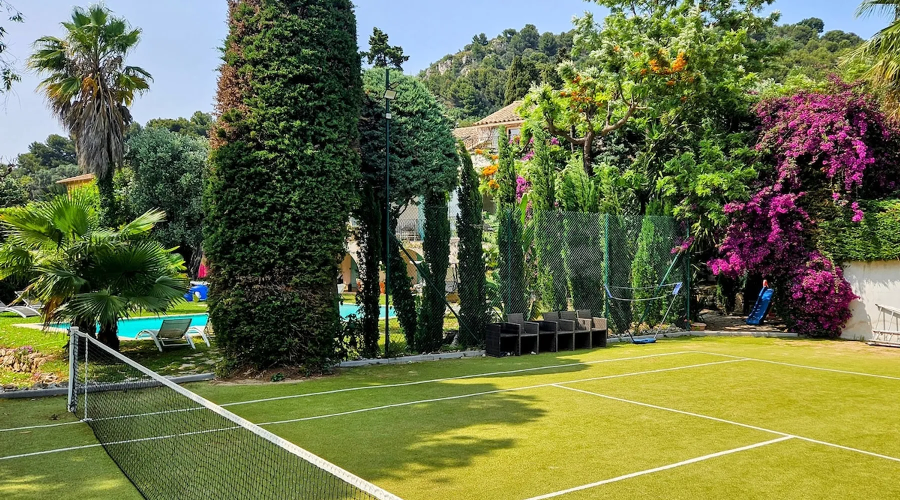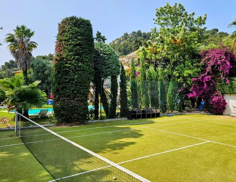 Large family Villa in Villefranche sur Mer on the French Riveria - The villa has its own Large pool & Tennis court, Very Private, Exclusive and Quiet Location. Just 5 minutes to Nice and 20 minutes to Monaco. Our villa is in a wonderful location only a few minutes to the sublime beaches of Villefranche & Cap Ferrat. It is an oasis of relaxation with pool, tennis court and botanic gardens to enjoy with family and friends. The space Positioned above the Bay of Villefranche in a park like garden with grass tennis court & large pool ( 11.5 X 8.0 mtr). The villa Les Palmiers is an ideal place to spend a lazy summer, away from the hustle & bustle yet only a few minutes to the beaches of Villefranche & Cap Ferrat. The centres of Nice & Monaco are close by too. The villa is exceptionally quiet, private & set well away from busy roads. Ideal for families or entertaining. The large master suite has its own terrace with spectacular views over the coastline & Bay des Anges. Other things to note I also have a 55' motor yacht available for day charters. Please message me for details. Registration Details 06088025533DP