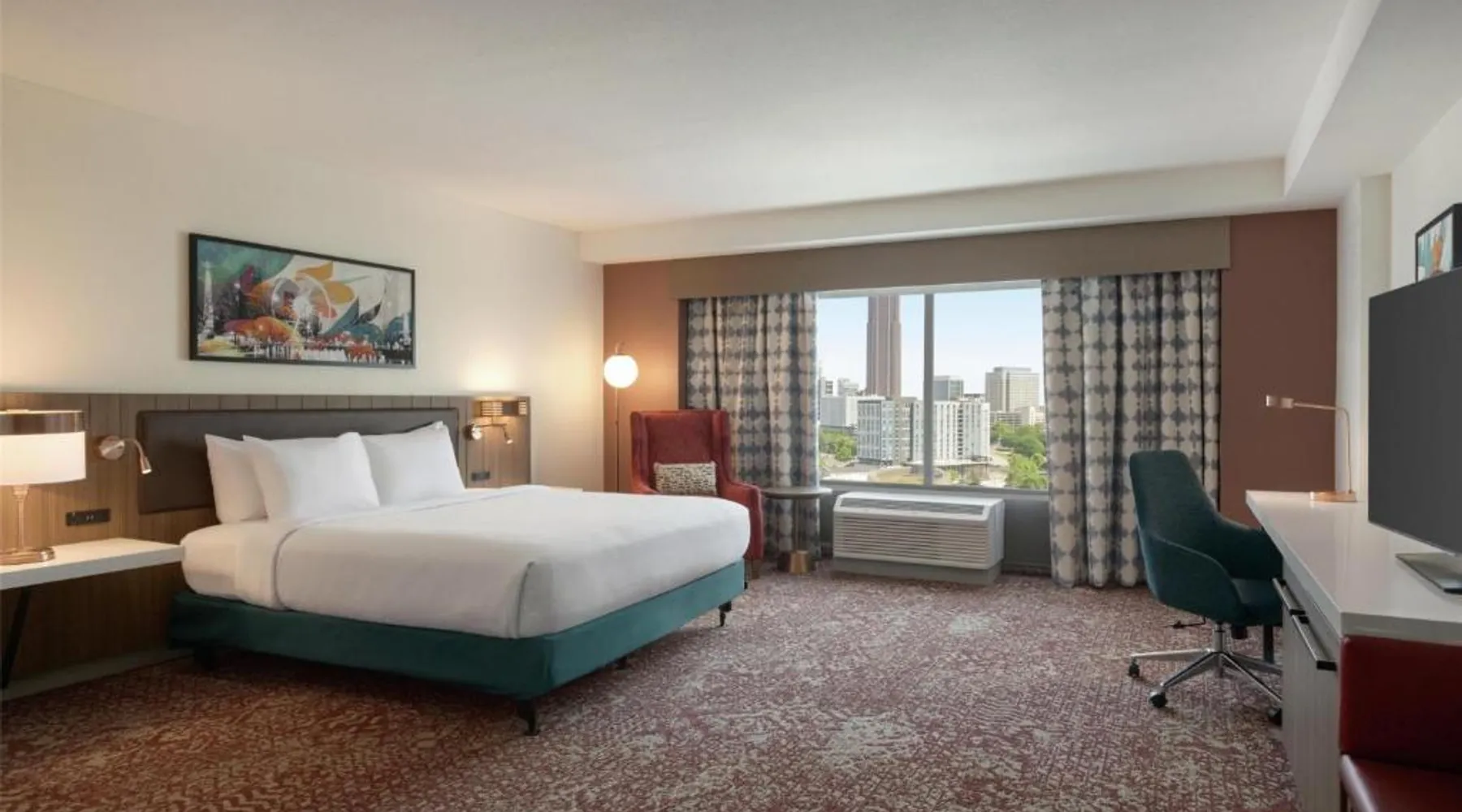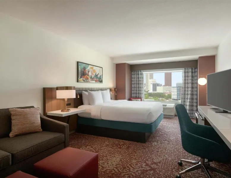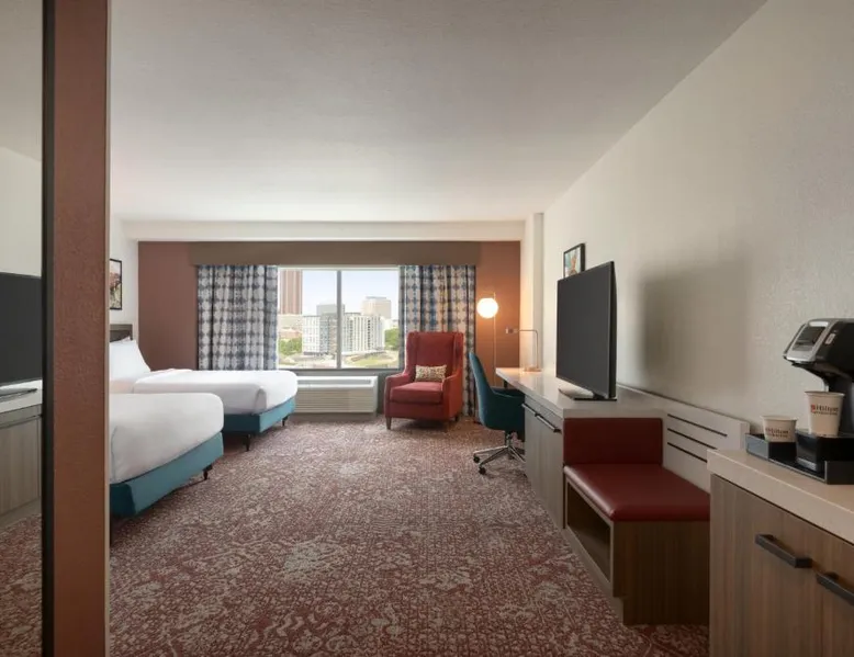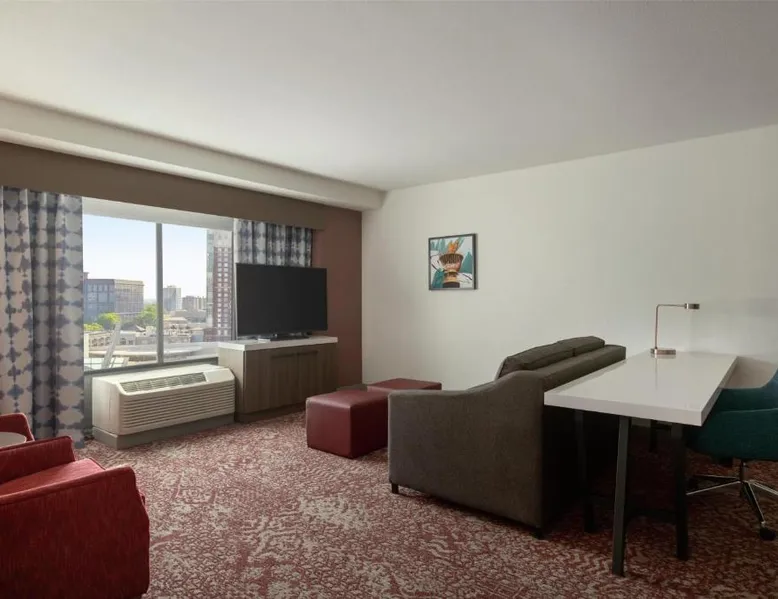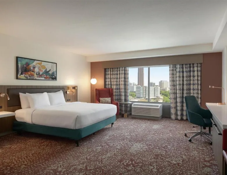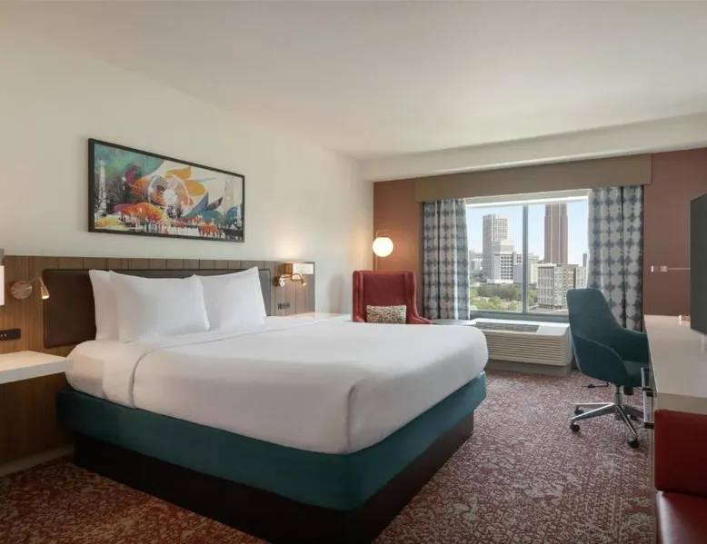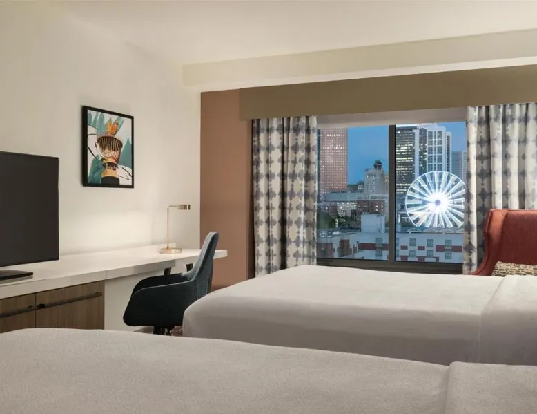 Experience the excitement of Atlanta city center at this centrally located hotel. Located in the heart of the city, seconds from top attractions, this hotel offers exceptional accommodations and many modern conveniences. The Hilton Garden Inn Atlanta Downtown is ideally placed within walking distance to many popular attractions. The Georgia Aquarium, Centennial Olympic Park and Restaurant Row are adjacent to the hotel. The city's transport system, MARTA, is also nearby, providing easy access to all areas of the city. Guests at the Downtown Atlanta Hilton Garden can enjoy on-site gourmet dining at one of the hotel's 2 restaurants. The hotel also features spacious meeting and banquet facilities as well as both indoor and outdoor swimming pools. World of Coca-Cola, Georgia World Congress Center, Sky View, and the College Football Hall of Fame are nearby the Hilton Garden Inn Atlanta Downtown. The air-conditioned suite features a flat-screen TV with cable channels, a tea and coffee maker, a seating area, a safe deposit box as well as city views. The unit has 1 bed.
