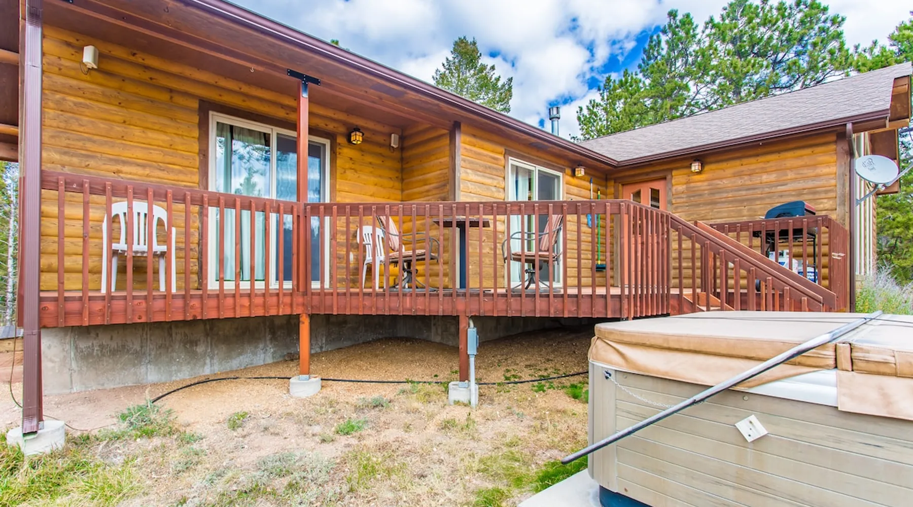 Secluded mountain cabin on 35 pristine acres with a wonderful view of Pike's Peak as a backdrop. Spring fed pond on the property and plenty of space for hiking, exploring, wildlife viewing as well as sledding and snowshoeing in the winter. Sleds, snowshoes are not provided. Elk Spring cabin has lodge decor with many handcrafted furniture pieces. Large windows in the living room to take in the view of trees and Pike's Peak. It offers seclusion yet minutes from grocery stores and restaurants. The space You will have the entire home to yourself. It’s in a perfect location providing seclusion and views yet only minutes to restaurants and stores. Guest access The home is on 35 acres which you are welcome to explore and hike! Please be aware that there is another vacation rental on the property about 800 yards away and not visible from the home. Please respect the privacy of the guests at the other rental as they will yours by not driving to or approaching the other home on foot. The entire property is fenced so please do not trespass onto our neighbors property by crossing any barbed wire fences. The property has some steep terrain and a few shallow, old prospectors mining pits so please use caution when hiking the property. Other things to note We provide just about everything you will need for your stay: linens, towels, blow dryer, paper towels, toilet paper, coffee filters, large selection of spices and some condiments. The kitchen has a toaster, blender, griddle, ice maker, waffle iron and microwave. There is a binder at the home which gives you information on the home, TV and Hottub instructions as well as information about things to do and phone numbers for emergency situations. Please take the time to look through it! The elevation of the home is 9000 ft.