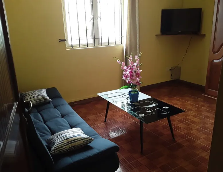 Apartment , located in a villa on the 1st floor with a large bay 6 minutes walk from the super-u store and beach , accommodation of 45 meters with kitchen equipped dining area, a room with a double bed for 2 people , living room with a sofa bed for 4 people, equipped alarm, camera surveillance, (wifi) and swimming pool , transport from the earoport on order the rate and 100 euro round trip for the trip , Guest access walking distance to the city center and beach ,you can take the buses or taxi to get out