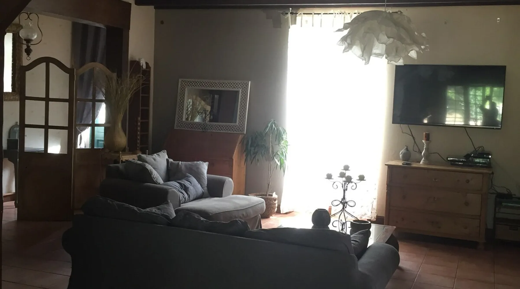 Large house of 260 m2 in the countryside, close to a village with all amenities, grocery, bakery, pharmacy, doctor, dentists, 7 minutes from Puy du Fou, 15 minutes from the eastern park of Maulevrier and 15 minutes from the site of Poupet. Private parking, completely fenced.Our friends pets are allowed.25€/person and per night up to 13 people The space The house offers a large kitchen open on 2 dining areas themselves open on the living room, on the ground floor 2 large bedrooms of 25 m2 including one adjoining a bathroom and toilet, a second toilet on the ground floor, a back kitchen and a very large laundry room of 45 m2 all overlooking the enclosed garden, on the floor 2 bedrooms with each a double bed and a third with a single bed, a toilet and a bathroom, a very large parking space adjoining the back Kitchen and enclosed allows parking there at least 5 cars .