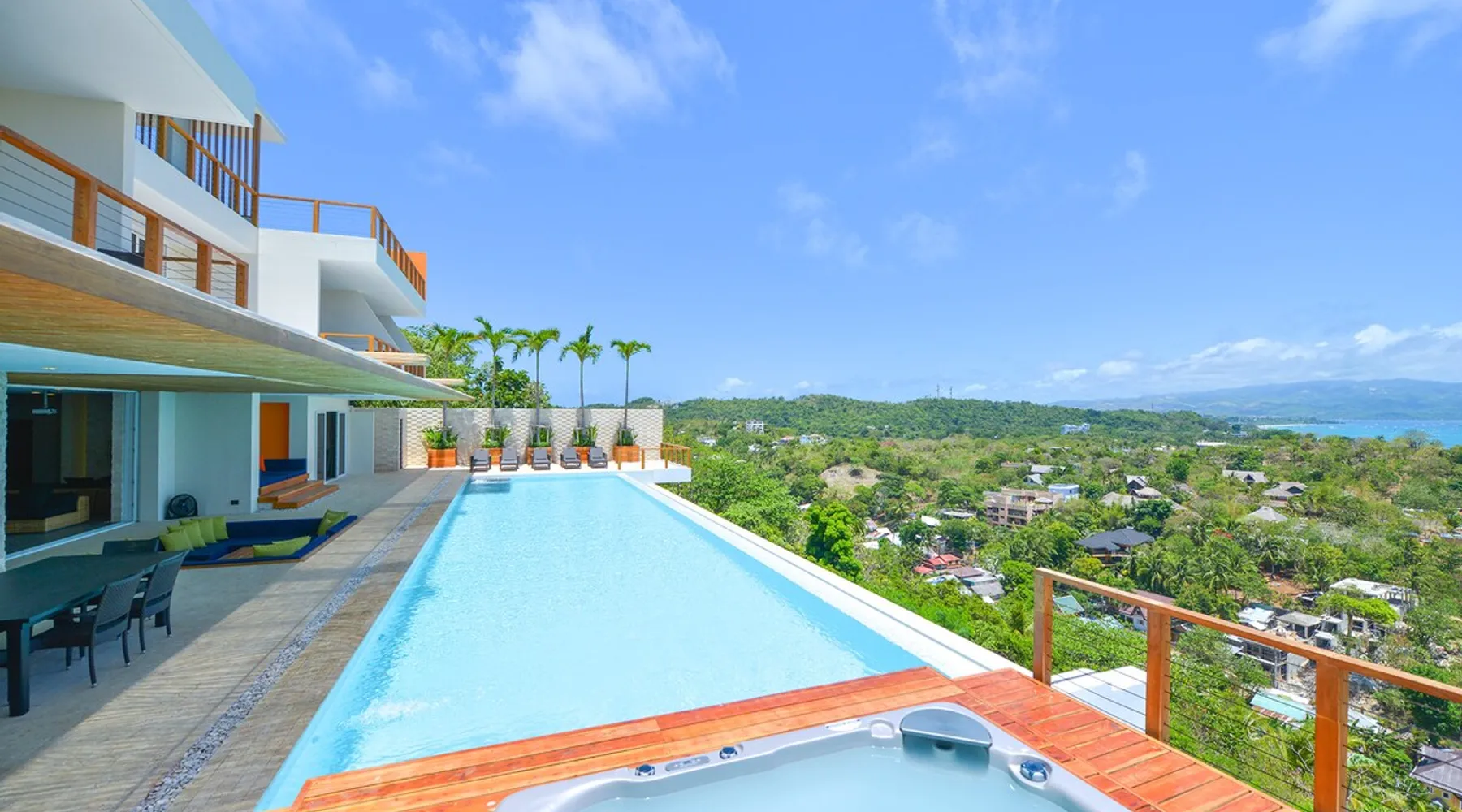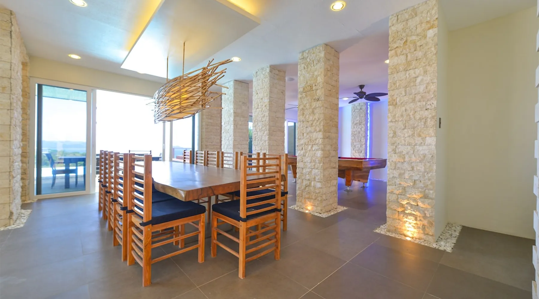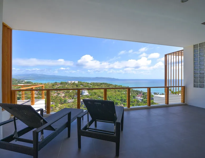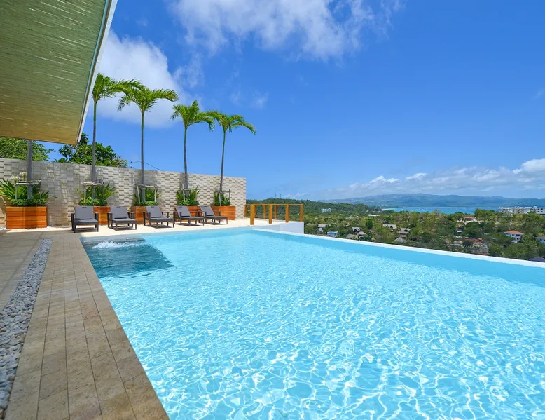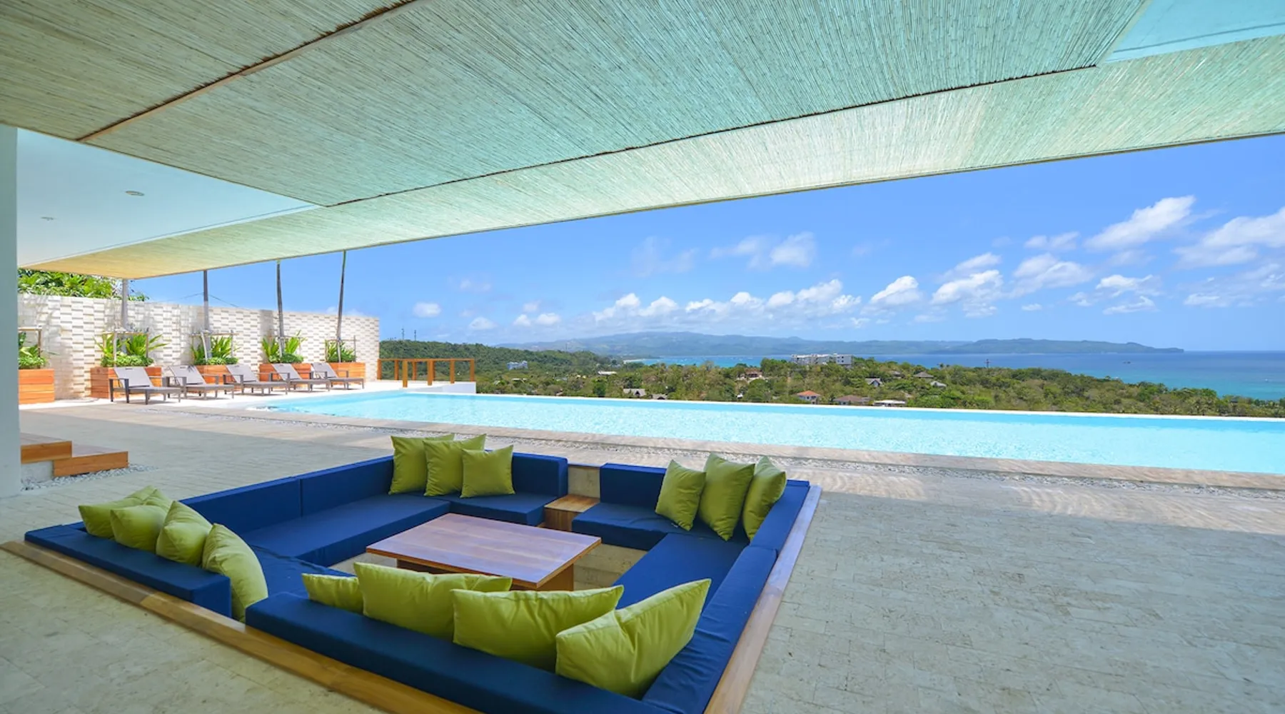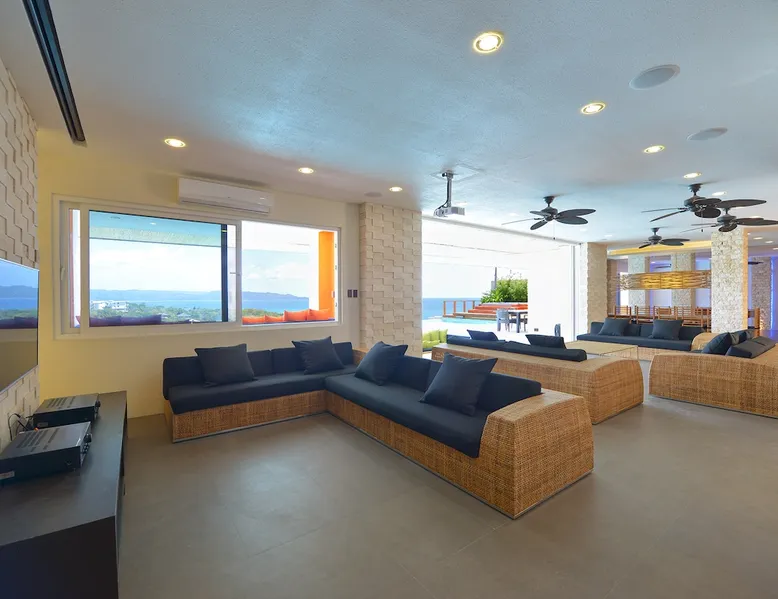 we have 11 bedrooms The listed price is good for upto 20 people. we charge php 1,000 per person per night for extra people. please note the van can only hold 16. it is only a small island, so it is easy to make 2 trips or just rent a second van when needed. Also please check the Room / bed layout below, as it is upto you how you share rooms. we just have 4 extra single mattress and 2 baby cribs we can use. PARTIES AND EVENTS _ please ask in advance or it will not be allowed. The space This is a brand new home, with 11 bedrooms and 14bathrooms and 5 full time staff. we have tried our best to think of everything, but if we have forgotten something, please let us know and we will try our best to arrange for you. the pictures of the house speak for themselves, but it is our staff and service that will truly give you a memorable vacation. there is a large 20 metre infinity swimming pool with spectacular views of the island and 6 person heated jaccuzzi. there is a billiard table, large indoor dining table for 14 people and outdoor table for 12, fully equipped kitchen and large BBQ. the living room has a 60inch tv with netflix and movies we also keep a selection of board games. there is a music system with speakers throughout the whole downstairs area . we have a selection of music, or bring your own. any device that has a standard jack plug / headphone socket will work. we have wifi in all bedrooms and living room. with 100 MBPS the house is located in a quiet residential area, it is just a 10 minute walk to the nearest beach and a 10 minute drive to the main area of bars and restaurants. the house comes with a full time van and driver on call 24 hrs a day included in the price. we also includes 4 full time maids who will clean, go shopping and cook for you. the maids can cook most food and BBQ and will be happy to help you do your own cooking if you wish. we also have a selection of take away menus , pizza etc. that the staff will be happy to order for you. the staff can also book restaurants or activities for you, just let them know and they will be happy to help. if you prefer your privacy, please just tell the staff and they will only come when requested. they live just underneath the house, so you can call them anytime. we keep a selection of basic food,tea, coffee, milk wine, beer, soft drinks etc. which you can order from us , or else you can goto the mall and do your own shopping with the help of the staff if required. we also have a 24hr back up generator in case of power outages. if you have any specific requests of things you would like us to provide on arrival, then pls just send us a list and we will do our best PARTIES and EVENTS we have done many birthday and wedding cocktail parties for upto 100 people but please ask in advance or this will not be allowed. generally we have a cover charge of php 300 per person over the amount of guests staying in the villa. we can do the food or arrange a catering company, please ask for details. WE DO NOT ALLOW OUTSIDE FOOD AND DRINKS FOR PARTIES please note the bedroom layout as follows... there is 1 room king bed on the ground pool level 3 rooms with one king bed on 1st floor 2 rooms with 2 double beds also on 1st floor master bedroom has 1 king bed on 2nd / top floor on the level below the pool there is 1 bedroom with king bed. *** all the above have balcony and ocean view. also on the floor below the pool 1 room has 1 king bed . and just 1 small window 1 room has 2 double beds but there are no windows . 1 small room has 1 double bed and no windows and no real closet space. this room is best for kids. *** All rooms have en suite bathroom , aircon, 40" tv ,en suite bathrooms with towels, soap, shampoo,hairdryer