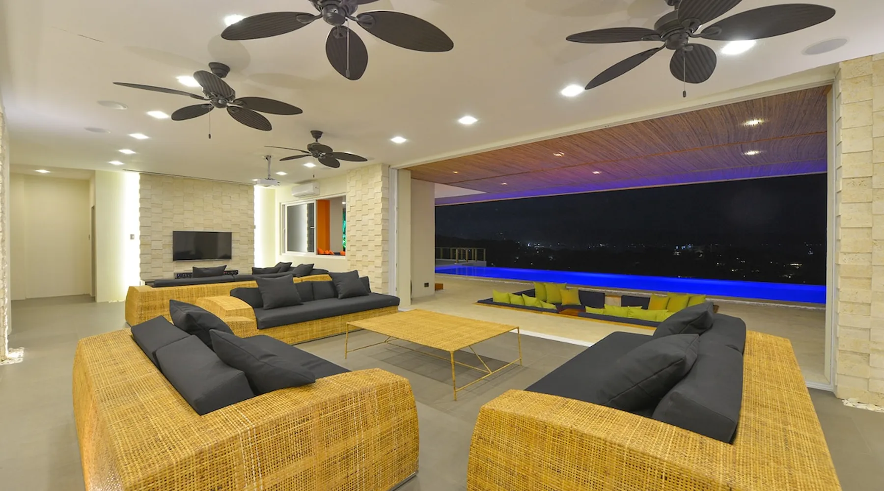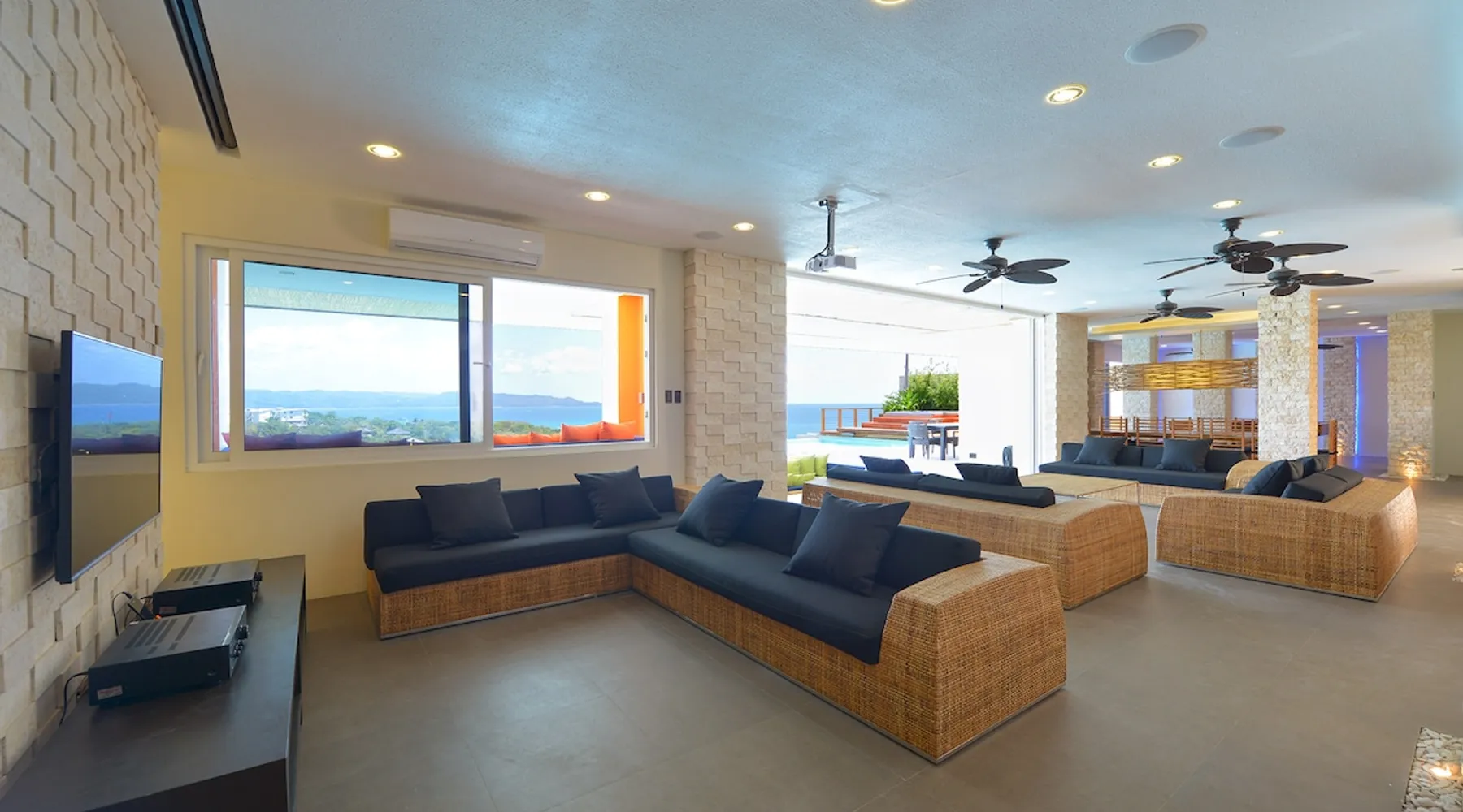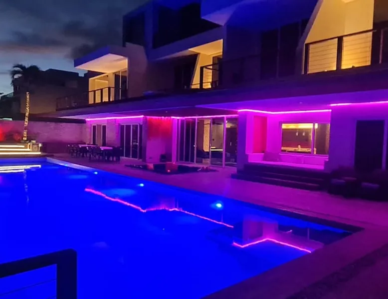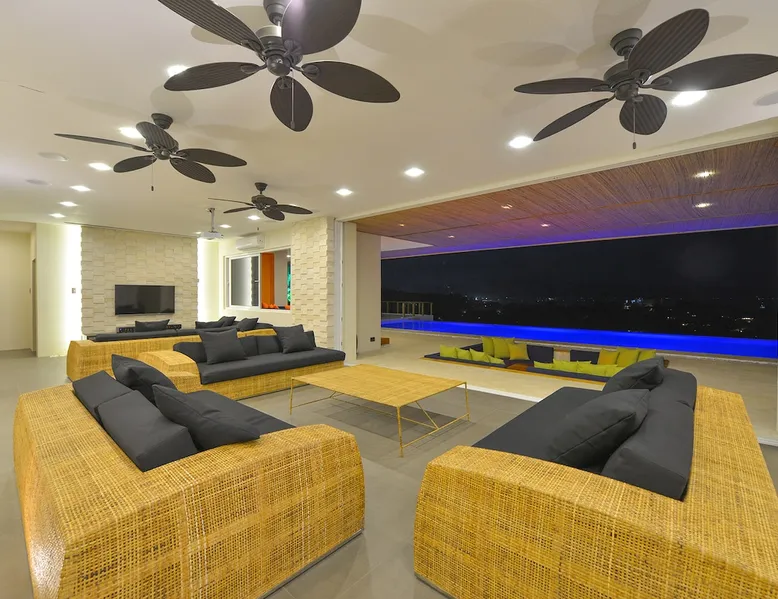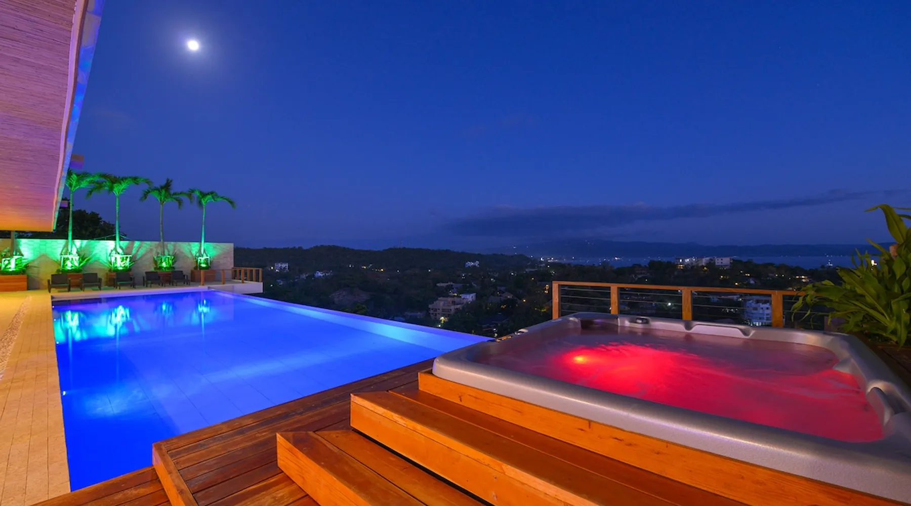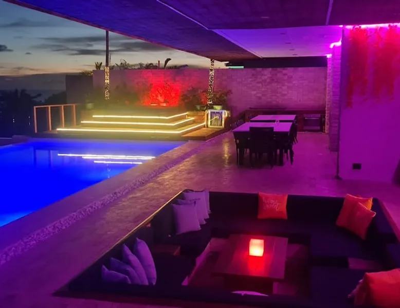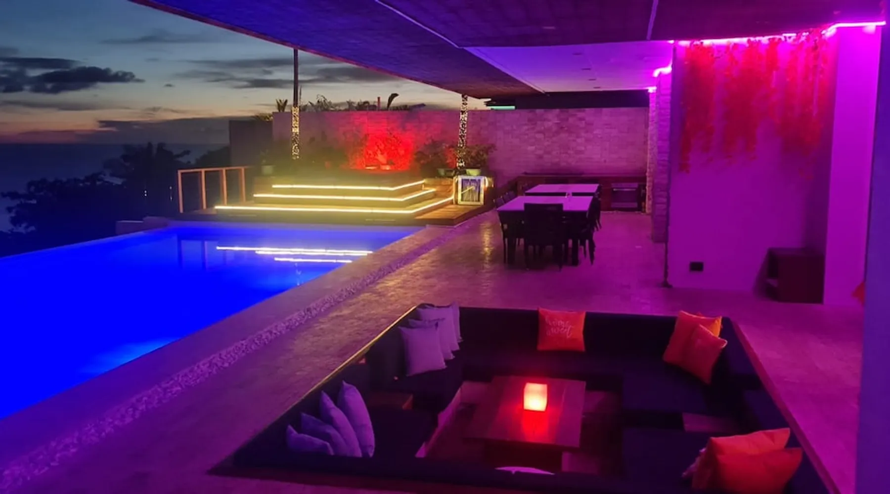 we have 11 bedrooms The listed price is good for upto 20 people. we charge php 1,000 per person per night for extra people. please note the van can only hold 16. it is only a small island, so it is easy to make 2 trips or just rent a second van when needed. Also please check the Room / bed layout below, as it is upto you how you share rooms. we just have 4 extra single mattress and 2 baby cribs we can use. PARTIES AND EVENTS _ please ask in advance or it will not be allowed. The space This is a brand new home, with 11 bedrooms and 14bathrooms and 5 full time staff. we have tried our best to think of everything, but if we have forgotten something, please let us know and we will try our best to arrange for you. the pictures of the house speak for themselves, but it is our staff and service that will truly give you a memorable vacation. there is a large 20 metre infinity swimming pool with spectacular views of the island and 6 person heated jaccuzzi. there is a billiard table, large indoor dining table for 14 people and outdoor table for 12, fully equipped kitchen and large BBQ. the living room has a 60inch tv with netflix and movies we also keep a selection of board games. there is a music system with speakers throughout the whole downstairs area . we have a selection of music, or bring your own. any device that has a standard jack plug / headphone socket will work. we have wifi in all bedrooms and living room. with 100 MBPS the house is located in a quiet residential area, it is just a 10 minute walk to the nearest beach and a 10 minute drive to the main area of bars and restaurants. the house comes with a full time van and driver on call 24 hrs a day included in the price. we also includes 4 full time maids who will clean, go shopping and cook for you. the maids can cook most food and BBQ and will be happy to help you do your own cooking if you wish. we also have a selection of take away menus , pizza etc. that the staff will be happy to order for you. the staff can also book restaurants or activities for you, just let them know and they will be happy to help. if you prefer your privacy, please just tell the staff and they will only come when requested. they live just underneath the house, so you can call them anytime. we keep a selection of basic food,tea, coffee, milk wine, beer, soft drinks etc. which you can order from us , or else you can goto the mall and do your own shopping with the help of the staff if required. we also have a 24hr back up generator in case of power outages. if you have any specific requests of things you would like us to provide on arrival, then pls just send us a list and we will do our best PARTIES and EVENTS we have done many birthday and wedding cocktail parties for upto 100 people but please ask in advance or this will not be allowed. generally we have a cover charge of php 300 per person over the amount of guests staying in the villa. we can do the food or arrange a catering company, please ask for details. WE DO NOT ALLOW OUTSIDE FOOD AND DRINKS FOR PARTIES please note the bedroom layout as follows... there is 1 room king bed on the ground pool level 3 rooms with one king bed on 1st floor 2 rooms with 2 double beds also on 1st floor master bedroom has 1 king bed on 2nd / top floor on the level below the pool there is 1 bedroom with king bed. *** all the above have balcony and ocean view. also on the floor below the pool 1 room has 1 king bed . and just 1 small window 1 room has 2 double beds but there are no windows . 1 small room has 1 double bed and no windows and no real closet space. this room is best for kids. *** All rooms have en suite bathroom , aircon, 40" tv ,en suite bathrooms with towels, soap, shampoo,hairdryer