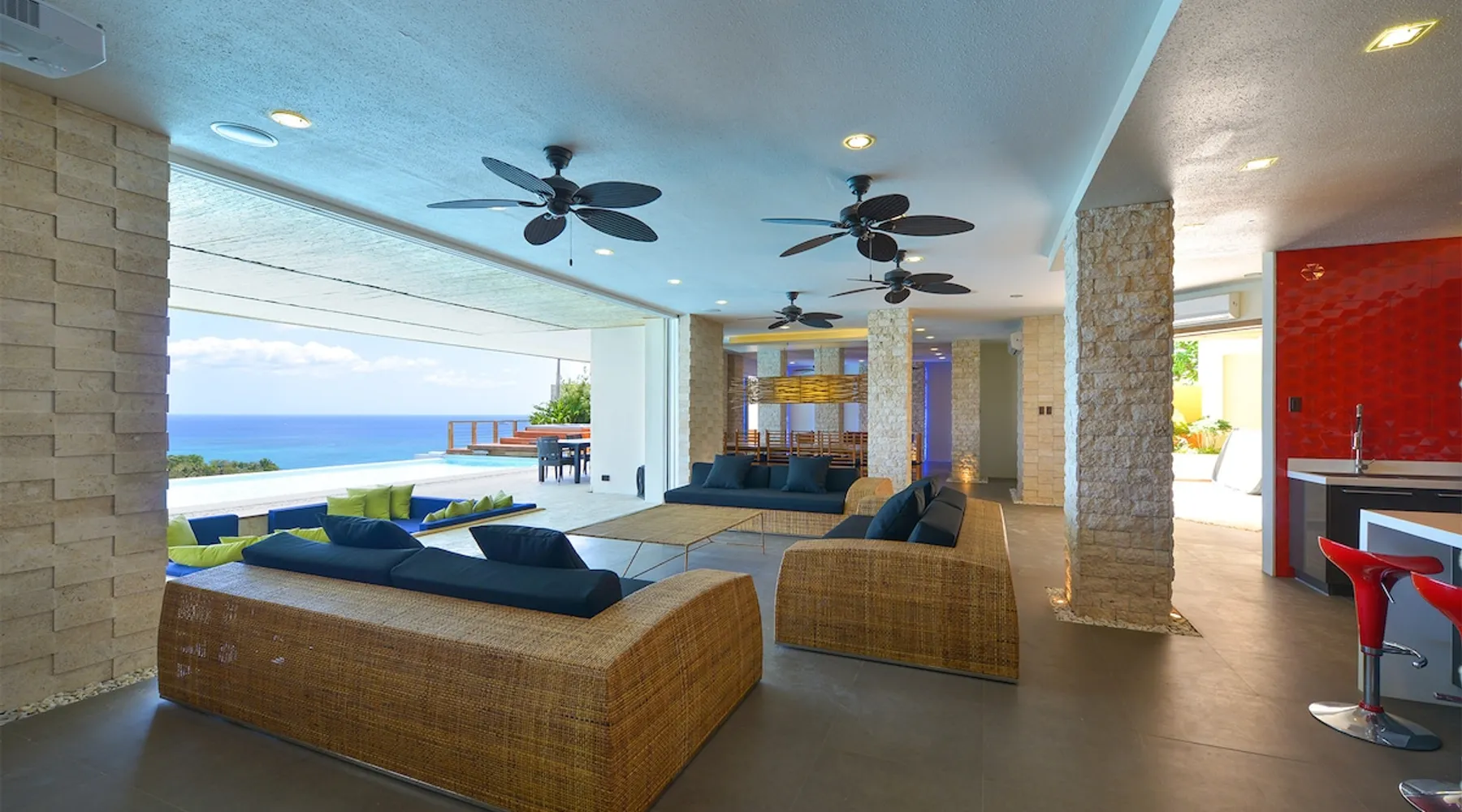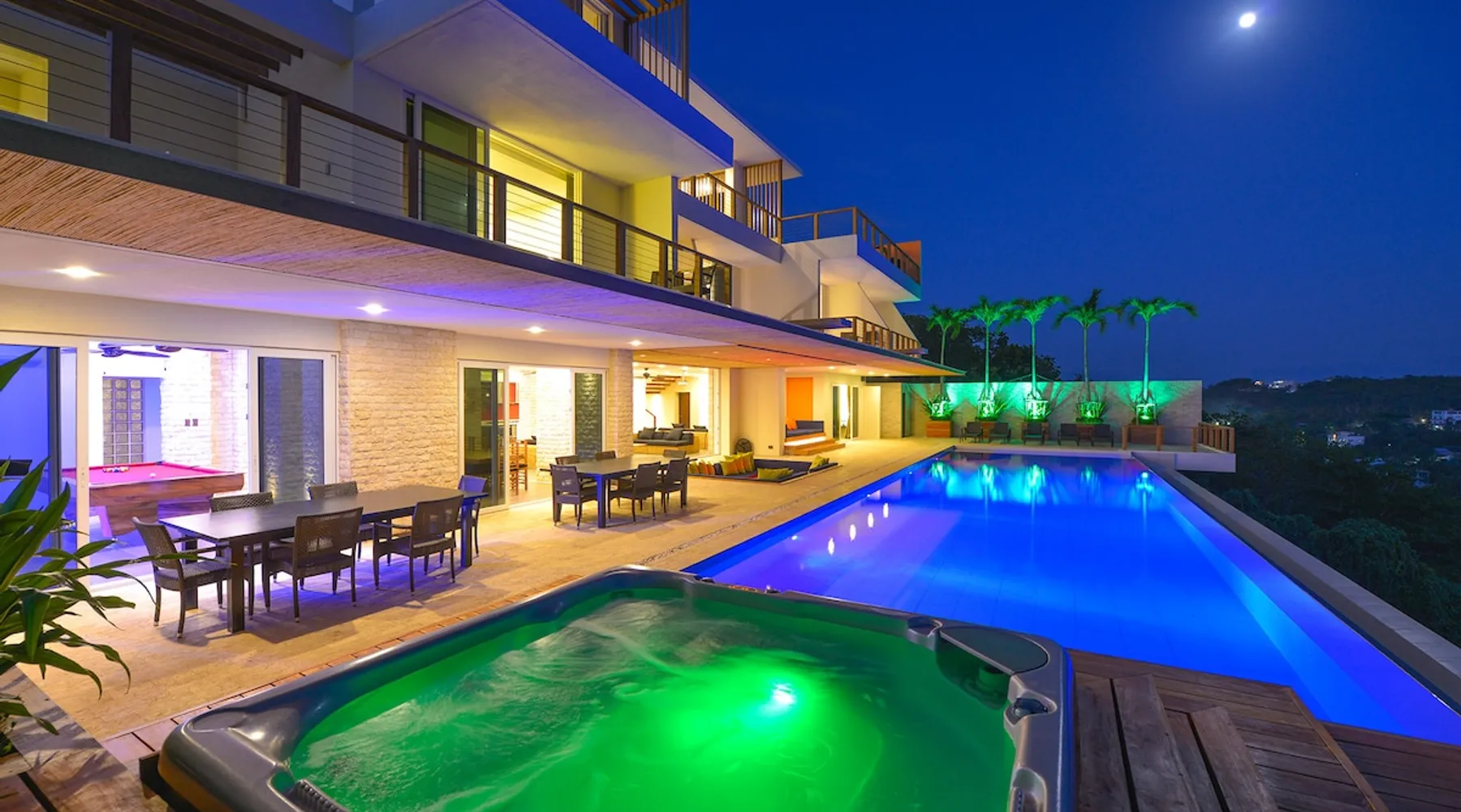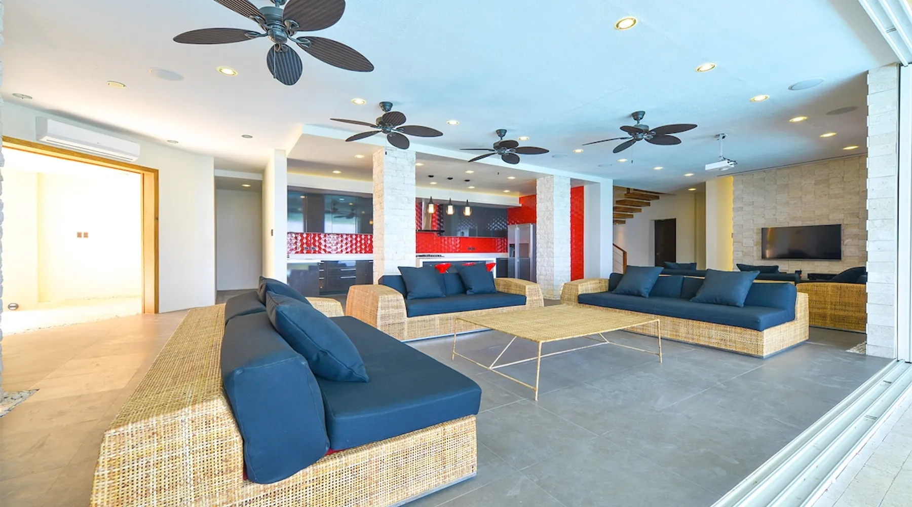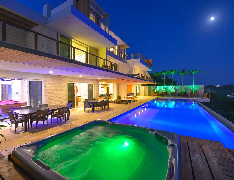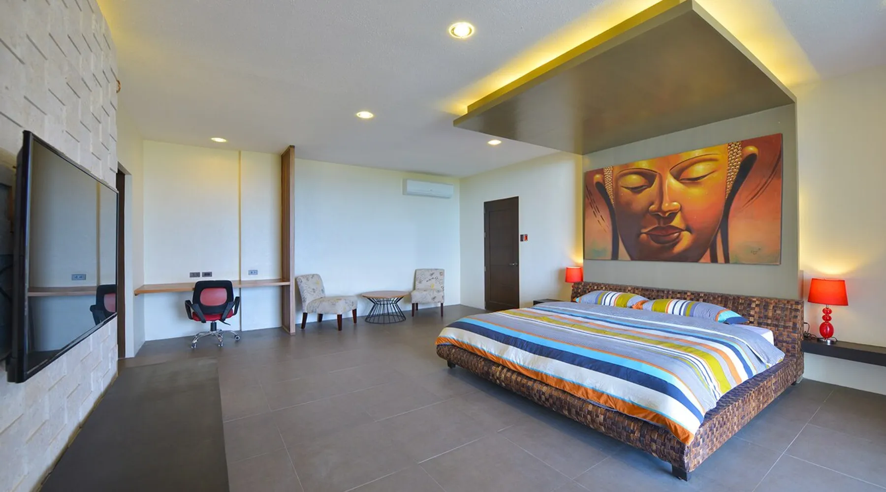we have 11 bedrooms The listed price is good for upto 20 people. we charge php 1,000 per person per night for extra people. please note the van can only hold 16. it is only a small island, so it is easy to make 2 trips or just rent a second van when needed. Also please check the Room / bed layout below, as it is upto you how you share rooms. we just have 4 extra single mattress and 2 baby cribs we can use. PARTIES AND EVENTS _ please ask in advance or it will not be allowed. The space This is a brand new home, with 11 bedrooms and 14bathrooms and 5 full time staff. we have tried our best to think of everything, but if we have forgotten something, please let us know and we will try our best to arrange for you. the pictures of the house speak for themselves, but it is our staff and service that will truly give you a memorable vacation. there is a large 20 metre infinity swimming pool with spectacular views of the island and 6 person heated jaccuzzi. there is a billiard table, large indoor dining table for 14 people and outdoor table for 12, fully equipped kitchen and large BBQ. the living room has a 60inch tv with netflix and movies we also keep a selection of board games. there is a music system with speakers throughout the whole downstairs area . we have a selection of music, or bring your own. any device that has a standard jack plug / headphone socket will work. we have wifi in all bedrooms and living room. with 100 MBPS the house is located in a quiet residential area, it is just a 10 minute walk to the nearest beach and a 10 minute drive to the main area of bars and restaurants. the house comes with a full time van and driver on call 24 hrs a day included in the price. we also includes 4 full time maids who will clean, go shopping and cook for you. the maids can cook most food and BBQ and will be happy to help you do your own cooking if you wish. we also have a selection of take away menus , pizza etc. that the staff will be happy to order for you. the staff can also book restaurants or activities for you, just let them know and they will be happy to help. if you prefer your privacy, please just tell the staff and they will only come when requested. they live just underneath the house, so you can call them anytime. we keep a selection of basic food,tea, coffee, milk wine, beer, soft drinks etc. which you can order from us , or else you can goto the mall and do your own shopping with the help of the staff if required. we also have a 24hr back up generator in case of power outages. if you have any specific requests of things you would like us to provide on arrival, then pls just send us a list and we will do our best PARTIES and EVENTS we have done many birthday and wedding cocktail parties for upto 100 people but please ask in advance or this will not be allowed. generally we have a cover charge of php 300 per person over the amount of guests staying in the villa. we can do the food or arrange a catering company, please ask for details. WE DO NOT ALLOW OUTSIDE FOOD AND DRINKS FOR PARTIES please note the bedroom layout as follows... there is 1 room king bed on the ground pool level 3 rooms with one king bed on 1st floor 2 rooms with 2 double beds also on 1st floor master bedroom has 1 king bed on 2nd / top floor on the level below the pool there is 1 bedroom with king bed. *** all the above have balcony and ocean view. also on the floor below the pool 1 room has 1 king bed . and just 1 small window 1 room has 2 double beds but there are no windows . 1 small room has 1 double bed and no windows and no real closet space. this room is best for kids. *** All rooms have en suite bathroom , aircon, 40" tv ,en suite bathrooms with towels, soap, shampoo,hairdryer