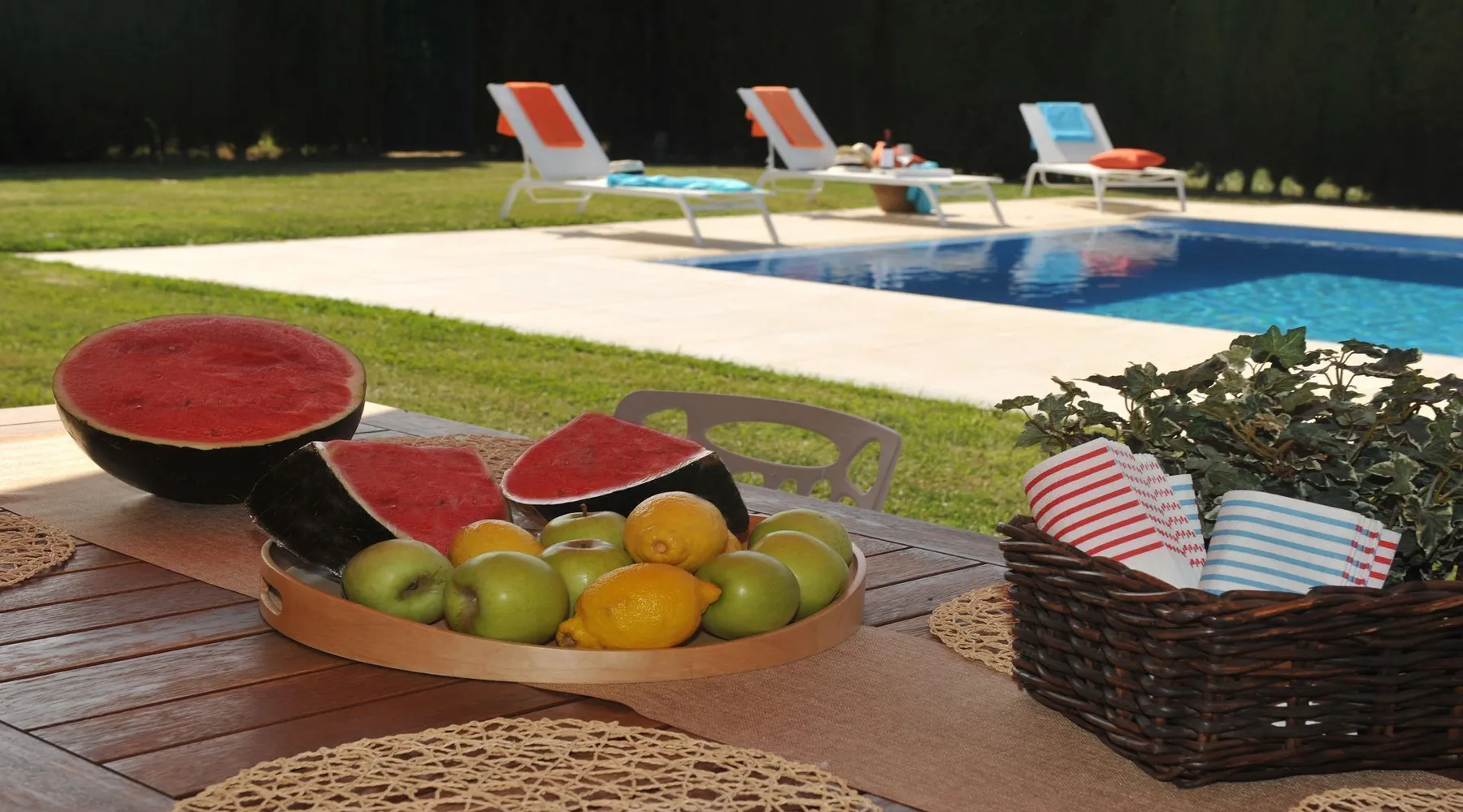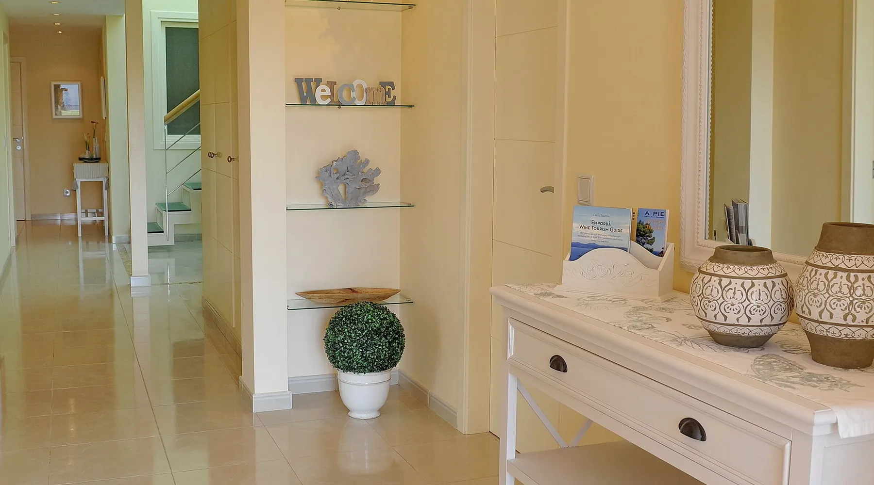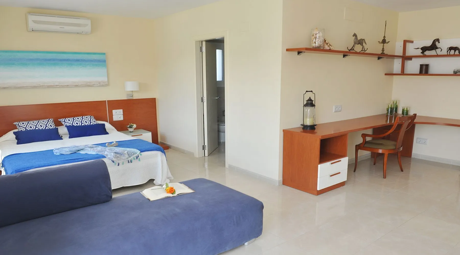 Escape the ordinary and discover your perfect beach retreat at our stylish villa. Nestled just minutes from all the amenities, including a stunning golden sandy beach with a pedestrian promenade, this is your haven for relaxation. Spend your days swimming, sunbathing, paddling, or teeing off at nearby golf courses. You return to your villa to watch the sun set of another perfect day, if you have worked up an appetite, you couldn’t be better situated; our area offers a wide and varied choice of restaurants. This property is decorated and furnished in immaculate style & good taste and offers a living/dining area(42 sqm) with an open fireplace and dining table for eight, an independent fully equipped kitchen with dining area. Basically everything you have at home. There is access to the porch and the private swimming pool (10x5m.) from both the kitchen and the living room. Next to the kitchen there is a guest toilet. Along the corridor there is a laundry room, fitted with a washing machine,tumble dryer, ironing board, iron and cupboard space. There are 3 ensuite double bedroom. The master bedroom has a double bed (160x200 cm.),dressing room and ensuite bathroom with bath and shower. The other two double ensuite bedrooms, one with double bed (135x200cm.) and the other with two single beds (90x200) have spacious wardrobes. There is a garage for two cars and parking space. All the villa has central heating and air conditioning. Tourist license: HUTG-002356