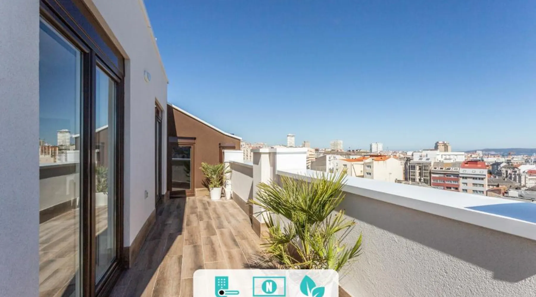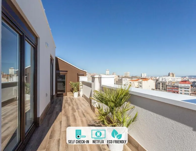 Spacious Accommodations: Indigo Rooftop in A Coruña offers a spacious apartment with two bedrooms and a living room. The property features a sun terrace and free WiFi, ensuring a comfortable stay. Modern Amenities: Guests can enjoy a kitchenette, balcony with sea views, and a washing machine. Additional facilities include a elevator, indoor play area, and outdoor seating area. Prime Location: Located 4.3 mi from A Coruña Airport, the apartment is close to Riazor Beach (1.2 mi) and Casa Picasso Museum (18-minute walk). Nearby attractions include Aquarium Finisterrae and Tower of Hercules. Activities and Surroundings: Guests can engage in hiking, scuba diving, and surfing. The surrounding area offers various activities for outdoor enthusiasts. This spacious apartment comes with 1 living room, 2 separate bedrooms and 1 bathroom with a shower and free toiletries. Guests can make meals in the kitchen that features a stovetop, a refrigerator, a dishwasher and kitchenware. Boasting a terrace with sea views, this apartment also features a washing machine and a flat-screen TV with streaming services. The unit has 3 beds.