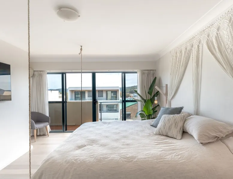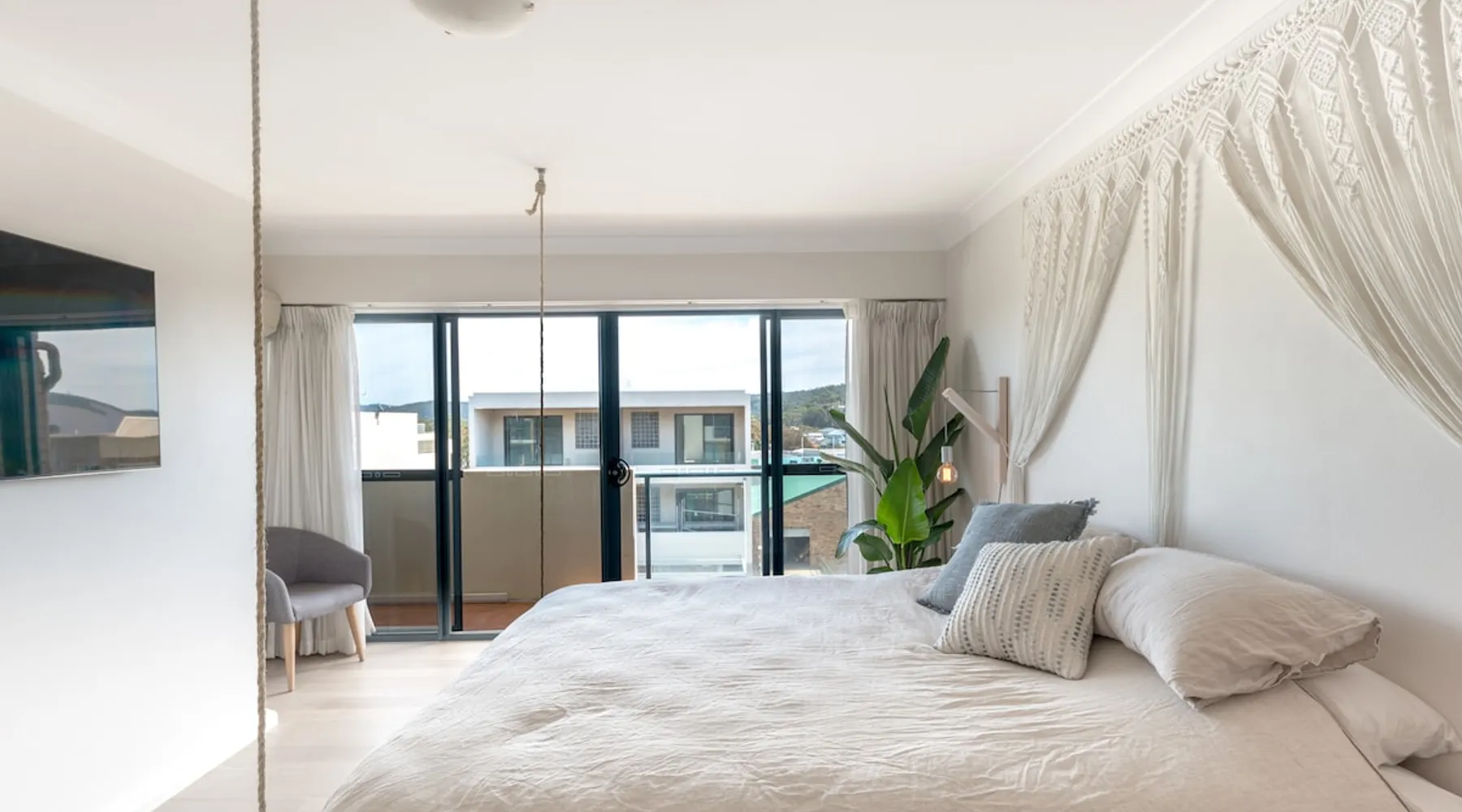 Wake up to the sun rising over the ocean and setting over the lake. This tranquil, boho lux retreat is perfectly situated on the Narrabeen Peninsula, you are walking distance from all that you could ask for in a beach holiday; the beach, lake and Narrabeen village are all a stones throw away. The apartment boasts brand new bathrooms and elegant design finishes. It is the perfect escape for couples or small families looking for a relaxed beach holiday. The space This modern and spacious apartment is situated over 2 levels. The bedrooms are located on the lower level; it is hard to distinguish the master suite as both have king beds, their own brand new bathroom and access to the East facing balcony. One of the bedrooms has a SMART TV with Nettflix. Moving upstairs to the open plan kitchen, dining and lounge, the spaces are combined however, a small nib wall between the kitchen and the lounge allow two separate conversation places. Generous balconies on either end of the upstairs entertaining spaces encourage the very best of indoor/outdoor living. Each balcony boasts water views with one end overlooking the ocean and the other over the lake. The kitchen has all that you will require to cook a family meal, and we of course provide the basics - salt, pepper, olive oil and most importantly coffee, for the Nespresso coffee machine. The lounge room has a smart TV with Nettflix and indoor hammock chair. Our apartment is the perfect place for a weekend getaway, midweek retreat (we have a study nook and WiFi, just in case you want to work) or even an extended family vacation. Other things to note Given it's situated in an apartment block, we are very strict about noise restrictions between 10 pm and 7 am. There is a stair-case so might not be ideal for those less-abled or little bubbas on the move. Registration Details PID-STRA-6849-1