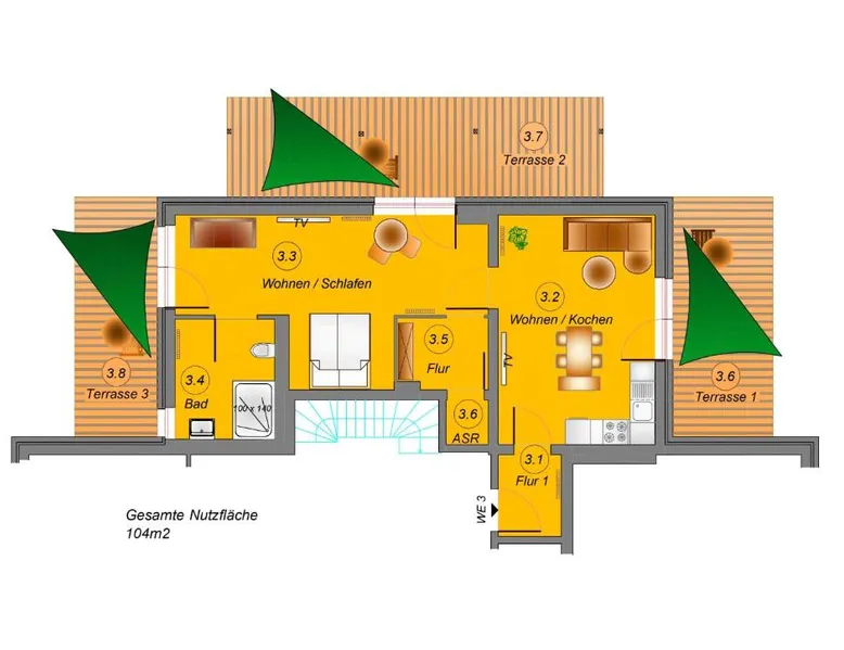Spacious Accommodations: Suite VALI - Odins Blick Wohnung 3 - drei Terrassen, Privatstrand, Sauna, ruhige Lage in Lobbe offers a spacious apartment with one bedroom and a living room. The property features a terrace, garden, and free WiFi. Modern Amenities: Guests can enjoy a sauna, fitness center, and outdoor seating area. The apartment includes a washing machine, kitchen, barbecue, and a children's playground. Free on-site private parking is available. Prime Location: Located a few steps from Göhren South Beach, the apartment is 22 mi from Open Air Theater Ralswiek and 28 mi from National Park Center Koenigsstuhl. Reception staff speak German. This apartment offers a sauna. This spacious apartment includes 1 living room, 1 separate bedroom and 1 bathroom with a shower and a hairdryer. Guests will find a stovetop, a refrigerator, a dishwasher and kitchenware in the fully equipped kitchen. The apartment also features a barbecue. This apartment has a washing machine, a tea and coffee maker, a TV with cable channels and a terrace. The unit has 2 beds.