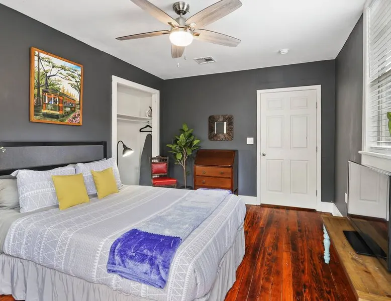 Prime location in beautiful Bayou St. John Just 1.5 miles from the French Quarter 3BR / 2BA classic shotgun house with 3 private queen BRs with closets Backs up on the Lafitte Greenway Steps from iconic Parkway Po’Boys Walk/bike to City Park or the French Quarter via the Greenway Cowboy Pool, great front and back porches Awesome neighbors & chill neighborhood vibes Walking distance to Jazz Fest & City Park, 4 blocks from the Canal Streetcar line Strong WIFI and AC The space "Bright by the Bayou - Cowboy Pool Yard | Parks" **Pool** We're happy to offer the cowboy pool—perfect for cooling off in the New Orleans heat! To help keep it clean, safe, and enjoyable for everyone, please follow these simple rules: Use at your own risk—no lifeguard on duty. Children under 15 must be supervised at all times. Always put the cover back on when you're done using the pool. The chlorine float must stay in the pool with the grate closed—this keeps the water clean. → If the float is removed or the cover left off, a guest charge may apply for cleaning. The filter runs automatically at night. It’s normal for it to be quiet during the day. A net is provided for you to skim any leaves or debris—thank you! Please keep the yard gate closed and locked at all times. Let us know right away if you notice anything unusual (like damage or low water level). Thanks for helping us keep the pool clean and safe—and enjoy your swim! **Bedrooms** - 1 master bedroom with king bed and en suite bathroom - The second bedroom has a queen bed. You walk through this 2nd bedroom to access the master suite. - 3rd BR is a small independent bedroom with a full bed **Bathrooms** - 2 full bathrooms with shower/tub combos **Living Areas & Features** - Original wood floors throughout - Full of historic charm and natural light **Outdoor Spaces** - Front porch with a view of the park - Grassy backyard with picnic table, string lights, a blood orange tree and a ruby red grapefruit tree - Shared porch and yard with the other half of the duplex **Neighborhood Perks** - Watch or join bocce ball, softball, basketball or soccer across the street - Located in a vibrant, walkable area with lots to explore nearby **House Rules** - Quiet hours after 10pm - No parties, please :) Guest access There is keyless entry with a code, so check in is super easy. I will be able to help with suggestions and any issues that should arise. I live on the other side of the double house but I'm usually traveling or out and about. When around, I am always happy to share a drink and/or conversation on the front porch or backyard. Registration details 20-RSTR-00821, 23-OSTR-10030
