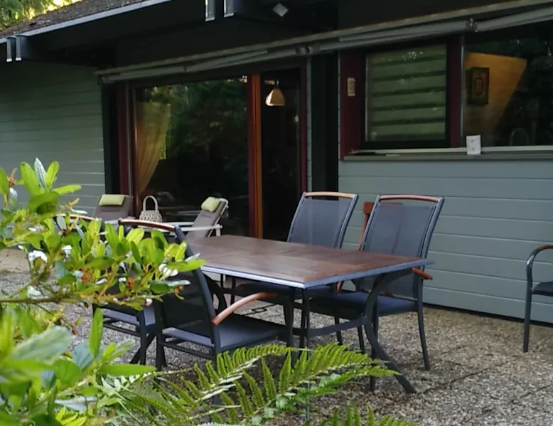 the wood-frame house is located in a very quiet area by the river, 5 minutes from the city center on foot The space Wooden architect's house, on one level, very pleasant, bright and in a very quiet area. The garden and waterfront terrace allow relaxation and escape. A large courtyard allows several cars to be parked (electric gate). The house is fully fenced. Guest access Guests have the house fully