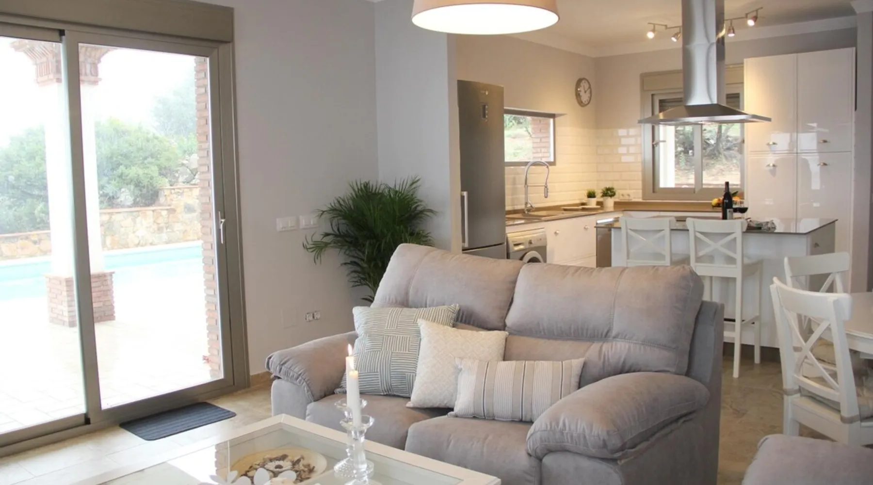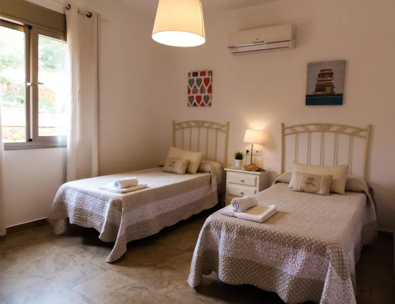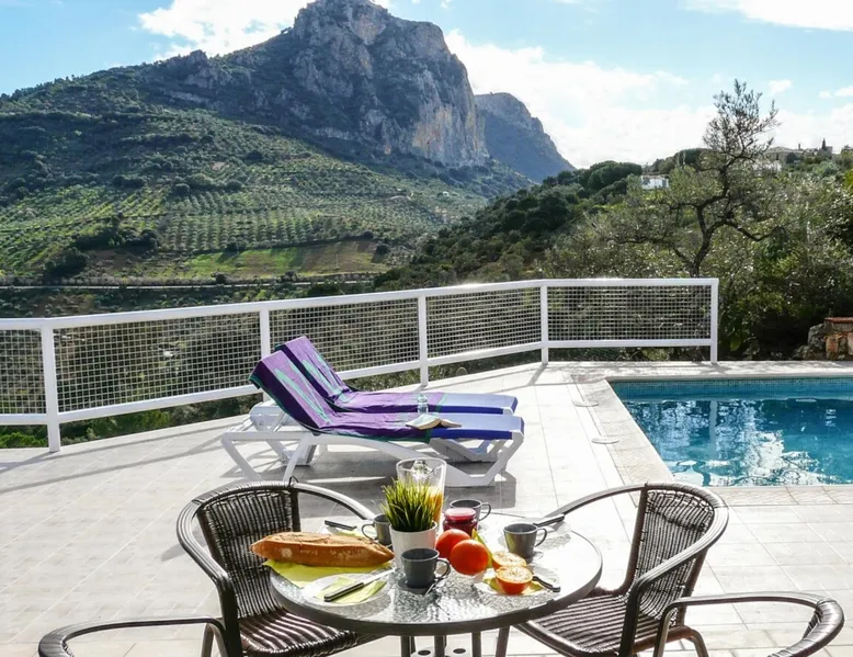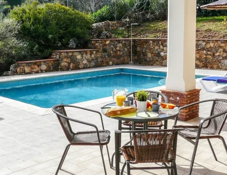 House with two spacious rooms, bathroom included inside the room and private terrace in the suit. Living room and kitchen with open design and direct access to the pool and the BBQ area. Fireplace, air conditioning, heating,, plasma TV with extra open channel plus and open channel and WiFi. High-end appliances, including an oven, washer, microwave, dishwasher, and full kitchenware. The space Breathtaking views of the village and the Tagus of the Algarin, a 400m tall stone giant, the pride of the gastoreños, and vulture nesting area, don't forget the binoculars to see them closer.