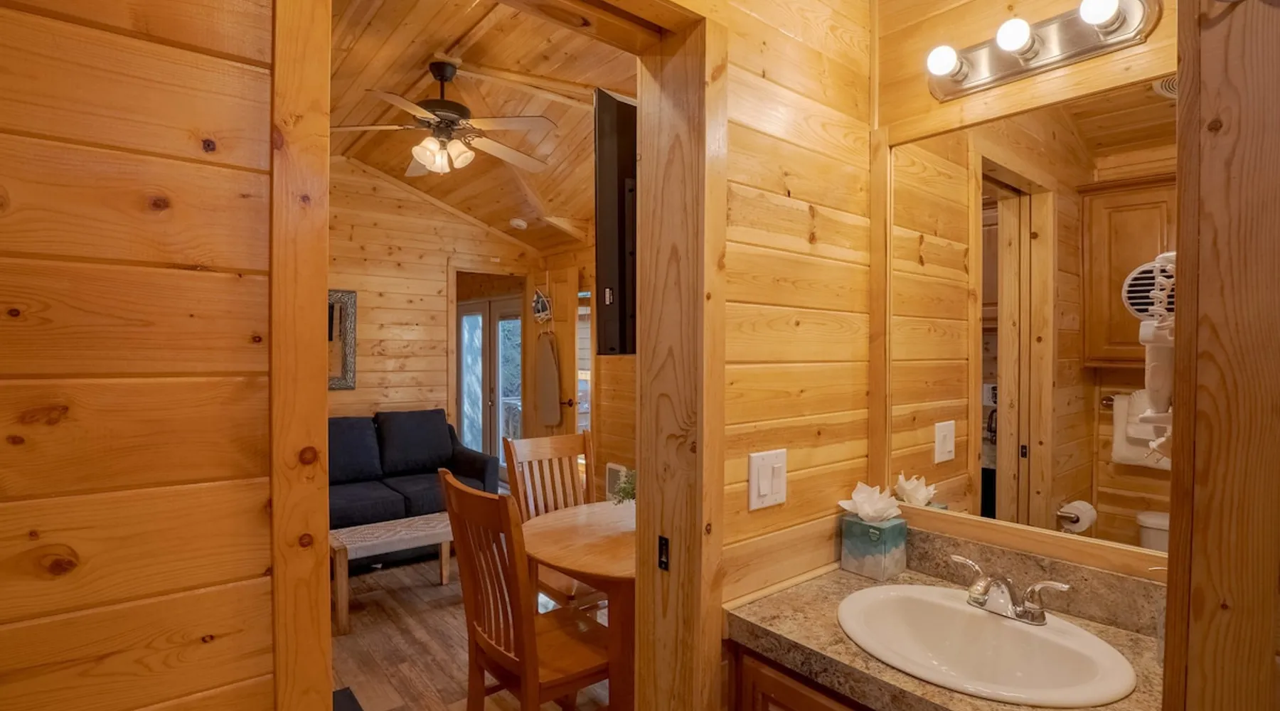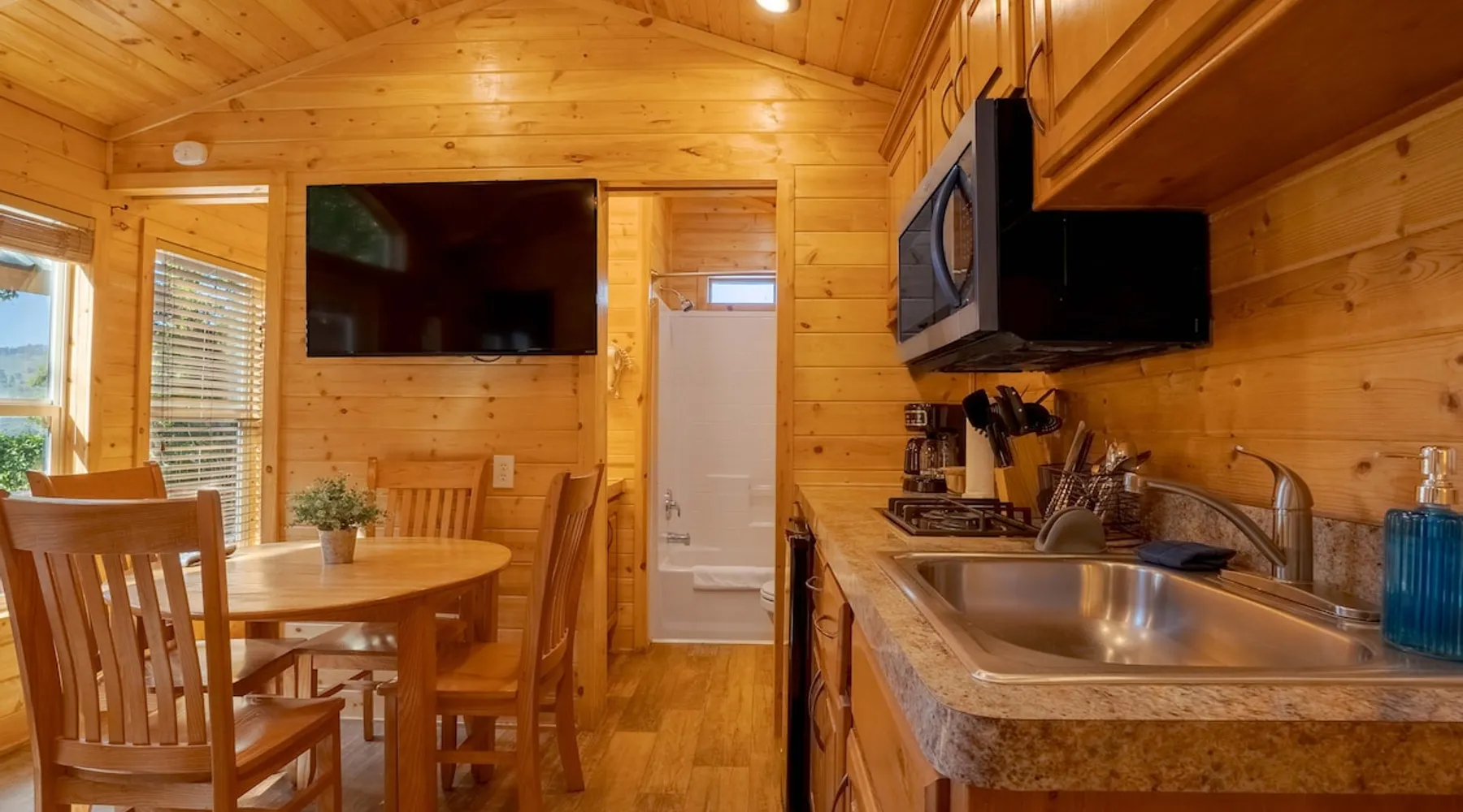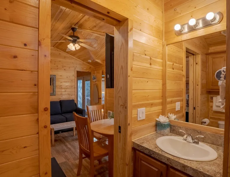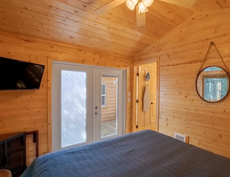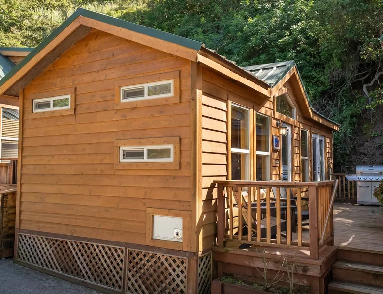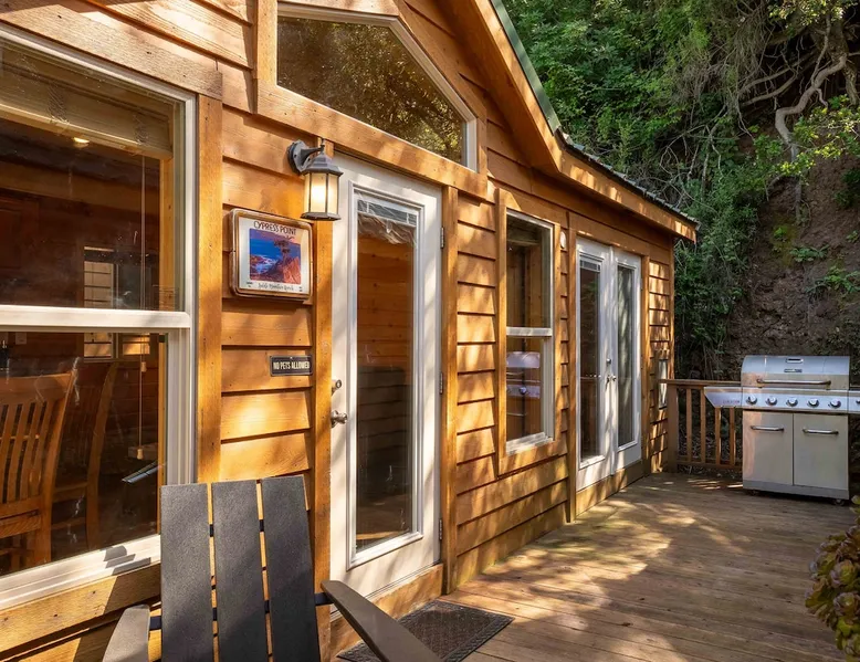Our cozy single-story cabin features a spacious master bedroom with a luxurious king-sized bed, a charming bunk room with two comfortable single beds, and a convenient queen-size pull-out couch in the living room for additional guests. The master bedroom opens to a private deck with a propane BBQ grill. Includes a fully equipped kitchen with a mini refrigerator, and a full bathroom with a shower/tub combo. Sleeps 4-6. *Please note that this cabin is not pet-friendly and is smoke-free.* The space Saddle Mountain Ranch, RV Park and Campground is located on 89 acres of forest land off Carmel Valley Road, just 5 miles from HWY 1. Only 7.8 miles from lovely Carmel Beach with its white sands; and 8.5 miles from Point Lobos State Natural Reserve in Big Sur. Other things to note All of our cabins and RV sites are grouped into 2 locations at our campground. Cabins and RV sites are on average 6-12’ apart. This cabin rental includes parking for 1 car. If more cars need to be parked, a parking permit may be obtained at the front desk for $30, 1 additional vehicle max. This cabin does not have allocated parking in front of the cabin and it will require you to park 1-3 minute walk from the cabin. This cabin rental base price includes 4 people, additional people are billed at $15 per adult and $10 per child per night on top of the base price. The park is an eco-friendly resort and mindful of the beauty that surrounds us. To that end, each cabin is stocked with enough bath towels for the number of guests booked. No pool towels are provided, we recommend bringing your own. On site seasonally heated pool (mid May through Oct), private hiking trail, playground, ping pong table and more. No refund for inclement weather during the Winter months. Complementary WIFI is available at our WIFI decks only. Check-in hours: 3pm - 6pm (assisted, office check-in) 6pm-8pm (self check-in) __ *Please continue reviewing/monitoring California Travel guidelines as they may change and affect your reservation*