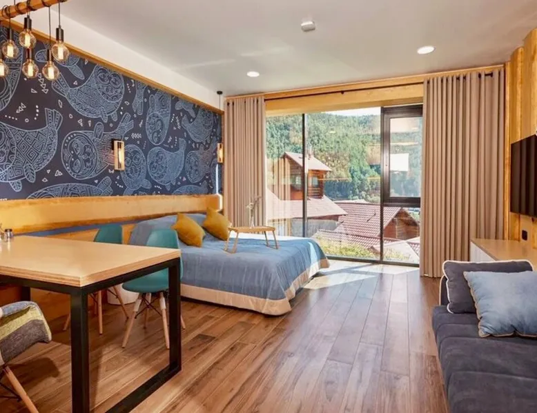 Baikal Hill apartments - a bright and spacious apartment with a panoramic view in the village of Listvyanka. Lake Baikal is within walking distance. The unique design on the Baikal theme, the atmosphere of coziness, silence and modern equipment of the apartment is ideal for your weekend. The space One of our main advantages is the homely and cleanliness! It has fully equipped kitchen, bathroom with bathtub and washing machine, heated floor, free 24/7 parking and beautiful view from panoramic windows. In addition, all apartments have a private entrance, are equipped with free WiFi, air conditioning, 4k TV and have everything you need for a comfortable stay. Netflix and Okko streaming platforms are also connected. In each apartment, we put fresh milk, filtered water, fresh fruits, cereals, coffee capsules, tea, herbal Baikal collection and sweet treats for you. Cleaning in our apartments corresponds to the enhanced protocol, which includes disinfecting all surfaces using antibacterial agents. We value your comfort and try to do everything we can to create it! Guest access The apartment hotel is located in the village of Listvyanka at 21 Gornaya str. Our guests have free parking in the yard of the complex. Other things to note For your attention, there are several offers of apartments. You can check them out on our profile!