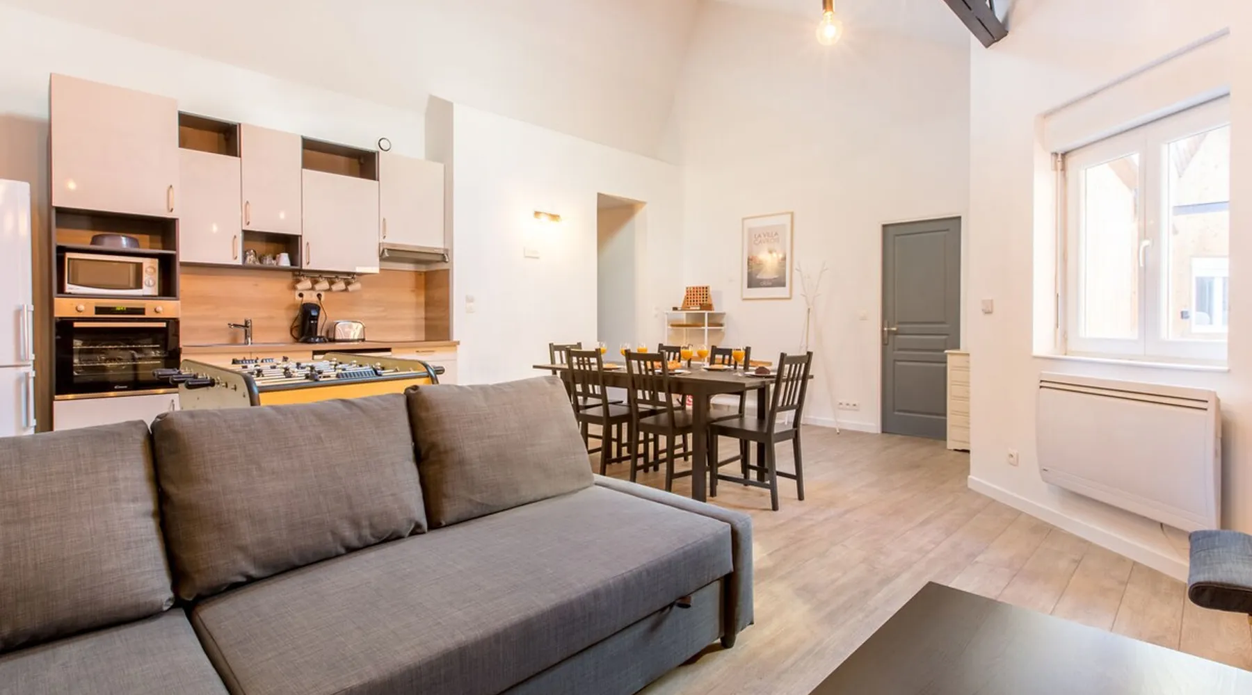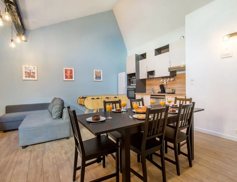 Le FLAMAND... northern decor and wooden games! Entire apartment in industrial style; decoration of cities and tourist places of the north. Wooden games available. 200 m from the train station and metro. Baby crib/bathtub on site at all times. 1 underground parking space on site. Fiber WIFI The space On a practical level, bed linen is provided as well as 3 large and 3 small towels. Washing machine and dryer in the apartment. A few coffee pods; tea; sugar; condiments; dishwasher and washing machine products to get started... Other things to note The listing is located on the 2nd floor without elevator access. Not suitable for people with limited mobility.