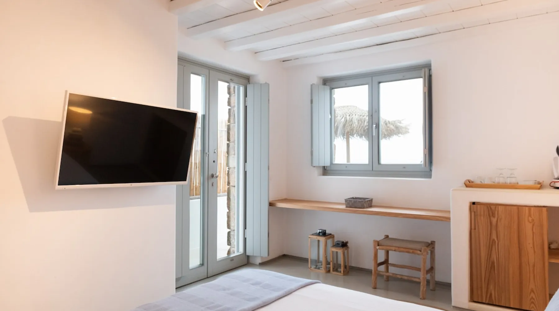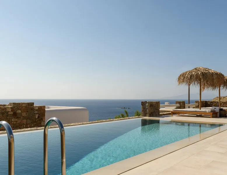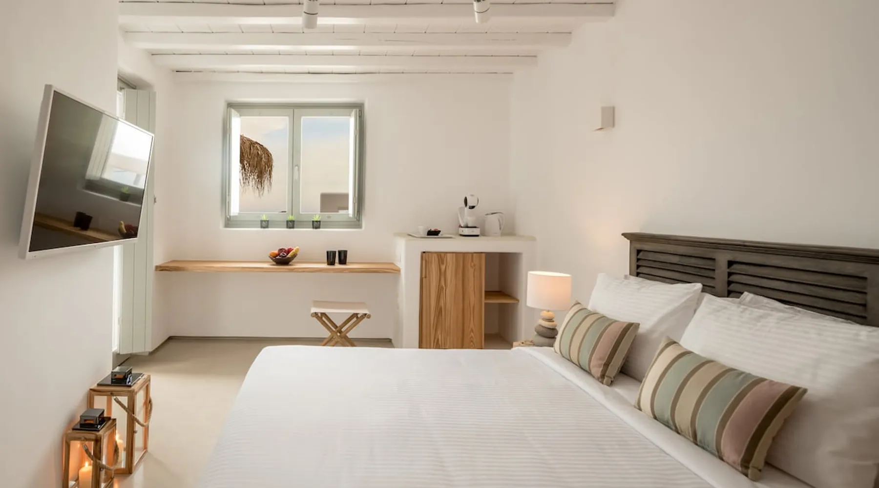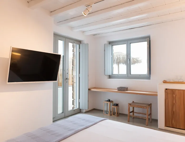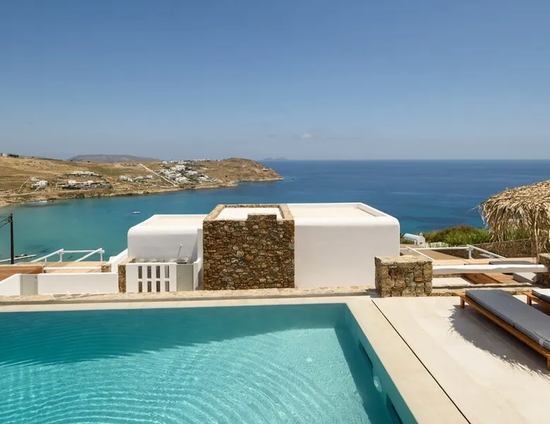 Up-up in Mykonian’s air! Our spacious and unique Belvedere Suite is swathed in a harmonious color scheme. It features a terrace with breathtaking sea views by sitting in Paola Navone sofas. The suite is 50 square meters and can accommodate 2 people in a double bed. The space Bask in the sun and soak up the views at this Mykonian style hotel, long associated with the Dolce Vita. Pick from the 10 chic rooms at intimate The Summit of Mykonos, a stunning boutique hotel overlooking the Aegean Sea and the bay of Kalo Livadi beach famous for the golden sand and the recognized world class beach bars. The Summit is where dreams come true. A luxury hotel retreat hanging over the sea. In this idyllic location, we offer a seductive blend of style, serenity and five-star comfort with a range of gourmet restaurants nearby and choice of rooms, suites and apartments. We are really proud from what we want to offer to each valued guest so we invite you to lie back, relax and savor the moment. Guest access Transfer service upon request. Registration details 1173K91001290101