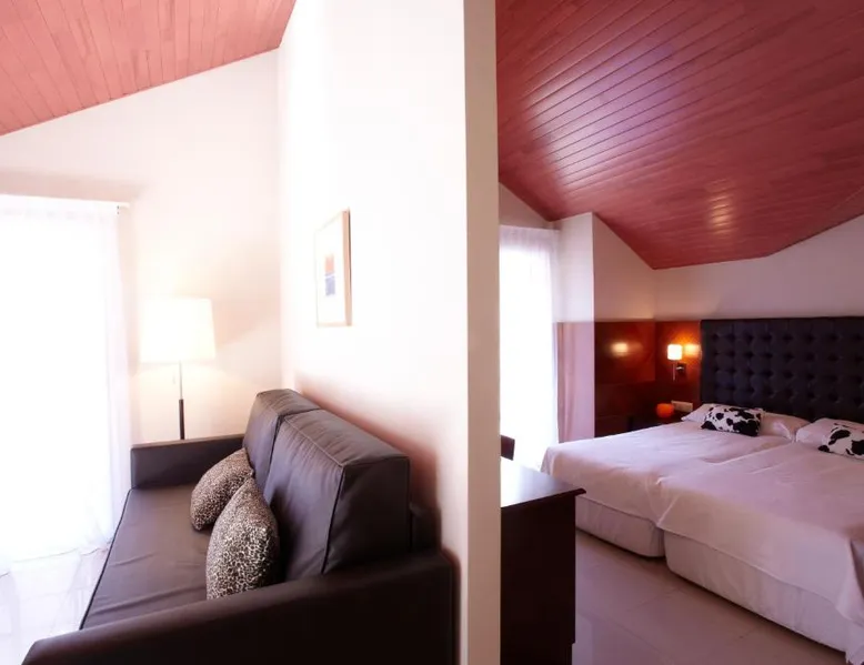 Comfortable Accommodations: Hotel MU in La Cortinada offers family rooms with private bathrooms, mountain views, and modern amenities. Each room includes a work desk, free toiletries, and soundproofing for a restful stay. Exceptional Facilities: Guests can relax in the garden, terrace, or bar while enjoying free WiFi. Additional facilities include a lounge, games room, and outdoor seating area. Private check-in and check-out services ensure a smooth arrival and departure. Dining Options: A continental buffet breakfast is served daily, featuring warm dishes, fresh pastries, cheese, fruits, and juice. The on-site coffee shop and bar provide additional dining options. Prime Location: Located 16 mi from Naturland and 9.9 mi from Meritxell sanctuary, Hotel MU is close to attractions such as Golf Vall d'Ordino (1.4 mi) and Estadi Comunal de Aixovall (7.5 mi). Skiing and cycling activities are available nearby. This suite consists of 1 living room, 1 separate bedroom and 1 bathroom with a shower and free toiletries. The suite provides soundproof walls, a seating area, a wardrobe, a flat-screen TV, as well as mountain views. The unit offers 3 beds.