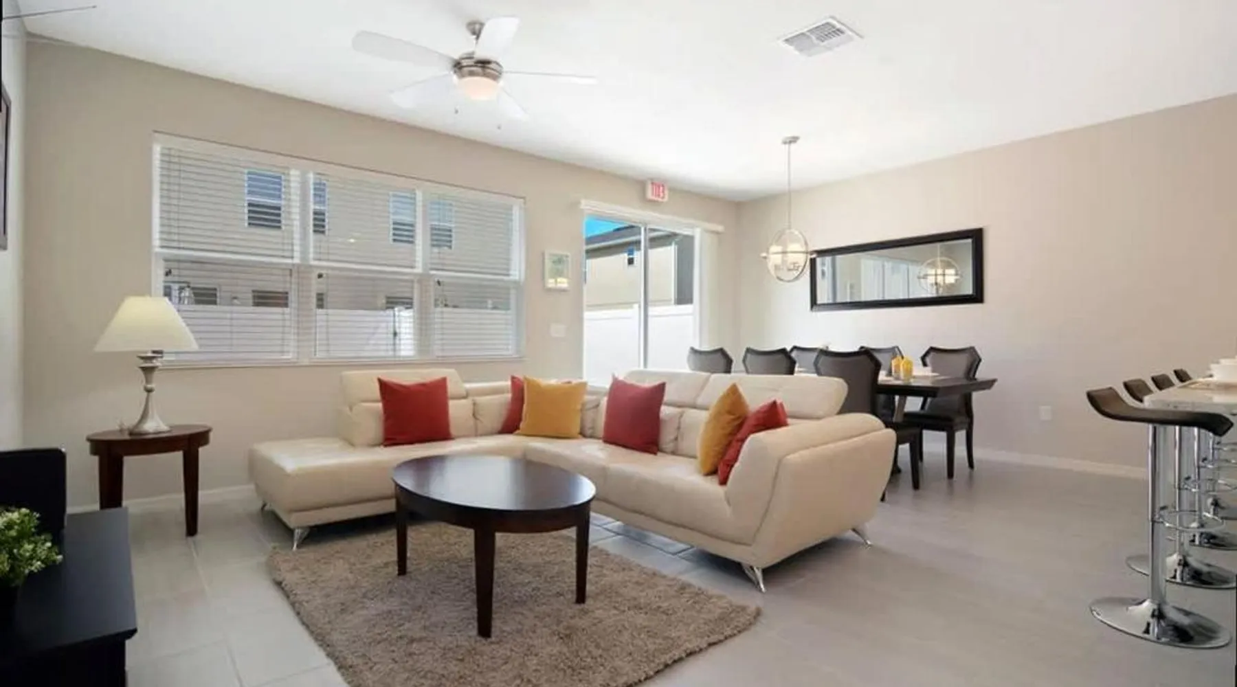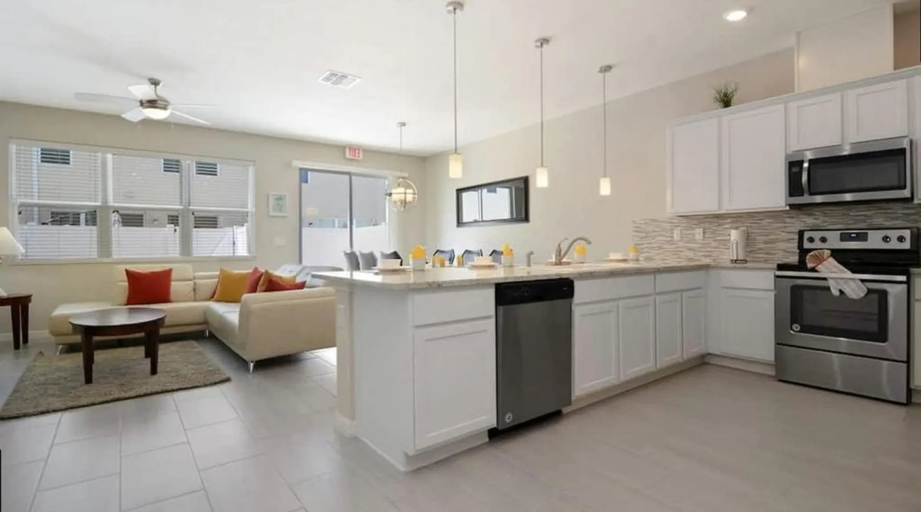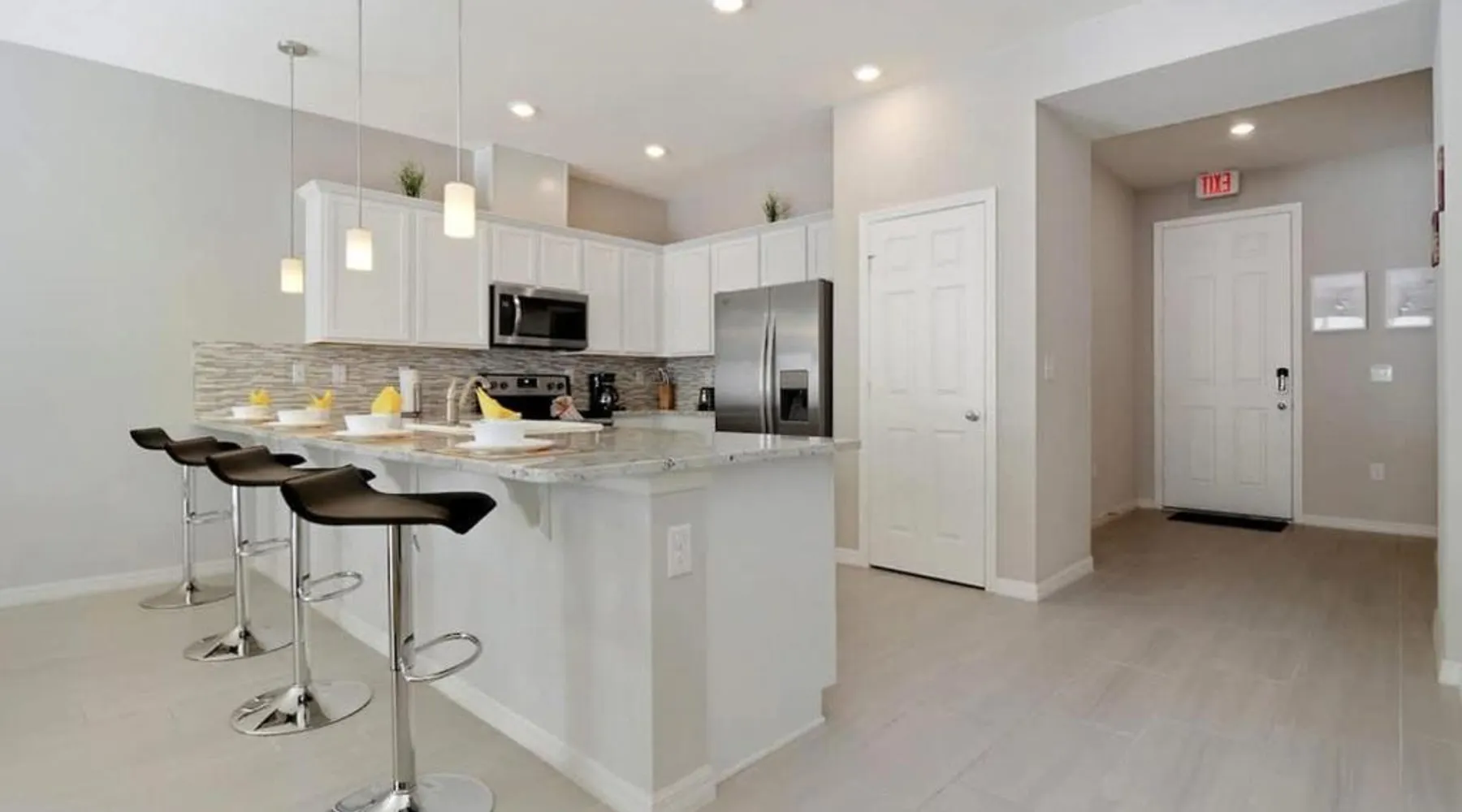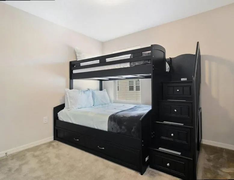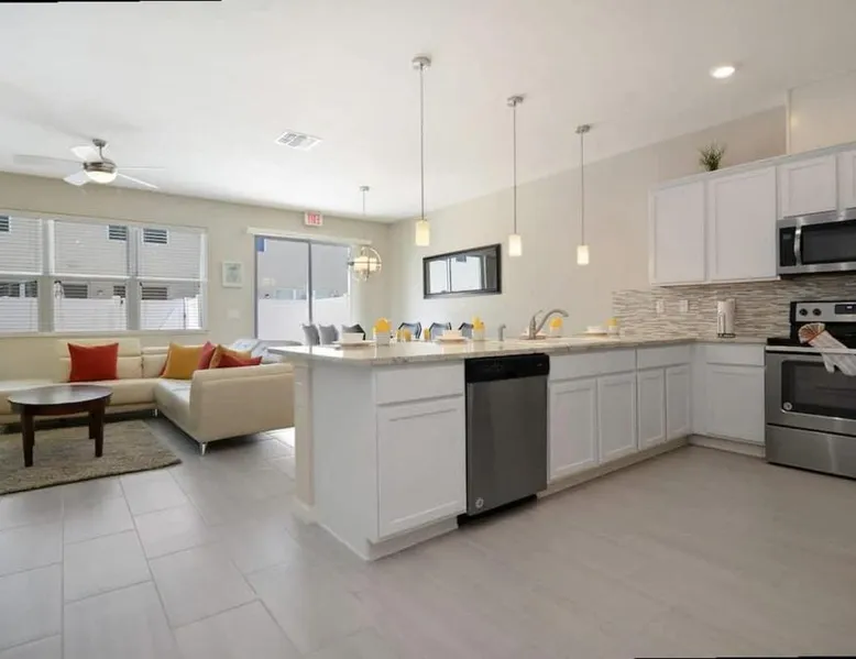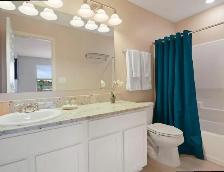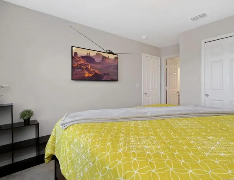 Spacious Accommodations: Four Bedrooms TownHome 5130 in Kissimmee offers a spacious holiday home with four bedrooms and four bathrooms. The property features a private entrance and a fully equipped kitchen with modern appliances. Leisure Facilities: Guests can enjoy a spa and wellness center, fitness center, outdoor swimming pool, and a waterpark. Free WiFi is available throughout the property, ensuring connectivity. Local Attractions: Located 18 mi from Orlando International Airport, the holiday home is close to ESPN Wide World of Sports (5.6 mi), Disney Springs (5.6 mi), and Disney's Hollywood Studios (5.6 mi). Other attractions include Gatorland and SeaWorld Orlando, each 6.8 mi away. Activities: The property provides access to cycling and surfing in the surrounding area. Free on-site parking is available for guests' convenience. Boasting a private entrance, this spacious apartment also includes 4 separate bedrooms and 4 bathrooms with a bath and a hairdryer. In the well-equipped kitchen, guests will find a stovetop, a refrigerator, a dishwasher and kitchenware. The air-conditioned apartment offers a TV with cable channels, a washing machine, a tea and coffee maker, a wardrobe as well as lake views. The unit has 7 beds.