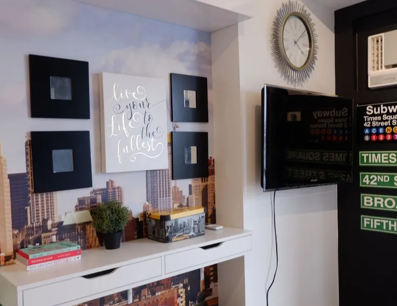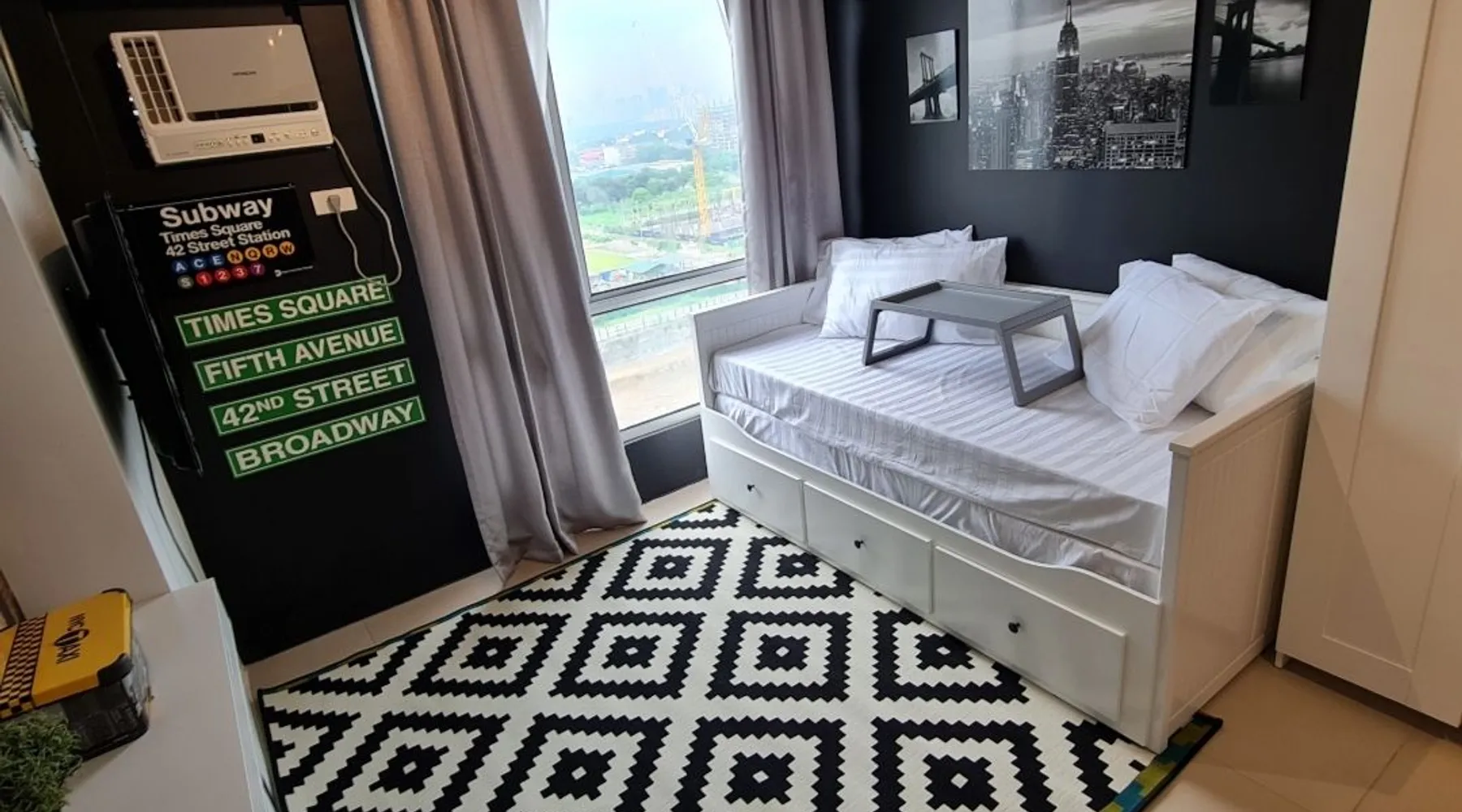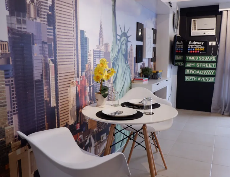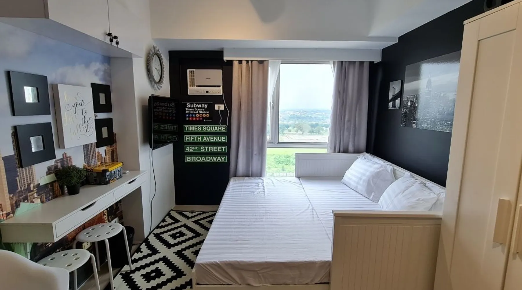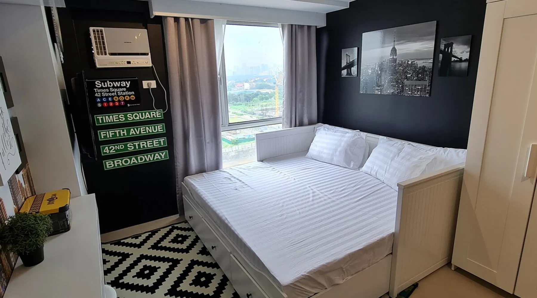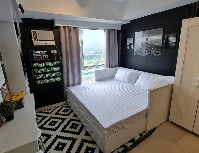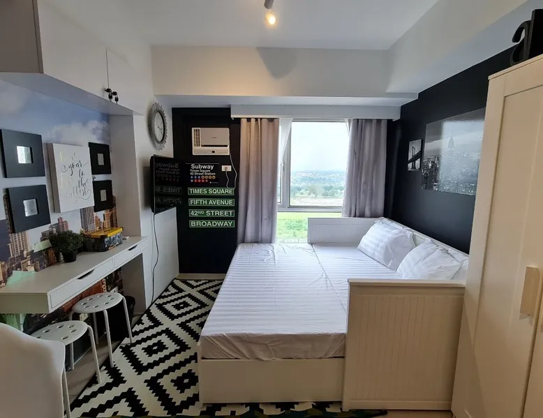 New York themed fully furnished studio with cozy interiors. Located at West Bicutan, Arca South, the metro's newest emerging growth center. Quiet.... Guaranteed 24/7 security. Landmarks include: NAIA 3- 4.7 km BGC-5 km Makati CBD -7 km