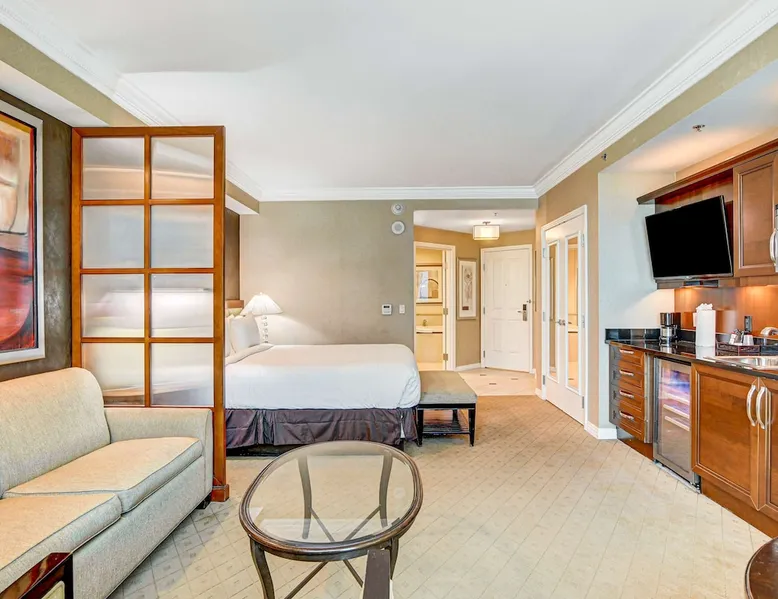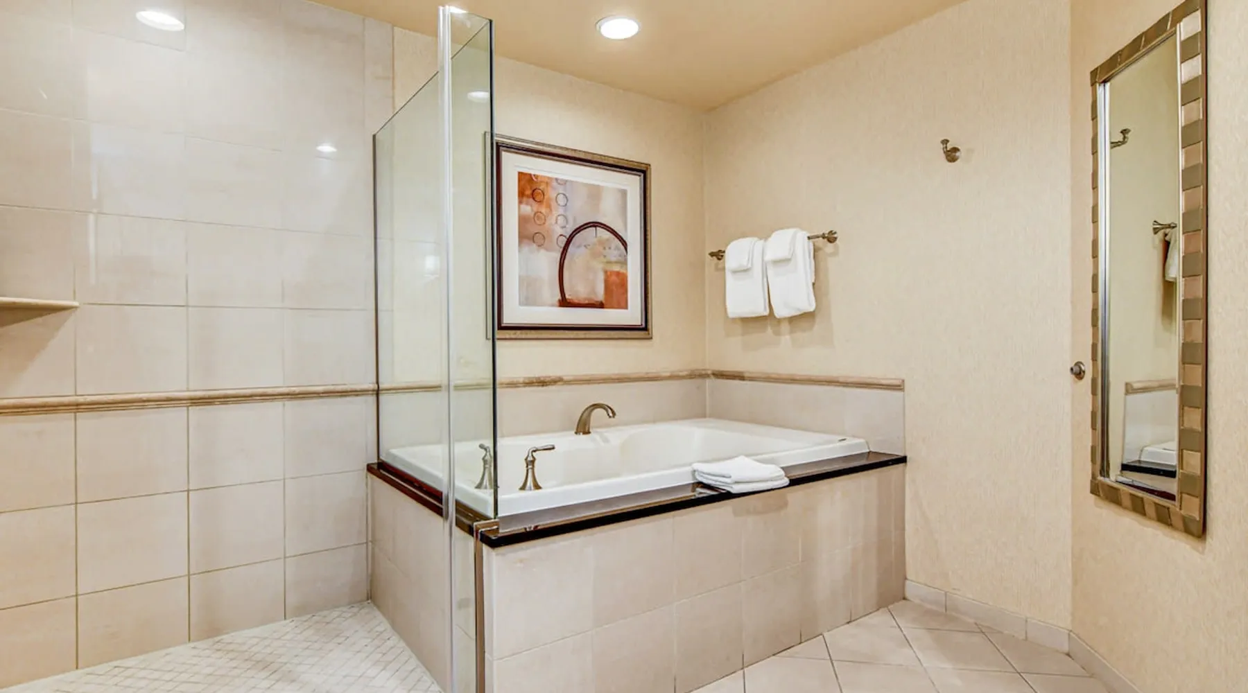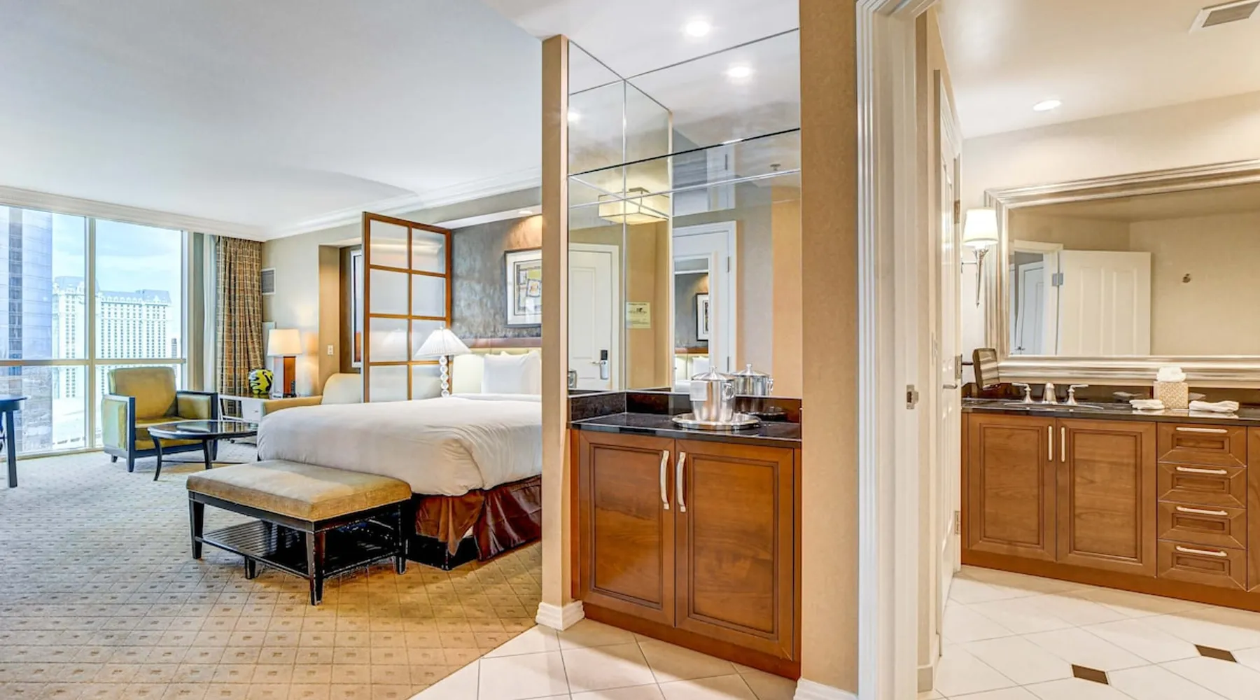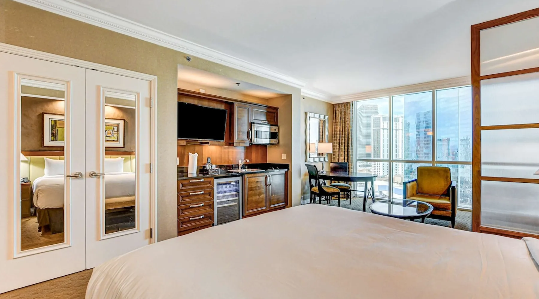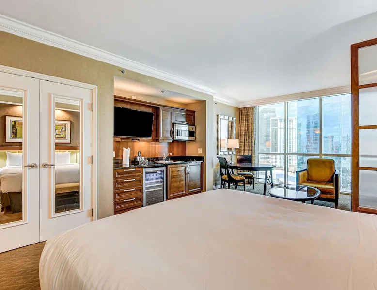 Welcome to the Signature MGM, offering access to all fantastic amenities at MGM Grand and MGM Signature, including the MGM Grand Pool and Wet Republic. HIGHLIGHTS: Strip Views – Pool & Gym Access – Kitchen – Resort Access. Our property is just a block from the vibrant Strip, featuring spacious rooms at incredible prices. Easily reach MGM Grand via walkways; the monorail station is a short stroll away. NOTE: Daily $55 transient destination fee collected separately by host before check-in. The space Step into your 900Sq, 1 Bedroom retreat and savor the sweeping views of the Strip. Your suite features a convenient kitchenette and a lavish marble bathroom with a private whirlpool spa tub and separate shower. This chic condo is thoughtfully equipped with modern amenities, including a microwave and dishwasher, as well as an entertainment center boasting a flat-screen TV. Dive into relaxation at the pool or maintain your fitness routine at the on-site fitness center. Each unit offers a private bathroom stocked with complimentary toiletries, while plush towels and bed linen are provided for your comfort. Stay comfortably cool with air conditioning throughout the property, and stay connected with free WiFi available throughout your stay. Worry-free parking is also included with free private parking on site. Guest access Private entrances & exclusive pools. Access to MGM Grand’s pools, casino, & attractions. Complimentary fitness centers & Wi-Fi. 24/7 concierge, front desk, & valet. Access to all swimming pools, including the MGM Grand Pool (availability may vary based on the hotel's pool schedule and seasons), as well as a fitness center conveniently located in Tower 1. Other things to note IMPORTANT: NOTE: Daily $55 Transient destination fee that will be collected by the host separately before the check in date. - The hotel may require a refundable deposit for incidentals upon check-in (subject to change without prior notice). - Specify the exact number of guests during check-in for appropriate linens or additional beds. - Plan to arrive early, especially during busy hours, as there may be wait times during check-in. - Be aware that valet service wait times may be longer during peak hours.
