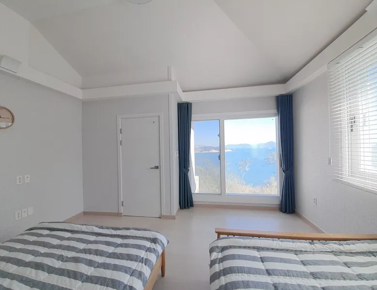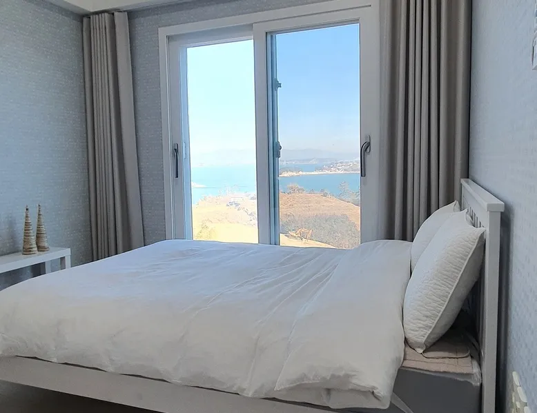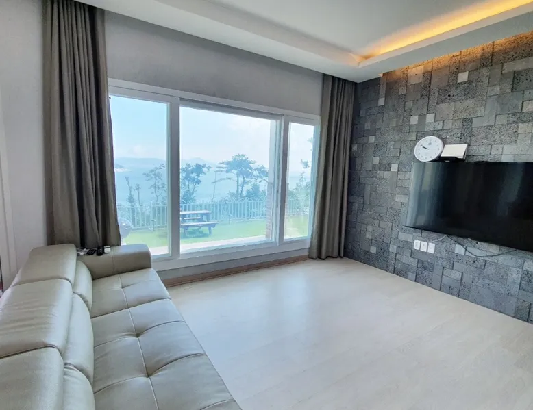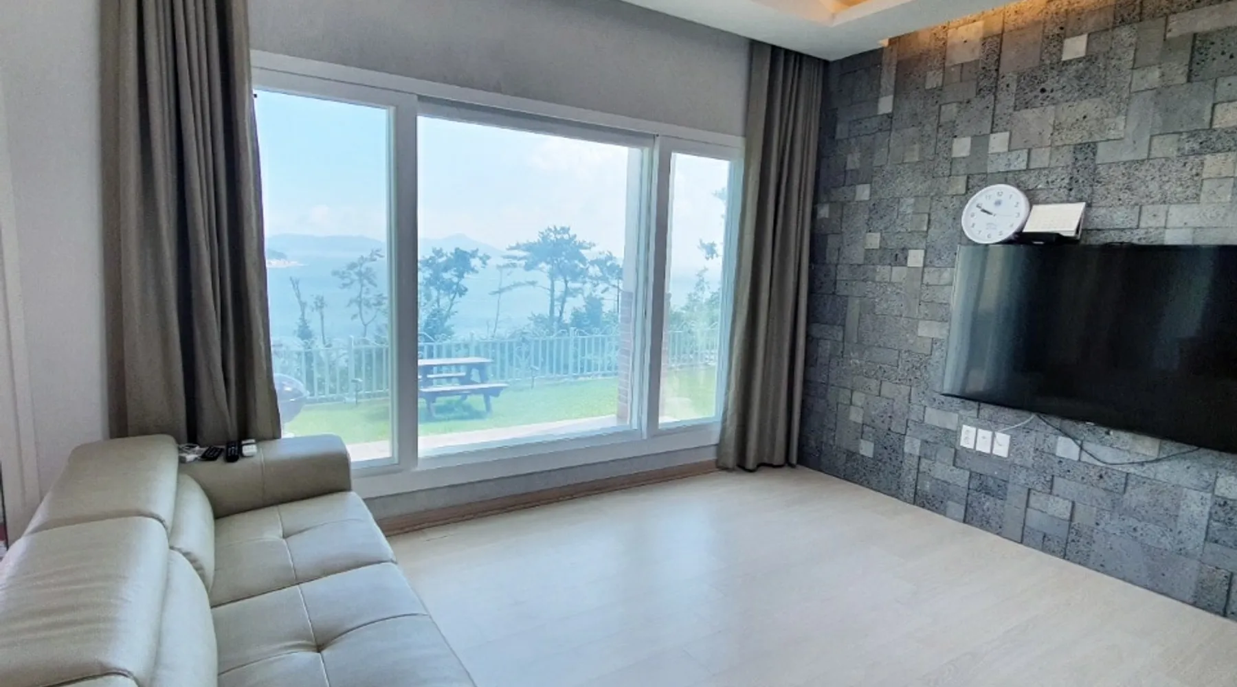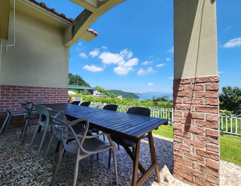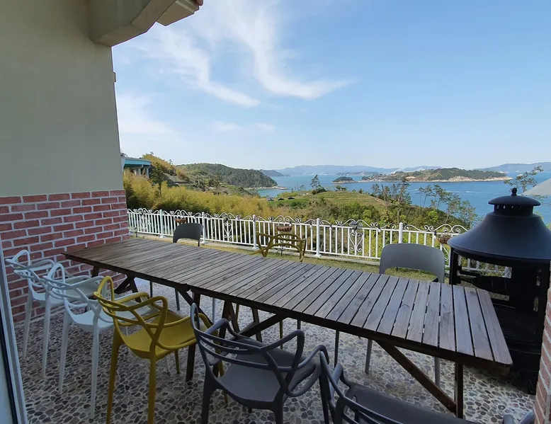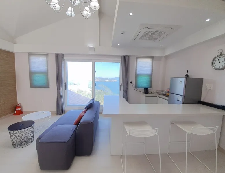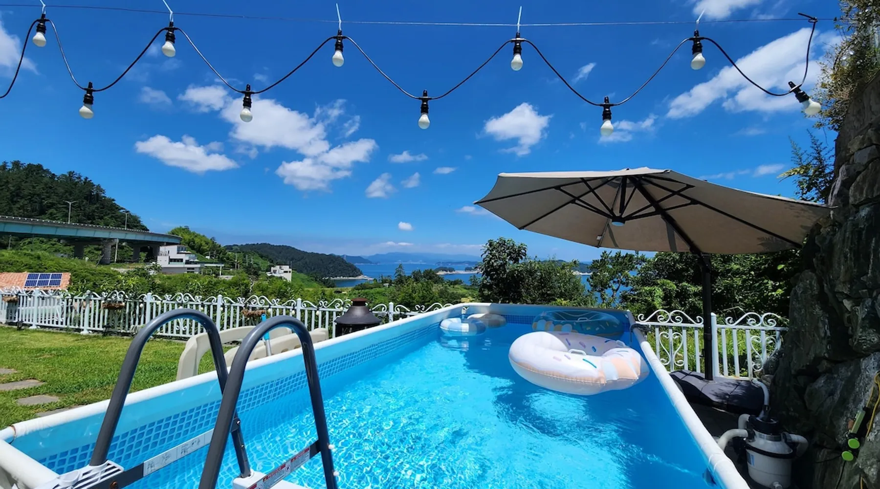 All living room, room, kitchen with ocean view! It is a luxury new cottage with a view where you can enjoy the beauty of the fantasy island of Geoje Island. You can have a barbecue party while drinking good air and looking at the beautiful scenery, and it is suitable for families or lovers to have a good time at the simple swimming pool (hot water available). It is the only surfable in Geoje Island, and the sandy Heungnam Beach is a 2-minute drive away, and it is a 4-minute drive away. 47 pyeong is a two-story detached house with air conditioning in every room and living room. We will disinfect with our own disinfector after check-out. Oepo Port, famous for Anchovy and Daegu, is a 2-minute drive away, and Hanaro Mart, pharmacy, and Nonghyup are 1 minute away, so you can buy the items you need in a hurry. I hope you make pleasant memories while looking at the light of the big bridge ^ ^ The space It is a cottage complex where you can enjoy the night view of Geoje Island and fresh air. You can enjoy a barbecue in the natural grass garden, and you can also use the heated swimming pool to enjoy the water. You can see the beautiful sea from all the living rooms, rooms, and kitchens, and it is very suitable for relaxing in a clean space ^ ^ There are children's slides, toys, etc., so it's hard to come as a family. ^ ^ Have a great day at home full of happiness and happiness♡! Guest access Entire home facilities available (except storage) Living Room 2 Room 3 Toilet 2 Garden Kitchenette Pool Barbecue Grill Other things to note Our accommodation is a house located in a townhouse complex. Please be considerate and understanding for other neighbors from 10 pm to 9 am:) Please refrain from using the trampoline from 09:00 pm to 09:00 am ^ ^ Registration Details Region of Issuance: 경상남도, 거제시 License Type: 농어촌민박사업 License Number: 장목면 357호
