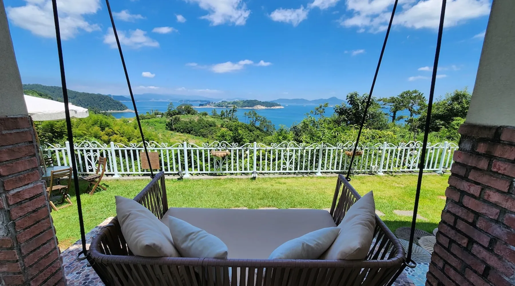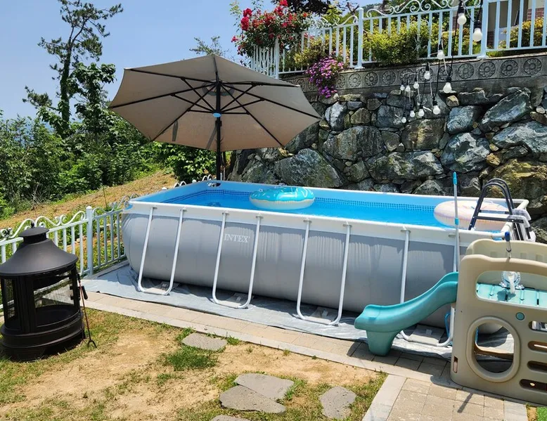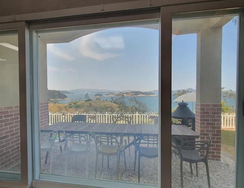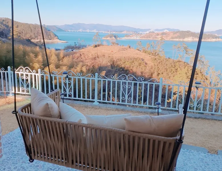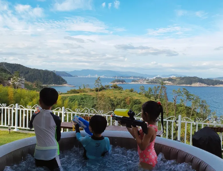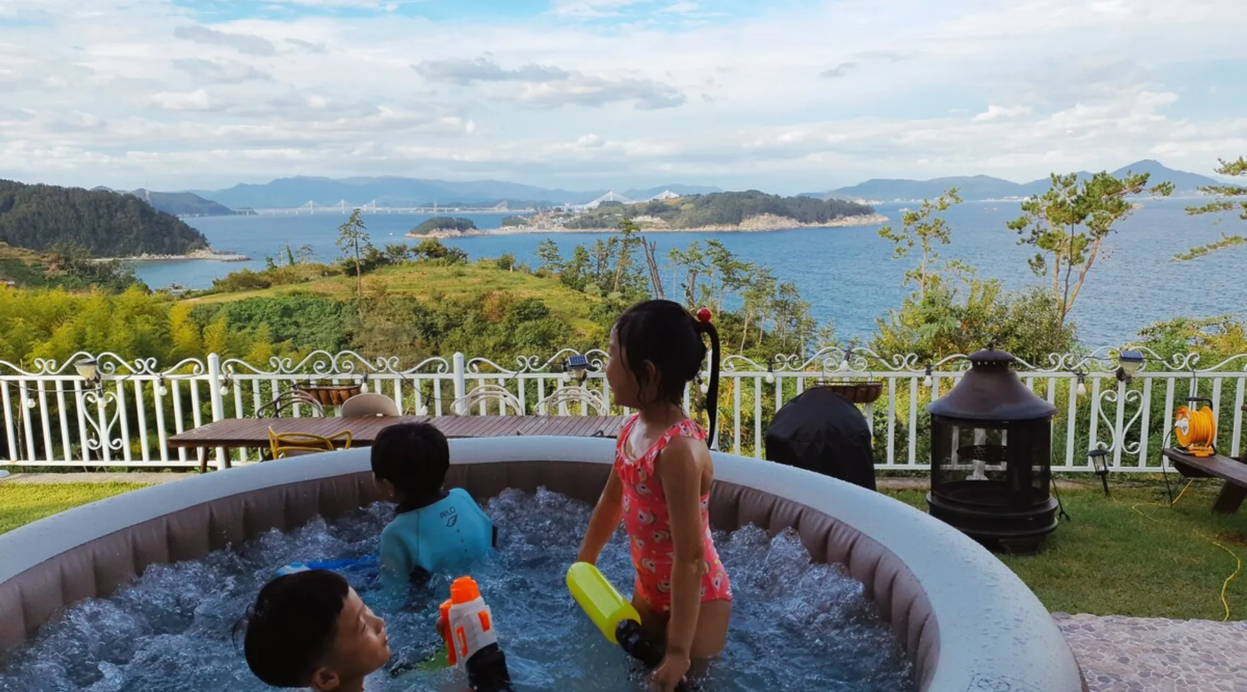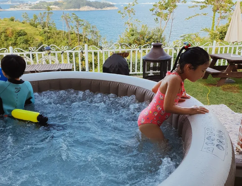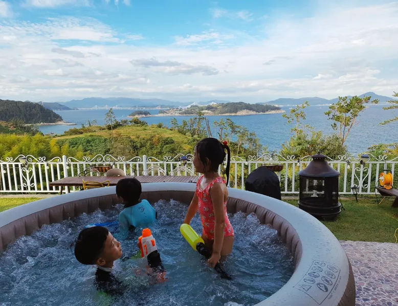 All living room, room, kitchen with ocean view! It is a luxury new cottage with a view where you can enjoy the beauty of the fantasy island of Geoje Island. You can have a barbecue party while drinking good air and looking at the beautiful scenery, and it is suitable for families or lovers to have a good time at the simple swimming pool (hot water available). It is the only surfable in Geoje Island, and the sandy Heungnam Beach is a 2-minute drive away, and it is a 4-minute drive away. 47 pyeong is a two-story detached house with air conditioning in every room and living room. We will disinfect with our own disinfector after check-out. Oepo Port, famous for Anchovy and Daegu, is a 2-minute drive away, and Hanaro Mart, pharmacy, and Nonghyup are 1 minute away, so you can buy the items you need in a hurry. I hope you make pleasant memories while looking at the light of the big bridge ^ ^ The space It is a cottage complex where you can enjoy the night view of Geoje Island and fresh air. You can enjoy a barbecue in the natural grass garden, and you can also use the heated swimming pool to enjoy the water. You can see the beautiful sea from all the living rooms, rooms, and kitchens, and it is very suitable for relaxing in a clean space ^ ^ There are children's slides, toys, etc., so it's hard to come as a family. ^ ^ Have a great day at home full of happiness and happiness♡! Guest access Entire home facilities available (except storage) Living Room 2 Room 3 Toilet 2 Garden Kitchenette Pool Barbecue Grill Other things to note Our accommodation is a house located in a townhouse complex. Please be considerate and understanding for other neighbors from 10 pm to 9 am:) Please refrain from using the trampoline from 09:00 pm to 09:00 am ^ ^ Registration Details Region of Issuance: 경상남도, 거제시 License Type: 농어촌민박사업 License Number: 장목면 357호