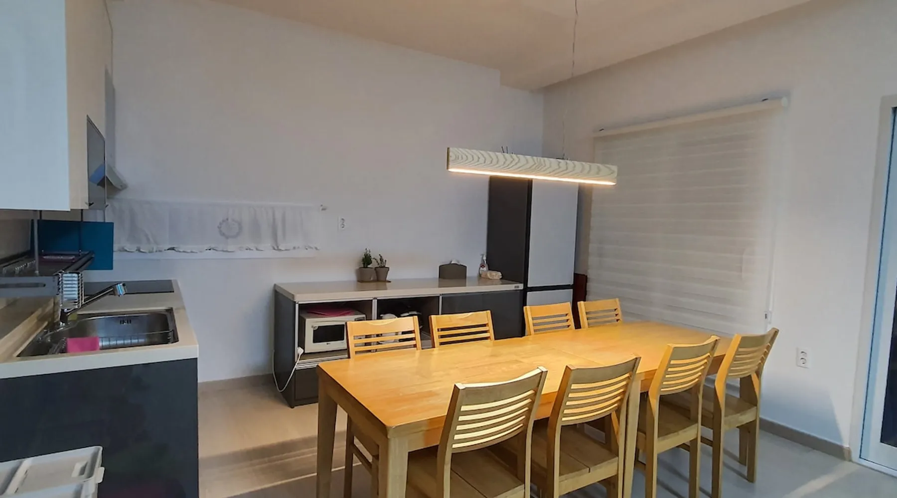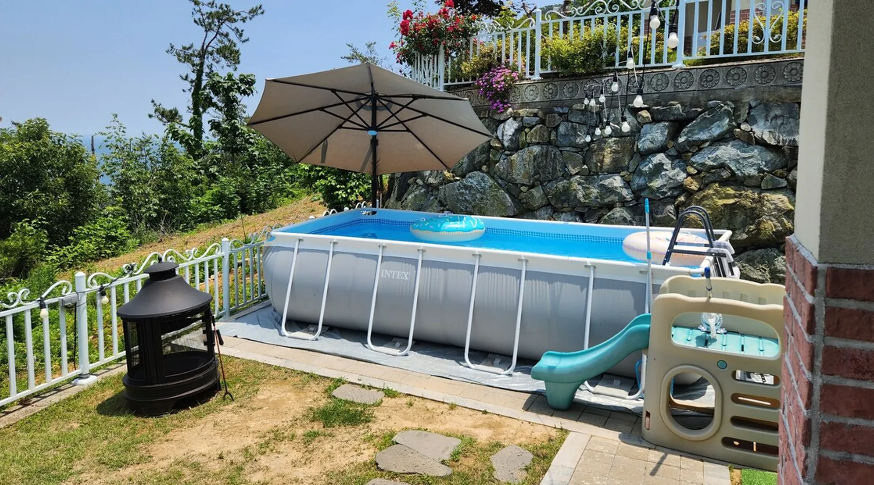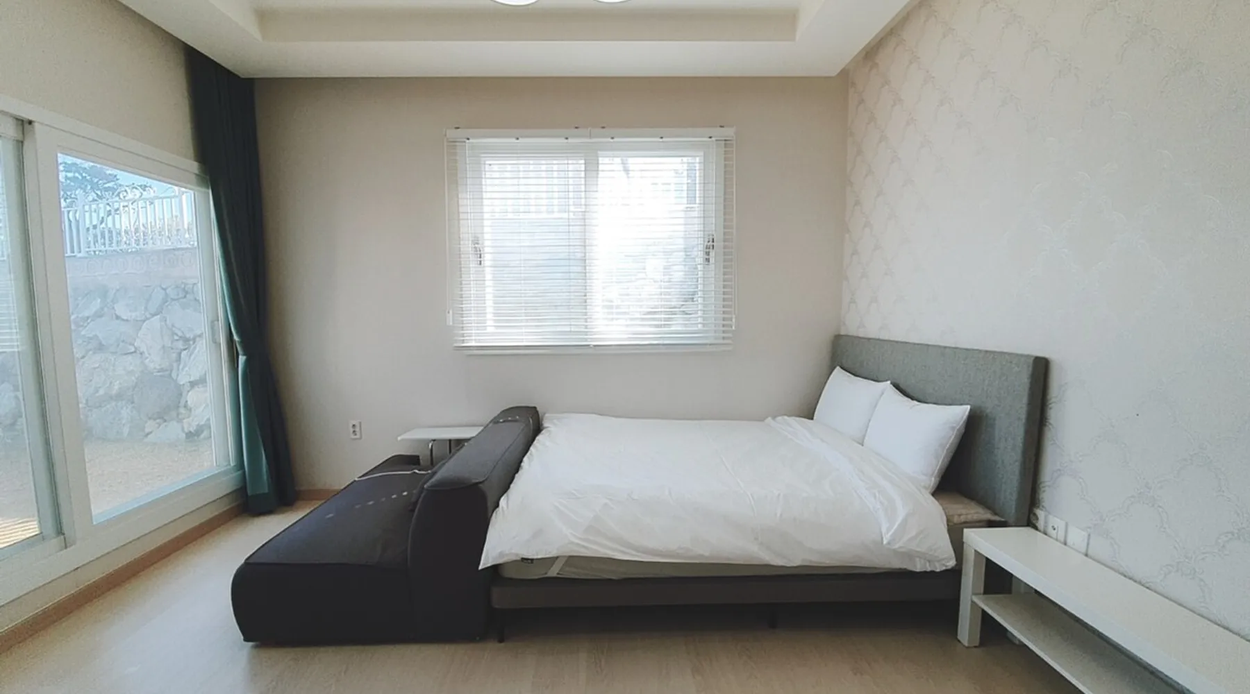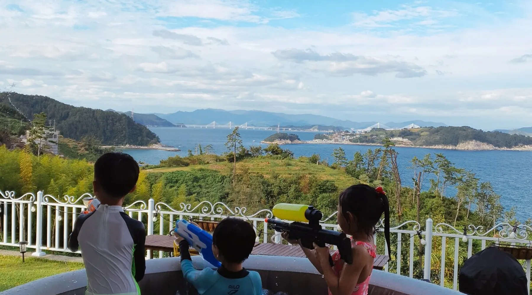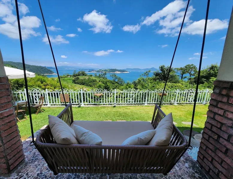All living room, room, kitchen with ocean view! It is a luxury new cottage with a view where you can enjoy the beauty of the fantasy island of Geoje Island. You can have a barbecue party while drinking good air and looking at the beautiful scenery, and it is suitable for families or lovers to have a good time at the simple swimming pool (hot water available). It is the only surfable in Geoje Island, and the sandy Heungnam Beach is a 2-minute drive away, and it is a 4-minute drive away. 47 pyeong is a two-story detached house with air conditioning in every room and living room. We will disinfect with our own disinfector after check-out. Oepo Port, famous for Anchovy and Daegu, is a 2-minute drive away, and Hanaro Mart, pharmacy, and Nonghyup are 1 minute away, so you can buy the items you need in a hurry. I hope you make pleasant memories while looking at the light of the big bridge ^ ^ The space It is a cottage complex where you can enjoy the night view of Geoje Island and fresh air. You can enjoy a barbecue in the natural grass garden, and you can also use the heated swimming pool to enjoy the water. You can see the beautiful sea from all the living rooms, rooms, and kitchens, and it is very suitable for relaxing in a clean space ^ ^ There are children's slides, toys, etc., so it's hard to come as a family. ^ ^ Have a great day at home full of happiness and happiness♡! Guest access Entire home facilities available (except storage) Living Room 2 Room 3 Toilet 2 Garden Kitchenette Pool Barbecue Grill Other things to note Our accommodation is a house located in a townhouse complex. Please be considerate and understanding for other neighbors from 10 pm to 9 am:) Please refrain from using the trampoline from 09:00 pm to 09:00 am ^ ^ Registration Details Region of Issuance: 경상남도, 거제시 License Type: 농어촌민박사업 License Number: 장목면 357호