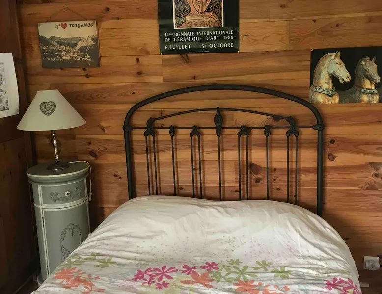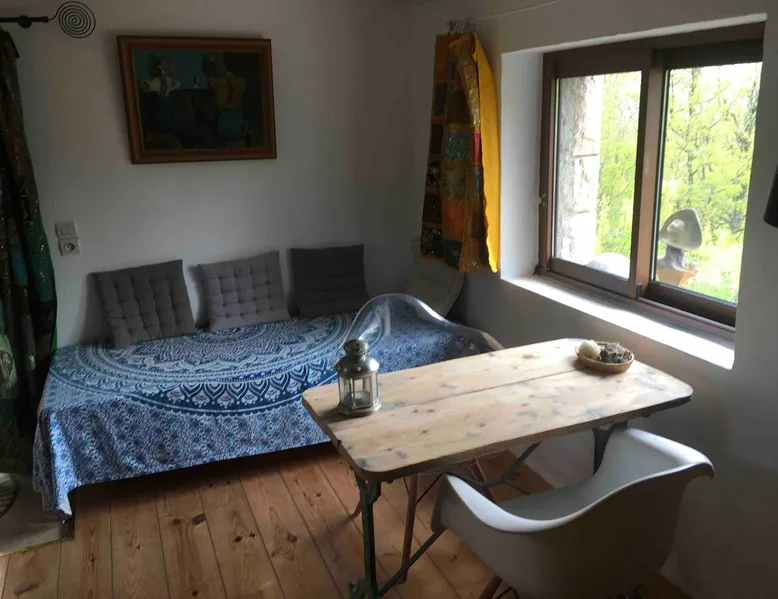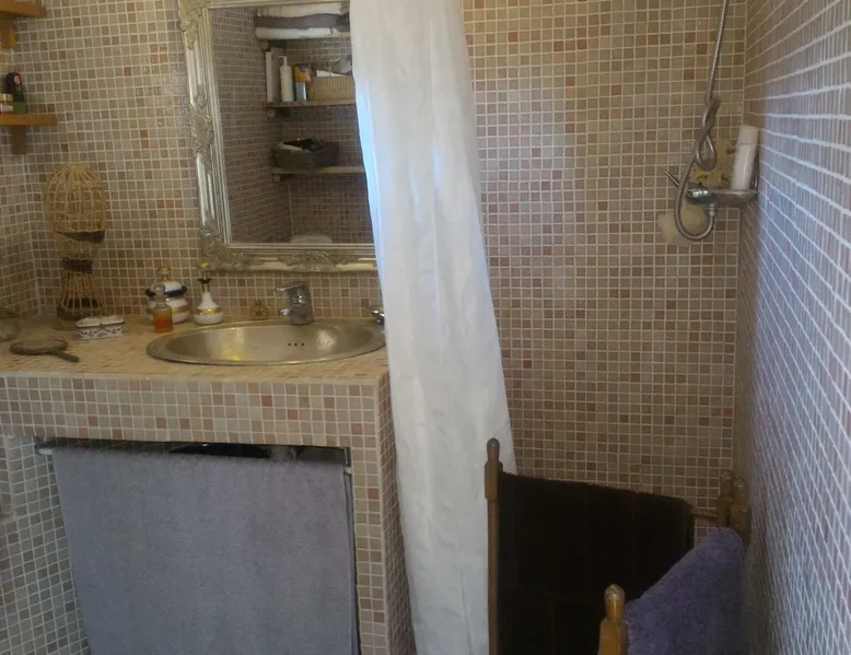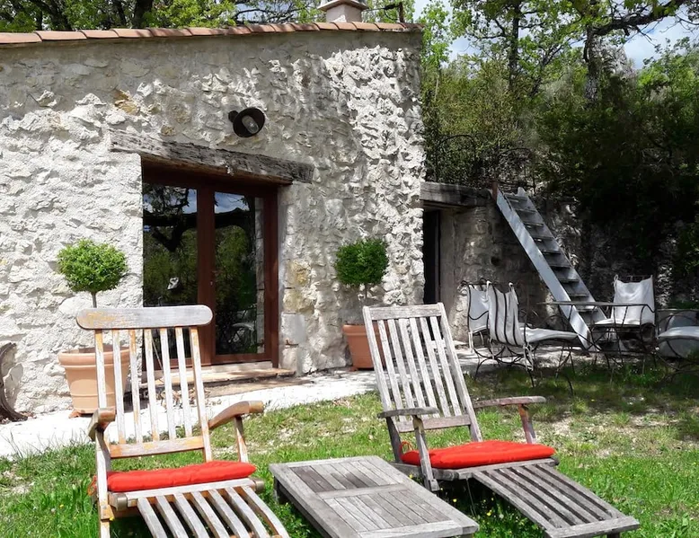 At the end of a trail, absolute tranquility. Just a 5-minute walk from the medieval village of Trigance, you'll find an independent and very quiet room with a shower and toilet in a small stone bastidon, an annex to the main building of this former sheepfold. The space Centenary oaks line the property. Numerous relaxation spaces with sun loungers. Rejuvenating and invigorating, enjoy a moment of relaxation in a family-friendly and welcoming environment. This bastide, known as Maison de la Roche Trouée (rocky peak with a hole located 150 meters away, offering an exceptional view of the plain), is the ideal starting point for hiking. It is located a 7-minute walk from the village center. On-site, we also offer a visit to the pottery workshop, with the possibility of learning this craft. Guest access If you are coming by car, access is via a 400-meter track, starting from the village in the direction of AIGUINES. It is best to use WAZE and enter our address: 177 chemin de la roche trouée. A relaxation area is available with deckchairs and a space for breakfast or meals (garden furniture). Other things to note Coffee machine and kettle for tea in the room. The excellent bakery, which uses wood-fired ovens, offers everything you need for breakfast starting at 9:00 a.m. In the village, another charming business on the square, the grocery store "Le Chardon Bleu," offers a wide selection of fresh and local products. Casino supermarket in Castellane, 20 km away, for those loyal to large retail chains. The room does not have a kitchen but includes a small refrigerator for your picnic groceries. The GR 49 hiking trail runs at the bottom of the access path. The property owner, trained in ceramic creation techniques, will be delighted to present her new Summer 2025 collection.