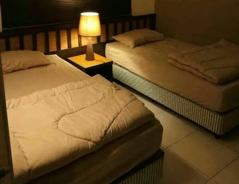 Gold Coast Morib Resort 2 rooms Resort Apartment with 2 super single bed & mattresses and 1 floor mattress in each room and 1 floor mattress in living hall that can sleep up to 7 guests. Kitchen come with mini fridge, electric kettle, kitchen utensil All rooms and living hall come with 1 air-conditioner plus 1 ceiling fan. 1 flat screen TV with remote control, 2 seater sofa plus glasstop table, side table with lampshade, dining glass top table with 4 wooden stools. Water Heater in bathroom. Other things to note have to be vaccinated two docs