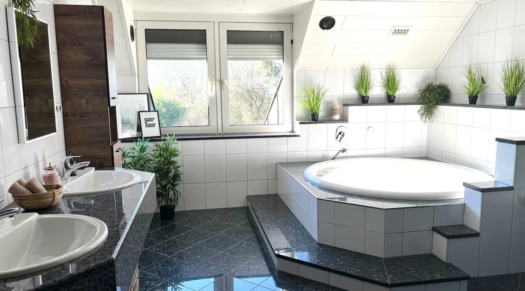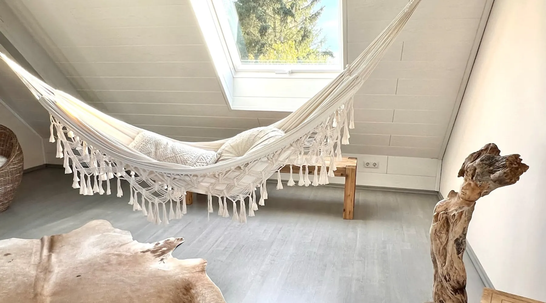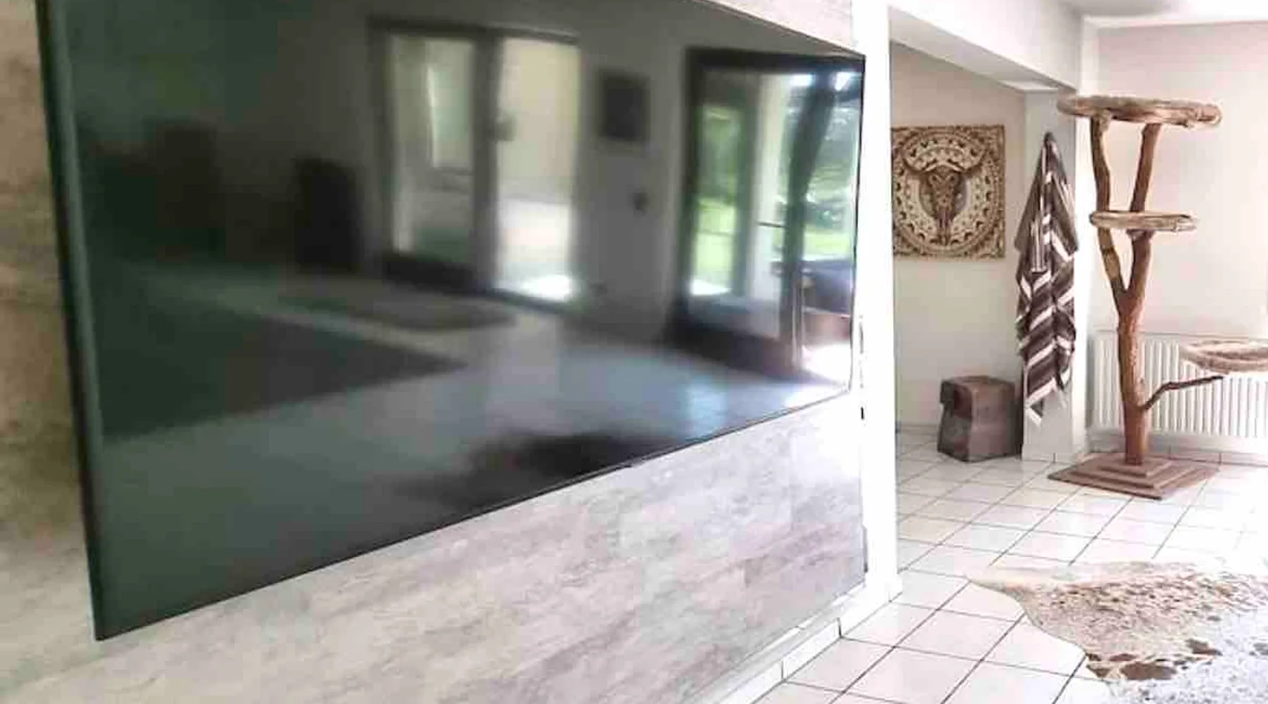 Enjoy the spacious garden at breakfast on the terrace and watch the deer in the distance while making plans for the day, whether by bike or car, the surroundings offer a lavish selection of sights and activities, for nature lovers nothing is left to be desired. After an active day, the house offers the possibility to relax in the sauna or hot tub or to relax on the large couch next to the fireplace and end the evening. The space Cozy property with sauna and whirlpool in a rural location with over 2000 sqm of garden and breathtaking distant views towards France. Despite the quiet location, a supermarket, pharmacy, gas station and bank can be reached in less than 10 minutes. Guest access Ample parking in the private yard. Other things to note Cats also live on the property, which are free outside. It is important for dog owners to know that their four-legged friends are welcome, but all large dogs or dogs with hunting instincts must remain on a leash outside so that all animals are always safe 🐕🍃🐈