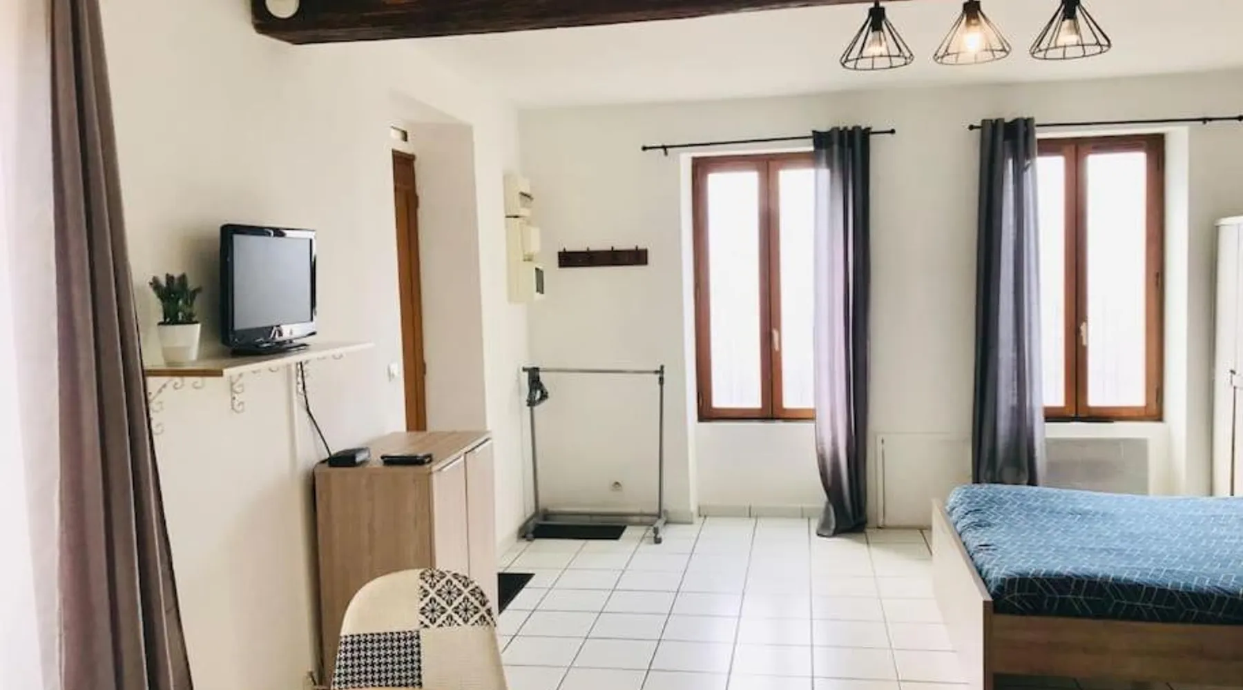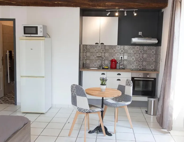 Comfortable Living Space: Le Studio du 14 parking gratuit et arrivée autonome in Auxerre offers a one-bedroom apartment with a fully equipped kitchen, washing machine, and free WiFi. Guests enjoy a view of a landmark and city or river views. Convenient Facilities: The property features a 24-hour front desk, free on-site parking, and a washing machine. Additional amenities include a dining area, sofa bed, and a seating area. Prime Location: Located 91 mi from Châlons Vatry Airport, the apartment is a short walk from the Abbey of Saint-Germain d'Auxerre and Auxerre Clock Tower. Nearby attractions include Auxerre Art and History Museum and Auxerrexpo Convention Center. Activities and Surroundings: Guests can enjoy kayaking or canoeing in the surrounding area. The property is highly rated for its comfortable accommodations and excellent facilities. This apartment features a kitchen, a seating area, 1 separate bedroom and 1 bathroom with a bath and a shower. In the fully equipped kitchen, guests will find a stovetop, a refrigerator, kitchenware and an oven. This apartment has a washing machine, flat-screen TV with cable channels, city views, as well as chocolate for guests. The unit has 1 bed.