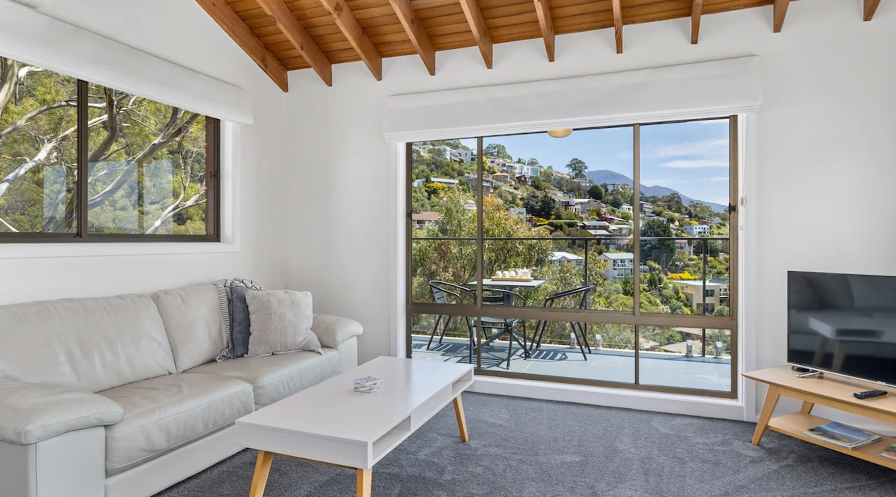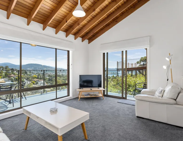 All our guests LOVE The Lookout. Come and see for yourself! "The Lookout" has stunning views over the river, bridge, and Sandy Bay, the city, the Derwent Valley and Mt Wellington. A fabulous location and so close to everything! Stylish furnishings and all fresh and new. With 2 bedrooms (queen beds in each), the apartment is suitable for couples, families, business travellers or a romantic holiday with your partner. A completely refurbished, chic apartment. The space Just read the reviews from our guests! I promise you will be super happy staying here as all our guests have been. "The Lookout" has undergone a complete refurbishment with new kitchen, bathroom, floor coverings and window furnishings, which has given a fabulous fresh vibe. It is stylish and spacious with a hint of Scandinavia and plenty of light and sunshine. The highlight is the fabulous outlook over the river, city and right around to Mt Wellington and even the wooded slopes of Mt Nelson. The sunsets and city lights are spectacular. Enjoy relaxing on the balcony at the end of your day exploring magical Hobart and surrounds. The apartment is all yours with a spacious living room, separate dining room, a fully equipped kitchen, a wonderful balcony, 2 bedrooms each with queen sized beds, separate toilet and a neat bathroom with washing machine. Your home away from home! The apartment is filled with sunshine and there are views from every room. "Stunning!", say our guests! There is excellent heating and cooling with a reverse cycle air conditioner, and electric blankets on the beds for those cool nights. Panel heaters in bedrooms. Smart TV is in the living room and free wifi too. Free on-site parking. Holiday with family or friends, or just the two of you. Business trips are so much nicer when you have a home to stay in. Guest access The entire apartment is available to you. There is coded entry and we provide you with the code and other directions prior to your arrival by email. Guests have access to the whole apartment, including a fabulous balcony overlooking the incredible views. Other things to note This is a beautiful apartment and we have refurbished it completely so you can have a wonderful holiday in your home away from home. We are Airbnb Superhosts. You can be assured of a great experience staying at The Lookout. Registration Details PLN-16-1097