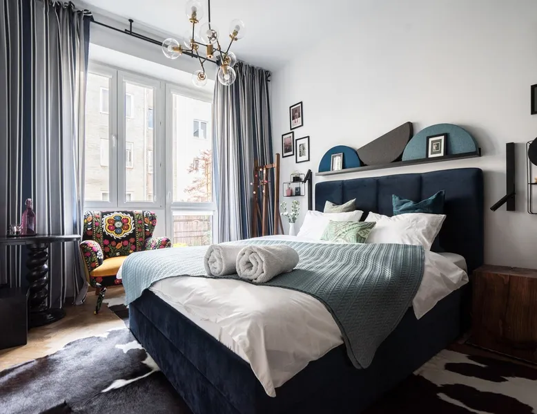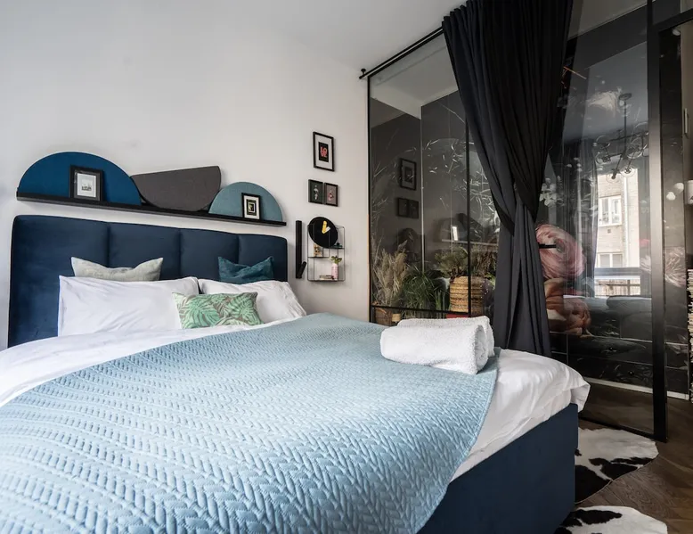 For those who value art, eclecticism. Stylish room with a balcony, a comfortable bed. Artistic details. Designer schnyt. Private bathroom for guests. Quiet, well connected, close to the center, Chopin Airport. Next to Warsaw Zachodnia Station. Stay at this chic and stylish room with balcony, full of art, design and comfortable big bed. Quiet and pleasant. Private bathroom. Flat on the 1.fl. no lift. Close to the center, West Warsaw station, EXPOs, Chopin Airport. The space Very atmospheric and quiet. With a variety of amenities (libraries, books in different languages, artistic albums, design-full magazines, guides to Poland, Warsaw, and the world). Top location. Very close to the center. 10 minutes walk from West Railway Station, 16 minutes by local train from/to Chopin Airport. Very convenient public transport available to different parts of the city, bikes, shops, theaters, parks. // In this place you can feel very special. Cosy room, with various facilities, books in different languages, art albums, fashion and design magazines, lots of guides etc. You can play here sticks, memo games and practice yoga. Art and design you can buy or order as an individual personalized gift from Polish artists. Great location. Walking distance from West Railway Station - 10 minutes. Close to the city center. Trams, buses, taxis, bicycles. 16 min. by a local train from/to the Chopin airport. Guest access Lockable separate room. Common entrance and hallway through which there is access to private guest bathroom. // You can lock your room. Guest bathroom is located outside on the shared corridor. During your stay I'd love to tell you about nearby attractions or what to see in the city right now. For those interested in art and design, I offer private gatherings with artists and or with the owners of selected art galleries. I will be more than happy to tell you about nearby attractions or what is worth seeing in the city. And for those who are interested in art and or design, I can offer private meetings with artists and the owners of selected art galleries. Other things to note Iron, dryer, extra duvet, blanket, special pillows, umbrellas, yoga mat, first aid kit, cosmetics, toothpaste - if needed, ask what I can help with, everything is in place. Ask if you need an iron, hairdryer, additional duvet, blanket or special wellness pillow, an umbrella or yoga mat or the first aid kit, even toothpaste and some extra cosmetics we have ;-) just let me know.