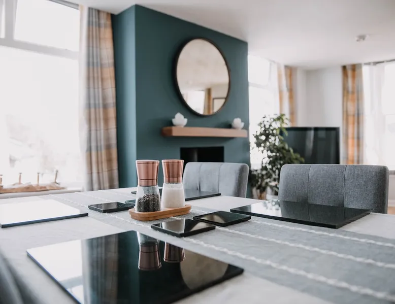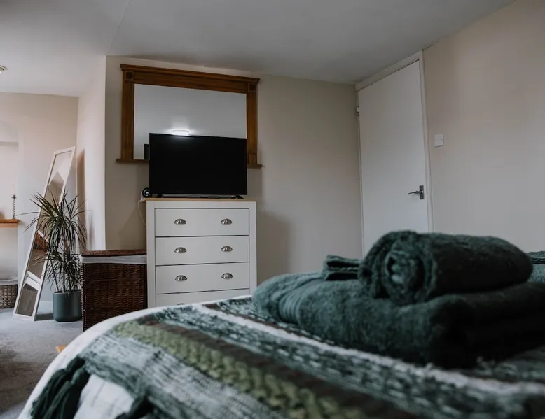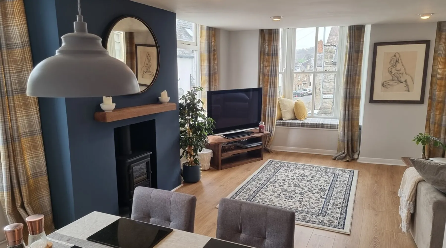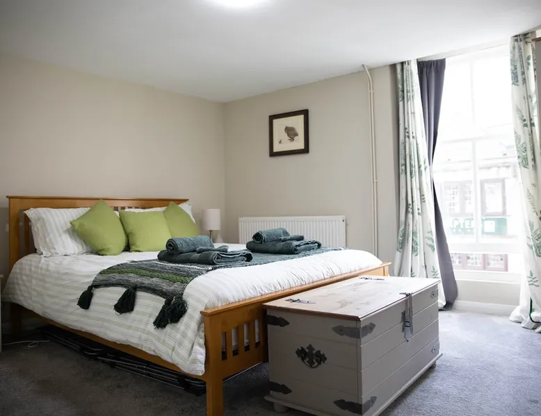 Enjoy Hay-on-Wye to the absolute fullest, in this cosy, spacious corner apartment - situated in the heart of the town. Shops, restaurants, cafés and gallery's are all just a stone's throw away! Enjoy watching the hustle of hay sat in the bay windows with a glass of wine, or go out and explore it for yourself! A mere 4 minute walk to the river Wye, where you can enjoy canoeing, fishing, swimming or just a casual stroll on the river path. The space Large bedroom with quality king size bed. Chest of drawers and a cupboard with hangers, and plenty of mirrors. Also has a TV, fan, alarm clock, iron, steamer and hair dryer! Open plan dining room/lounge with seated bay windows, creating heaps of natural light. With a comfy 'L' shaped sofa to relax on with a glass of wine whilst watching the tele, (Netflix, Amazon prime and Sky). Fully equipped kitchen with espresso machine, oven, gas hob and fridge freezer. Powerful shower with loo and basin - toiletries provided! Easy to use central heating. Blue tooth speaker. WIFI - with good speed!