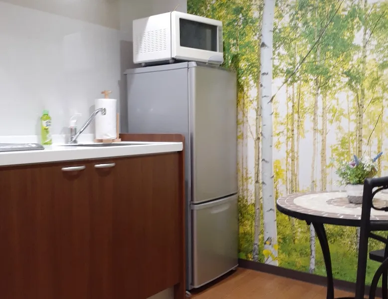 We reduce room partitions and making a large space in the room. The dining kitchen side is a calm space with the image of a forest. The bedroom is also equipped with an air conditioner on the ceiling for a comfortable space. The roof of the Japanese house seen from the bedroom is very beautiful. The gentle lighting in the room will make you feel comfortable. The neighborhood of the room is a residential area like little Kyoto. The space The neighborhood of the room is a residential area like Little Kyoto. There are old houses and New houses. It takes 12 min to the room from the main station on foot. And there are many big supermarkets, restaurants, and places to eat in the main station area. Guest access This room is a private room. so a guest can use all room spaces. Other things to note There is a stable and fast-speed Wi-Fi in the room. If additional guests stay during the stay, An extra guest can stay for 1,500 yen per person per night. If you make a reservation for two people from the beginning, the price will be 1,000 yen per person, per night. Registration details M270022420