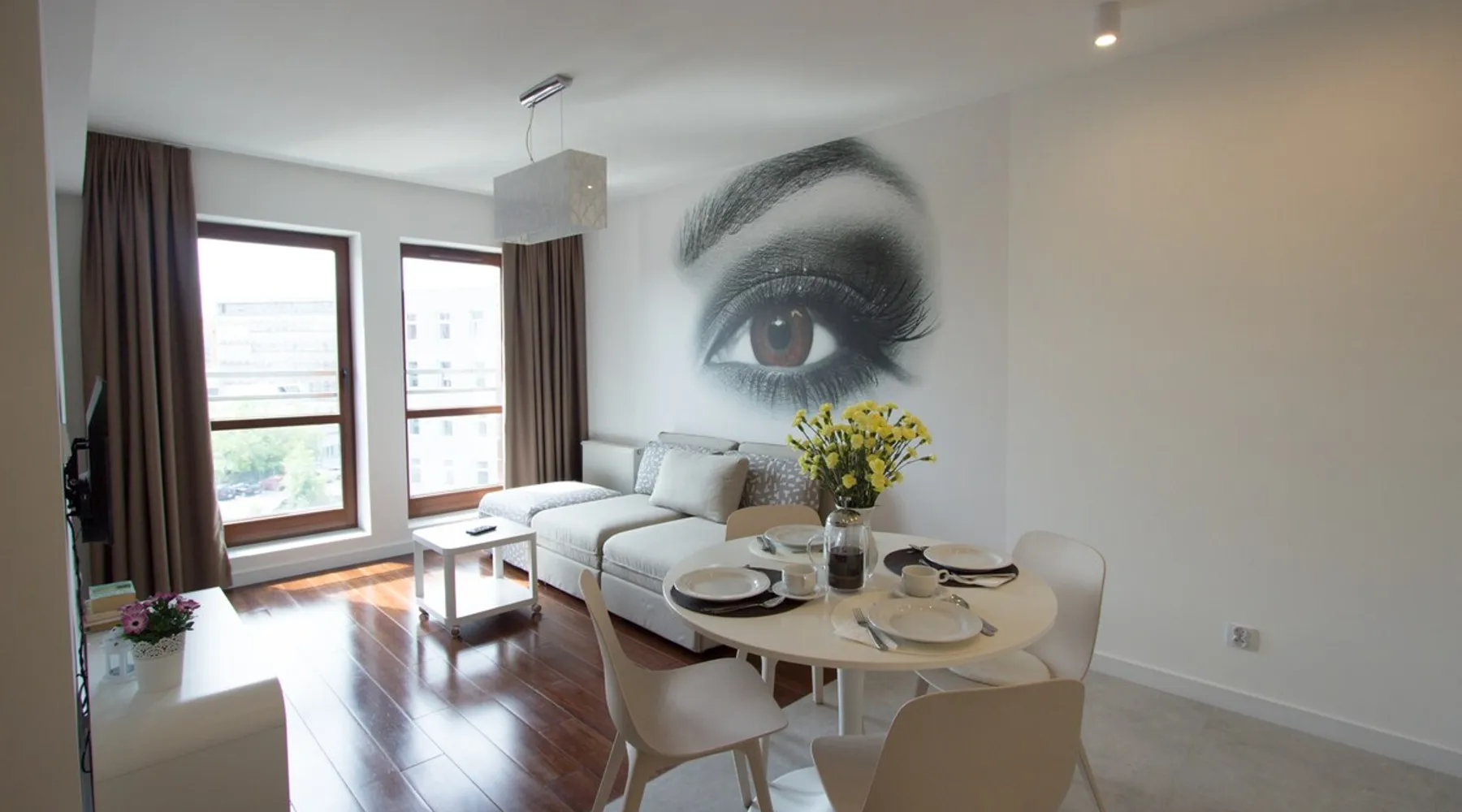 Finished to a high standard, Brown Apartment is located in a luxury apartment building with 24/7 security, a gym, and an indoor pool. The apartment is located in Zabłocie, about 300 meters from the Oskar Schindler's Enamel Factory and the Museum of Contemporary Art, it offers free wifi, satellite TV and private parking. The apartment has a living room with kitchenette, bedroom and bathroom. Guest access The kitchen is equipped with high quality equipment: fridge-freezer, dishwasher, microwave with toaster, induction hob. The living room has a flat TV with satellite TV. The apartment also has a washer and dryer and ironing board.