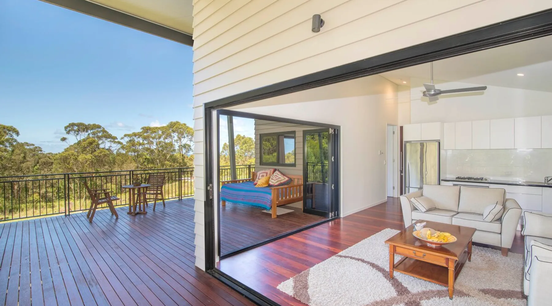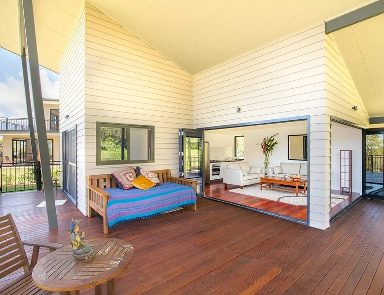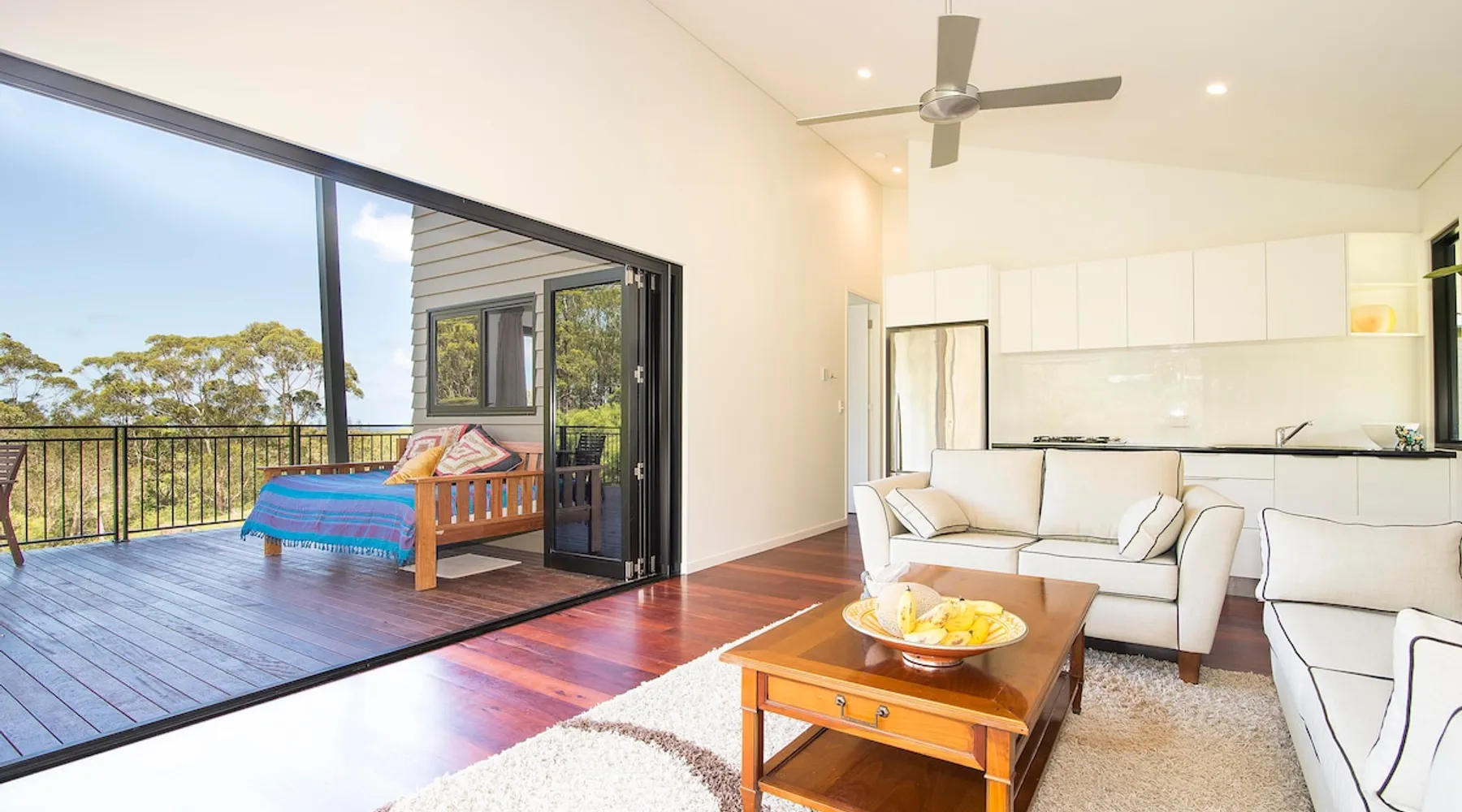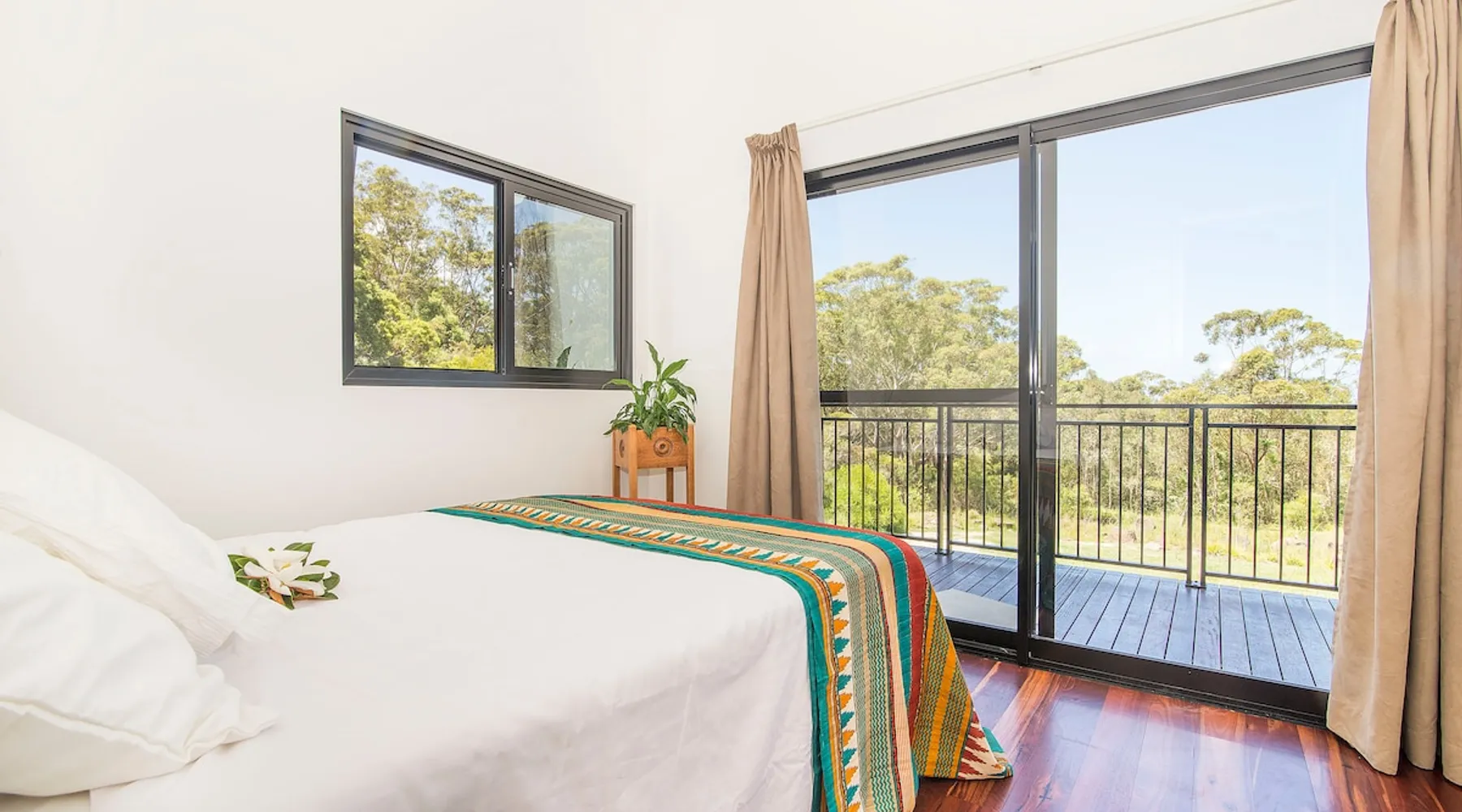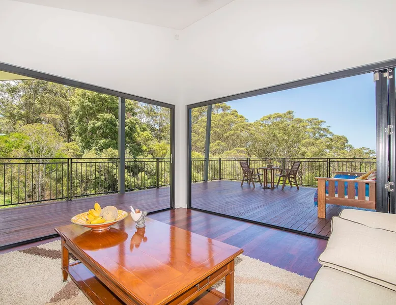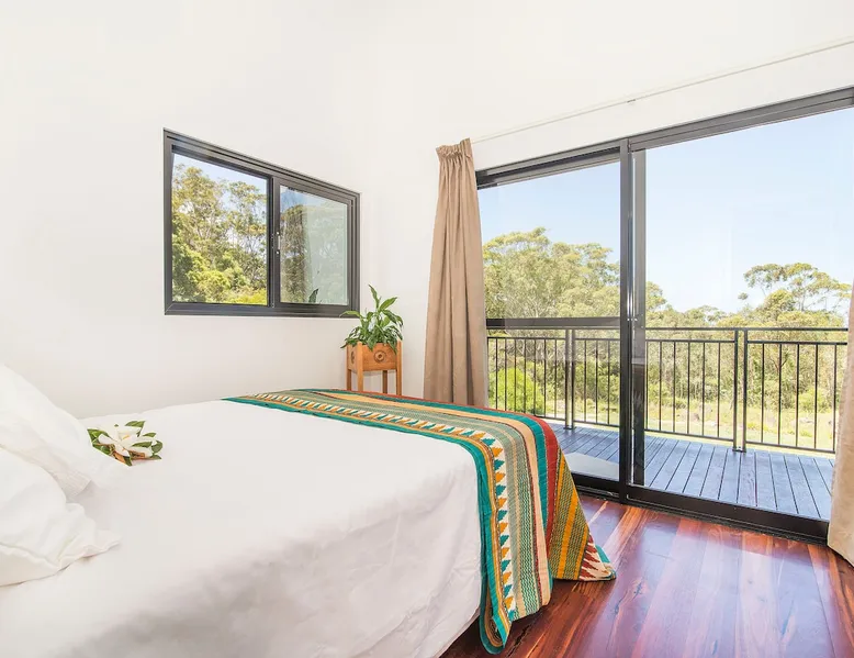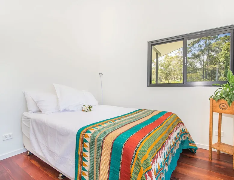 Jugoon, architect designed cabin with bush and ocean views. Enjoy large living areas and huge private balcony with 2 very comfortable king single day beds. The land, classified as Land for Wildlife, is surrounded by national parks. Walk to Broken Head beach or the Suffolk Park Bakery. No where else in Byron will you find such privacy and at the same time proximity to everything Byron has to offer. All you need for a wonderful peaceful break. The space The cabin is on 6.77acres of beautiful land with extensive close views to the ocean and the bush. You have the best of both worlds. You can walk to Suffolk Park shops and pub in 5 minutes, walk to Tallow Beach in 15 minutes or walk through the bush along the now unused Taylors Lake Road to Broken Head in 20 minutes You can ride a push bike to Byron centre in 20 minutes. Guest access Guests will have access to cable tv services, internet, a washing machine and the 16metre lap pool. For a small fee (around $20) you can email a shopping list and have your favourite food waiting for your arrival. Other things to note The walk down Taylors Lake Road which forms one of the property borders is quite an experience. It can take you to tea tree lakes or the sea. Registration Details PID-STRA-31088