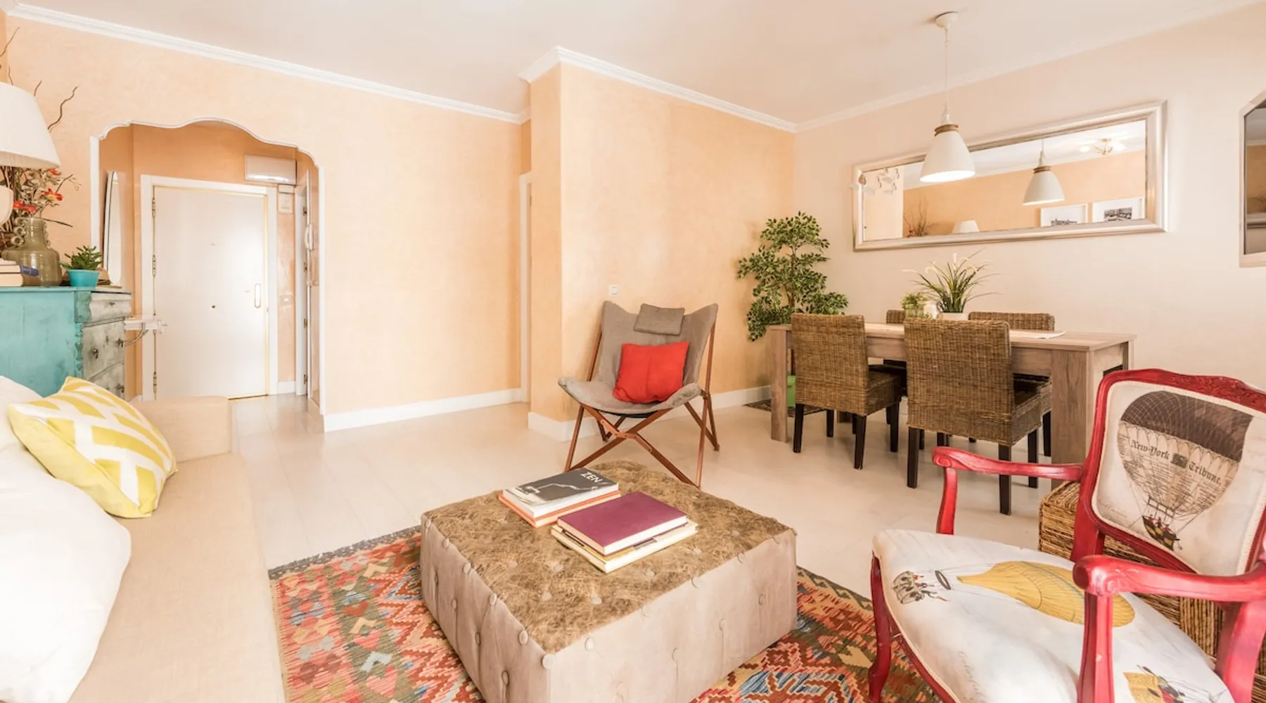 A fantastic apartment , in the center of Madrid 2 bedrooms, 1 bathroom, elevator, air, WIFI ... The best neighborhood to discover Madrid You will love ! The space The apartment is beautiful, tastefully decorated. It has a bedroom with a double bed, another with a single bed, a living room with a good sofa bed, a bathroom and a kitchen. Guest access It has air conditioning and heating. It features a microwave, oven, washing machine, fridge, hairdryer, toiletries, towels, bed linen, kitchenware, television, books, Two sets of keys Other things to note Of course, we provide sheets and towels, and other things like iron, dryer, bath products, maps... If you think something is missing let us know, we will be happy to receive your opinion in order to improve the floor.