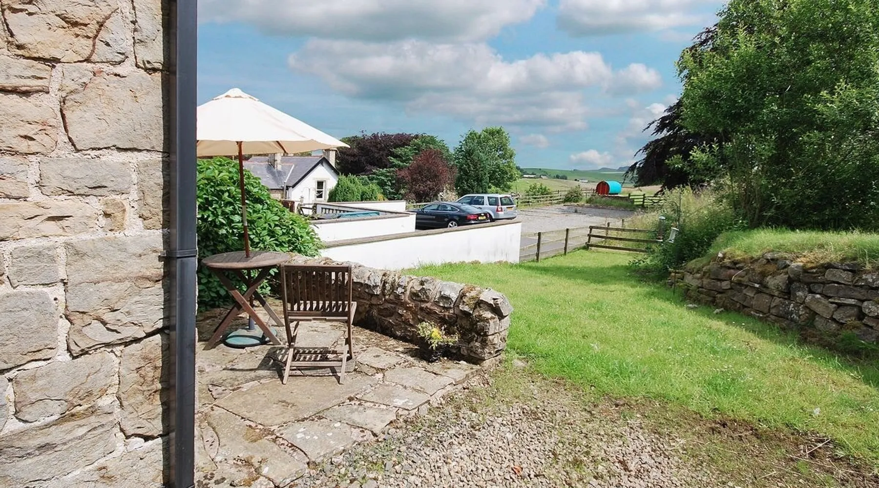 This delightful and cosy, single-storey, detached holiday cottage has been furnished to a high standard and has pleasant views across open countryside. It sits on the edge of the village, on the line of Hadrian’s Wall. We have taken the opportunity during the latest lockdown to have works to ext. , replacing elderly night storage heaters with oil filled electric radiators providing efficient / flexible heating, redecorated internal and look forward to welcoming guests back. The space The sitting room has views across the countryside and the crags of the '9 nicks of Thirlwall along which Hadrian's Wall runs. There is a wood burning stove in this room and oil filled radiators in all rooms. It has a separate kitchen / dining room ... Electric hob and oven, microwave, fridge, washing machine. There is a double bed room and a single bedroom. Bathroom with electric shower over bath. An outdoor shed with padlock stores portable Bbq and fuel (included) for the wood burner and also has adequate space for three bicycles.. The interner connection has recently been upgraded to hyperfast fibre broadband. Guest access The cottage is all on one level with just the small front doorstep to negotiate. Outside is a gravelled are for parking, adequate for three cars. There is a small paved terrace at the far end with garden table and chairs and a modest grassed area beyond all with views over the countryside. Other things to note The nearest pub, the Samson Inn, is a few minutes walk away ... about 300 yards, serving real ale and meals. the Samson closed fir a period but has now been purchased by the community and re-opened on October 2023. There are a number of other pubs and restaurants within a four mile radius. The Roman wall lies just yards away ... The cottage is within the zone of the site of the scheduled monument ! The Hadrian's Wall National Trail passes about 50 yards away. It is also only a mile and a half away where the Pennine Way National Trail joins the Hadrian's Wall Trail and they overlap for the next 10 miles or so heading west. The Roman visitor sites of Birdoswald (other side of Gilsland about 2 miles away), The Roman Army museum (3miles), Housesteads, Vindolanda (both ~8miles) and Chesters (~16miles) are all short driving distances away. The walking in the area is superb either on sections of the Wall or the countryside and along the rivers Irthing or South Tyne. Several circular walks are possible straight from the cottage. Haltwhistle Golf course is only a mile away and at least 5 other courses within 20 mile radius.
