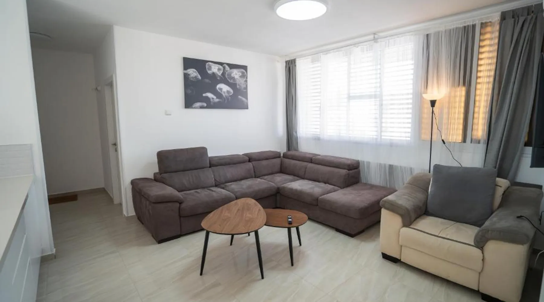 Spacious Accommodations: Netanya Central SEA & SHOP offers a spacious apartment in Netanya. The property features two bedrooms, a living room, and a bathroom, providing ample space for guests. Modern Amenities: Guests enjoy free WiFi, air-conditioning, a kitchenette, washing machine, and a work desk. Additional amenities include a sofa bed, refrigerator, microwave, TV, and kitchenware. Convenient Location: Located 26 mi from Ben Gurion Airport, the apartment is a 13-minute walk from Onot Beach. Nearby attractions include Park HaYarkon and Tel Aviv Museum of Art, each approximately 19 mi away. This spacious apartment consists of 1 living room, 2 separate bedrooms and 1 bathroom with a hairdryer. Guests can make meals in the fully equipped kitchen that features a refrigerator, kitchenware and a microwave. The air-conditioned apartment provides a flat-screen TV, a washing machine, a coffee machine and a wardrobe. The unit offers 4 beds and 2 futons.