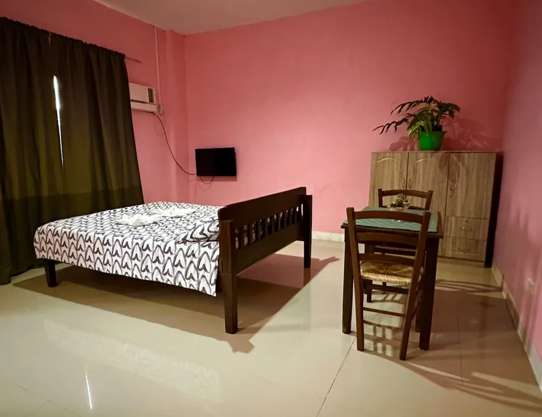 Newly built apartment in the heart of Kabankalan city. Big, very spacious, cozy and affordable place. The pink room consists of aircon, wifi and own toilet . The space Can accommodate up to 6 people in a room subject to additional fees. During your stay The hosts are available to answer you through messages, phone and emails. We will try to answer you as soon as possible. Other things to note The place is very quiet at night. Nearby security is available. A safe place.