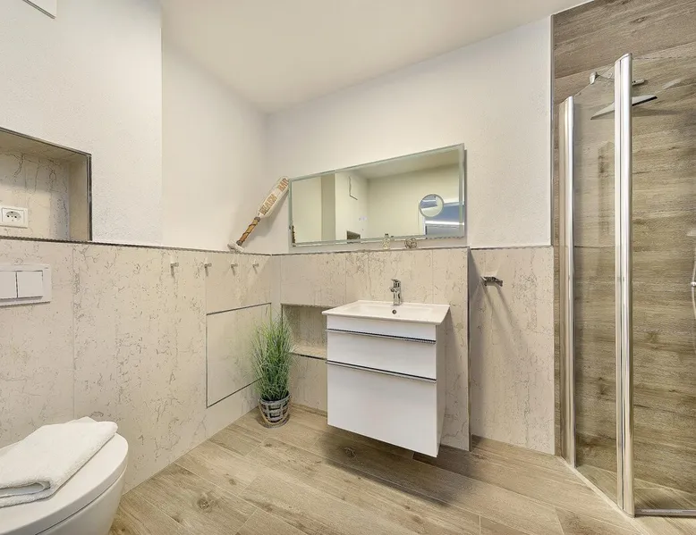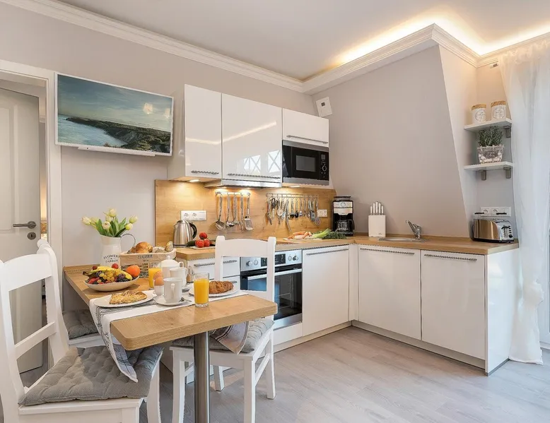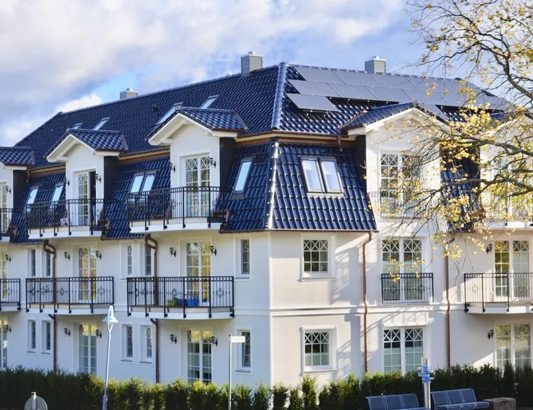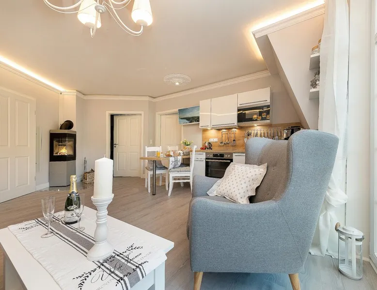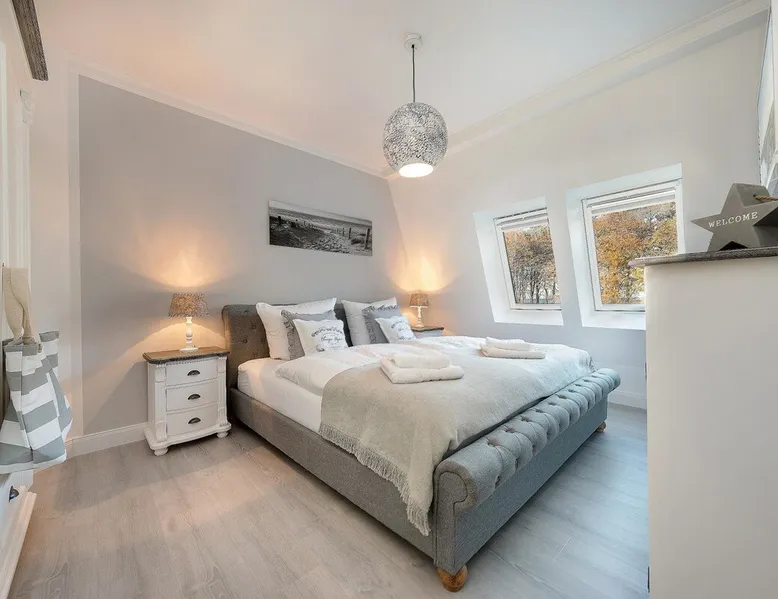 Oceanfront luxury with sauna and fireplace: Fully automatic coffee machine wellness shower 56 m² attic for 4 people elevator 1st bedroom with double bed + TV 2nd bedroom 2 single beds next to each other (2x 90 x 200 cm mattresses) + TV large balcony fireplace washing machine Dryer wellness area with sauna and TV in the attic Ocean view right on the beach Charging station for electric cars Other things to note Want to go on vacation by the sea and relax? Whether with family or friends, here you will find your dream vacation on the beach and will go back home relaxed. All areas of Villa Strandblick are also open to our guests with movement restrictions. Whether you want to book an apartment with sea view in the attic or use the wellness area, you can easily reach everything by elevator. All apartments are also easily usable for wheelchair users through the wide doors. This 3 room apartment offers you 2 bedrooms with flat screen TV, a cozy living/dining room with fireplace for romantic hours and a large balcony to enjoy the view. In the large master bedroom there is enough place to set up a cot next to the marriage bed. In the 2nd nursery there is a nice new bed in the Chesterfield look. You can use this as a bunk bed and take off. So another person can sleep comfortably on 90x190. Your sleep is especially important on vacation, so you can regenerate. In your apartment, you will find a good night's sleep in the luxurious Chesterfield bed. Villa Strandblick in the Baltic Sea health resort of Zingst offers a unique 1st row apartment on the beach with sea views. After long walks on the beach, you can relax in the small but fine wellness area, which is located in the attic. There you can relax in the sauna with sauna windows. The back infrared heaters are especially recommended for back problems. Family-run company, with great love maritime furnishings. At Villa Strandblick you will find family care. We organize you even before your arrival, leisure trips, concerts, massages, crane tours, sailing trips. The center can be reached in a few minutes along the beach. We look forward to welcoming you to our Villa Strandblick and to preparing you for an unforgettable holiday. Your family von Klitzing