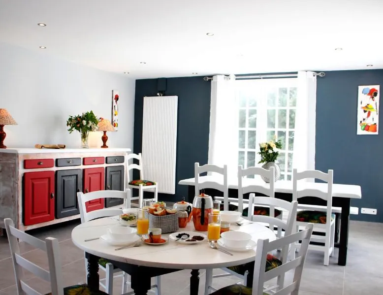 Comfortable Accommodations: LA VEUZAINE in Onzain offers family rooms with private bathrooms, equipped with modern amenities including free WiFi, air-conditioning, and soundproofing. Each room features a dining area, kitchen, and garden views. Outdoor Spaces: Guests can relax on the sun terrace or in the garden, enjoying the serene surroundings. The property includes an outdoor play area, seating areas, and outdoor dining spaces, perfect for leisure and socializing. Breakfast and Activities: A continental breakfast with juice and fruits is served daily. The property offers bike and badminton equipment hire, walking and bike tours, and free on-site private parking. Highly rated for its breakfast, host, and quietness. Guests will find a stovetop, a refrigerator, a dishwasher and kitchenware in the well-equipped kitchen. The double room also comes with a barbecue. The double room features soundproof walls, a coffee machine, as well as a private bathroom boasting a shower and a hairdryer. The unit has 1 bed.