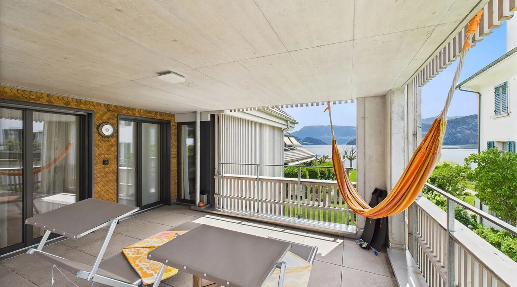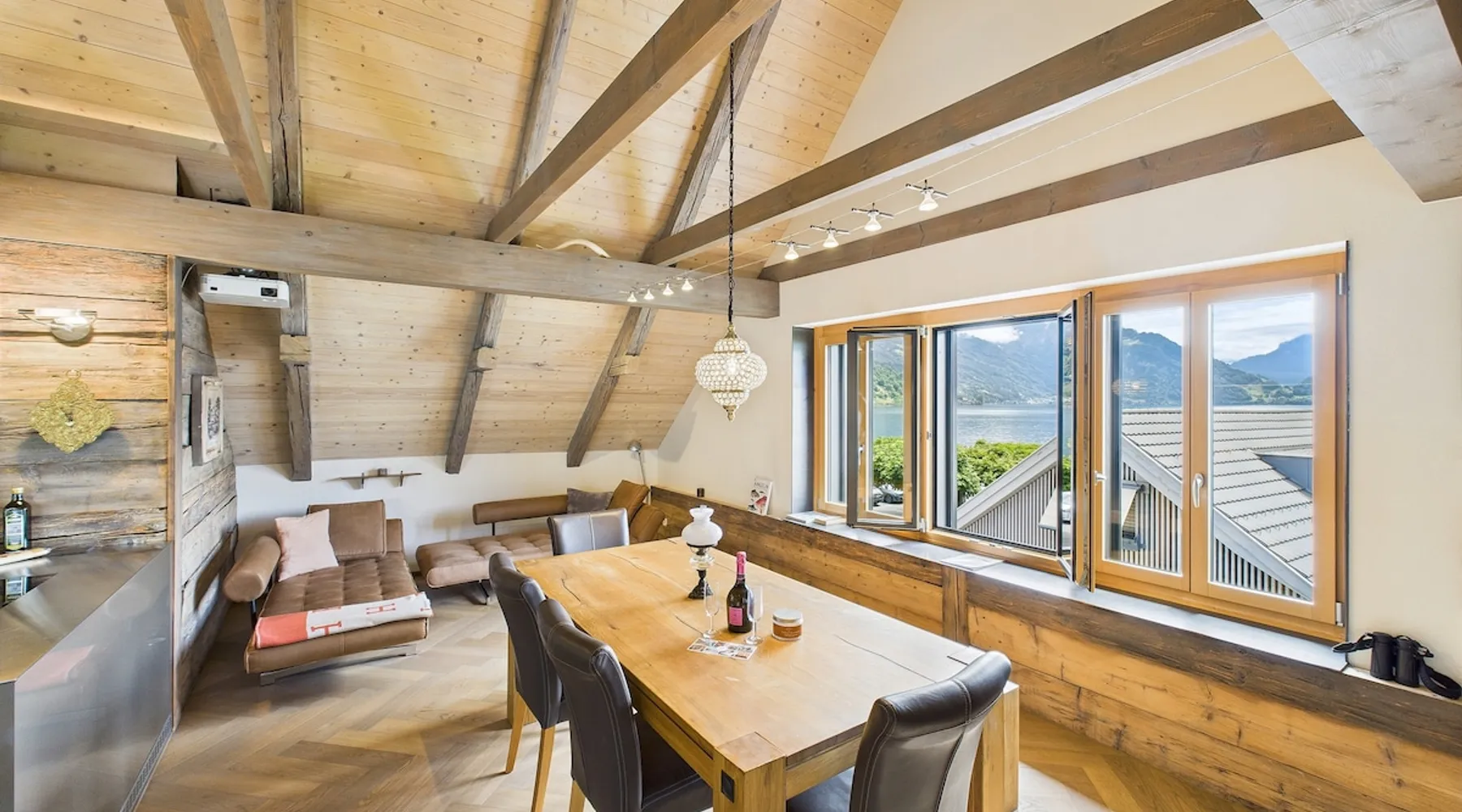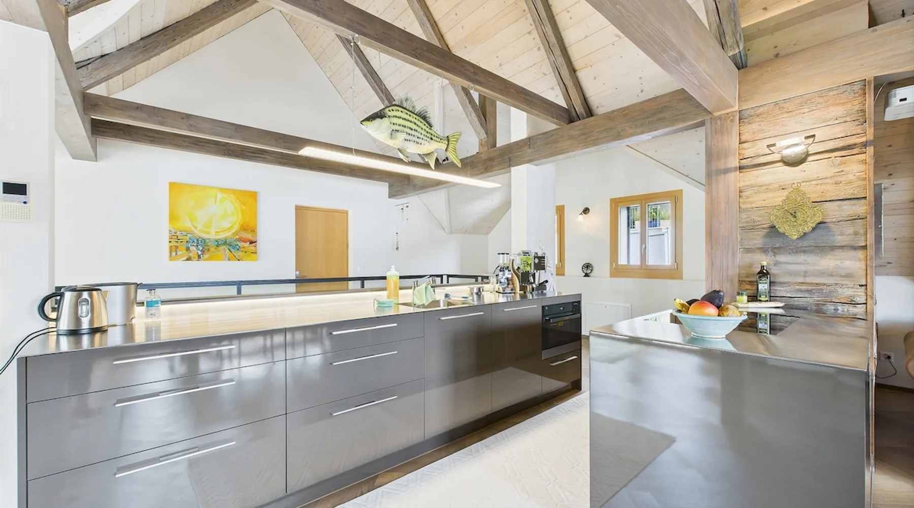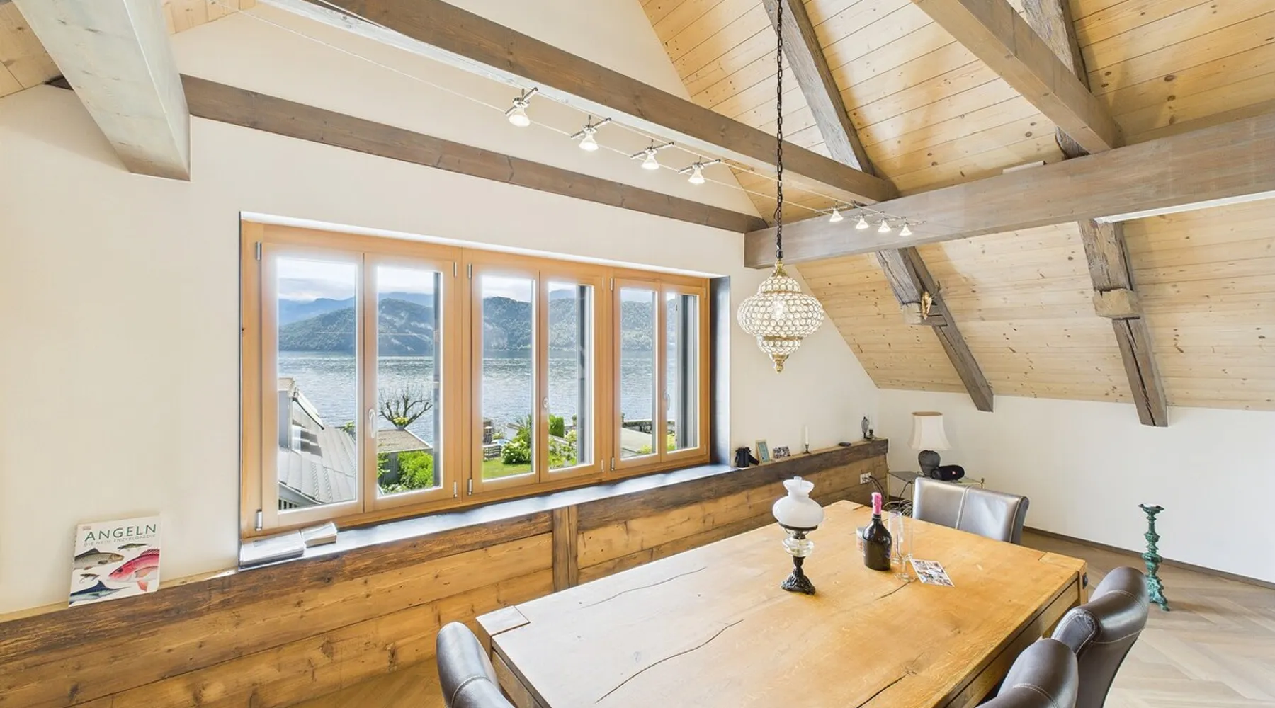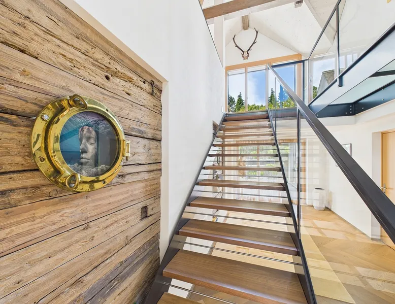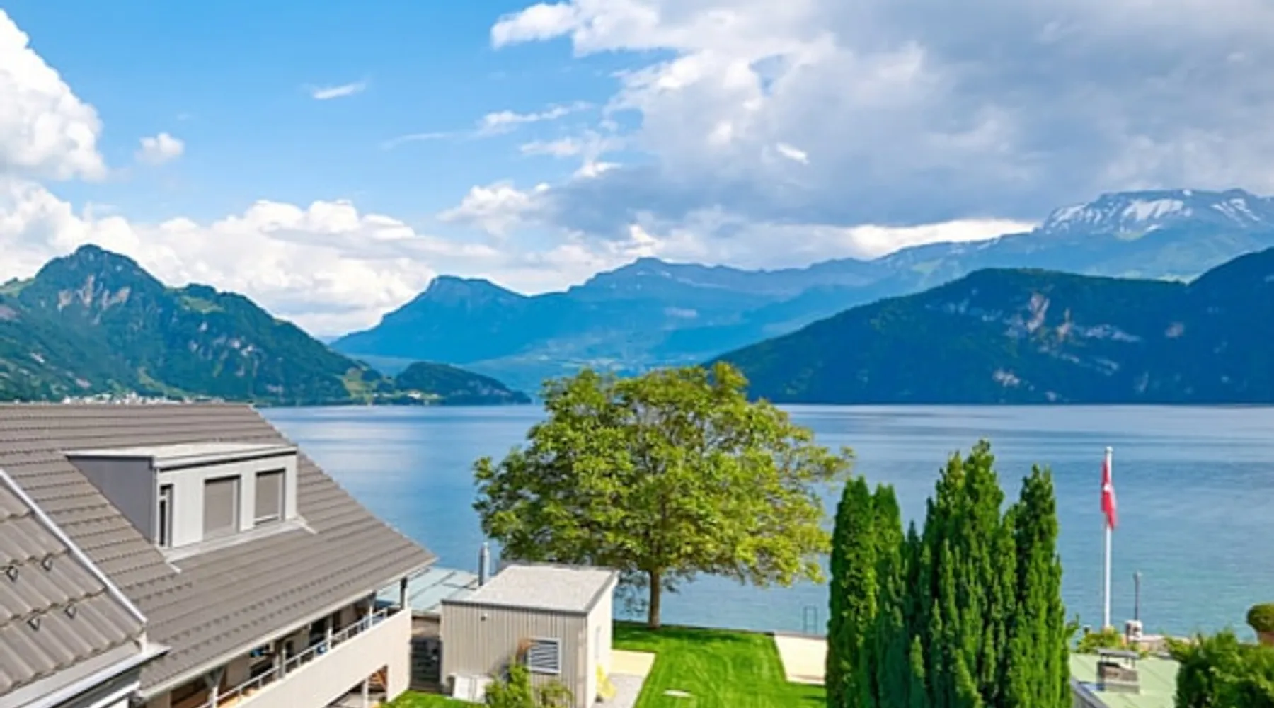 Exclusive and charming guesthouse right in the heart of Weggis/Hertenstein. In the former fishing you will experience a feeling of the extra class and it offers you absolute relaxation directly on the lake. The entire gallery, including the living room and kitchen, is inviting and is flooded with sunshine or, in the event of rain and storm, always a haven of peace in front of the window. The open kitchen/living room is very modern, chic but also cozy. It shines through timelessly elegant furnishings with real chics. The space The rooms impress with a unique mixture of design and function. Both rooms are very spacious and with direct lake views. Guest access Two parking spaces available right next to the house (medium and left parking). Other public parking spaces are available directly below the property (blue zone). These guest parking spaces are reserved for you. Other things to note In our duplex apartment, you are surrounded by aesthetic design as well as practical functionality.
