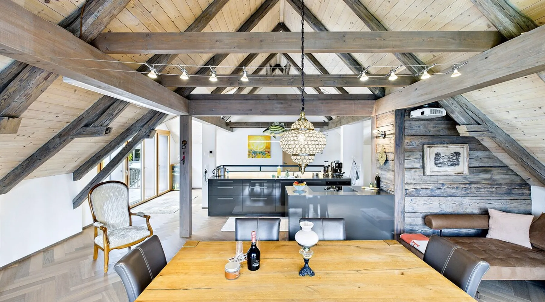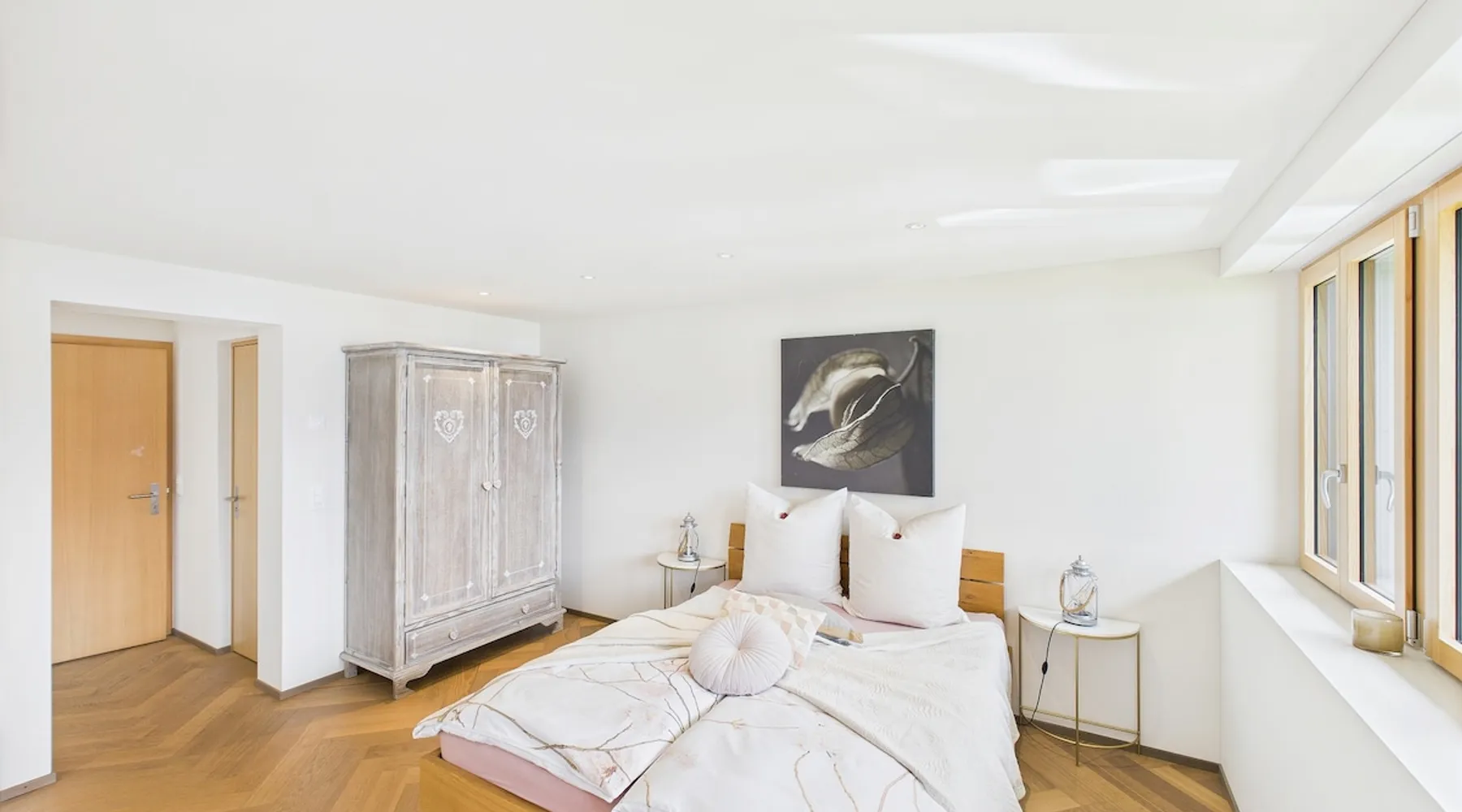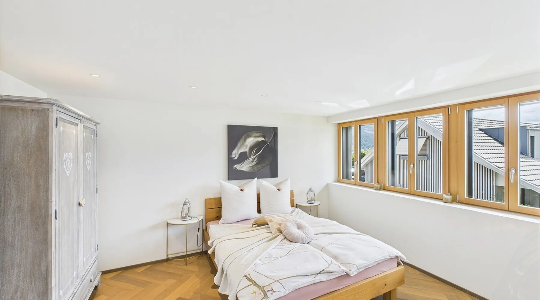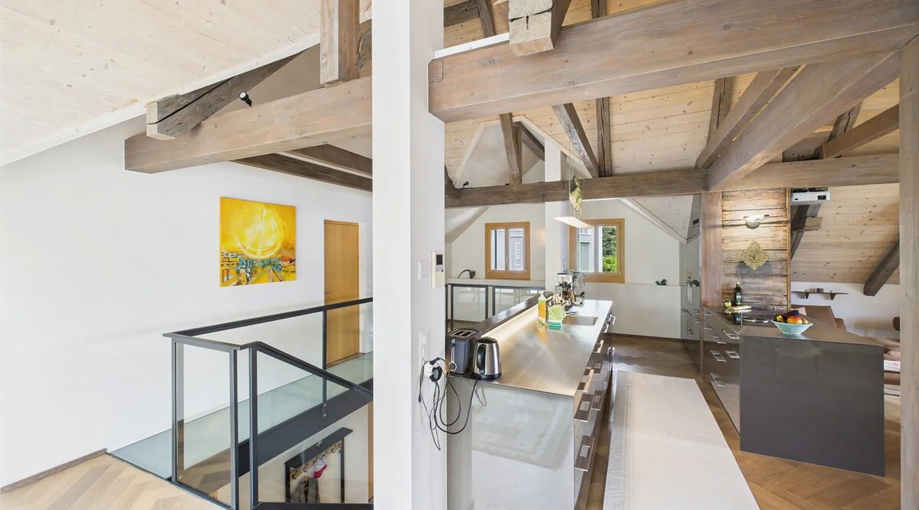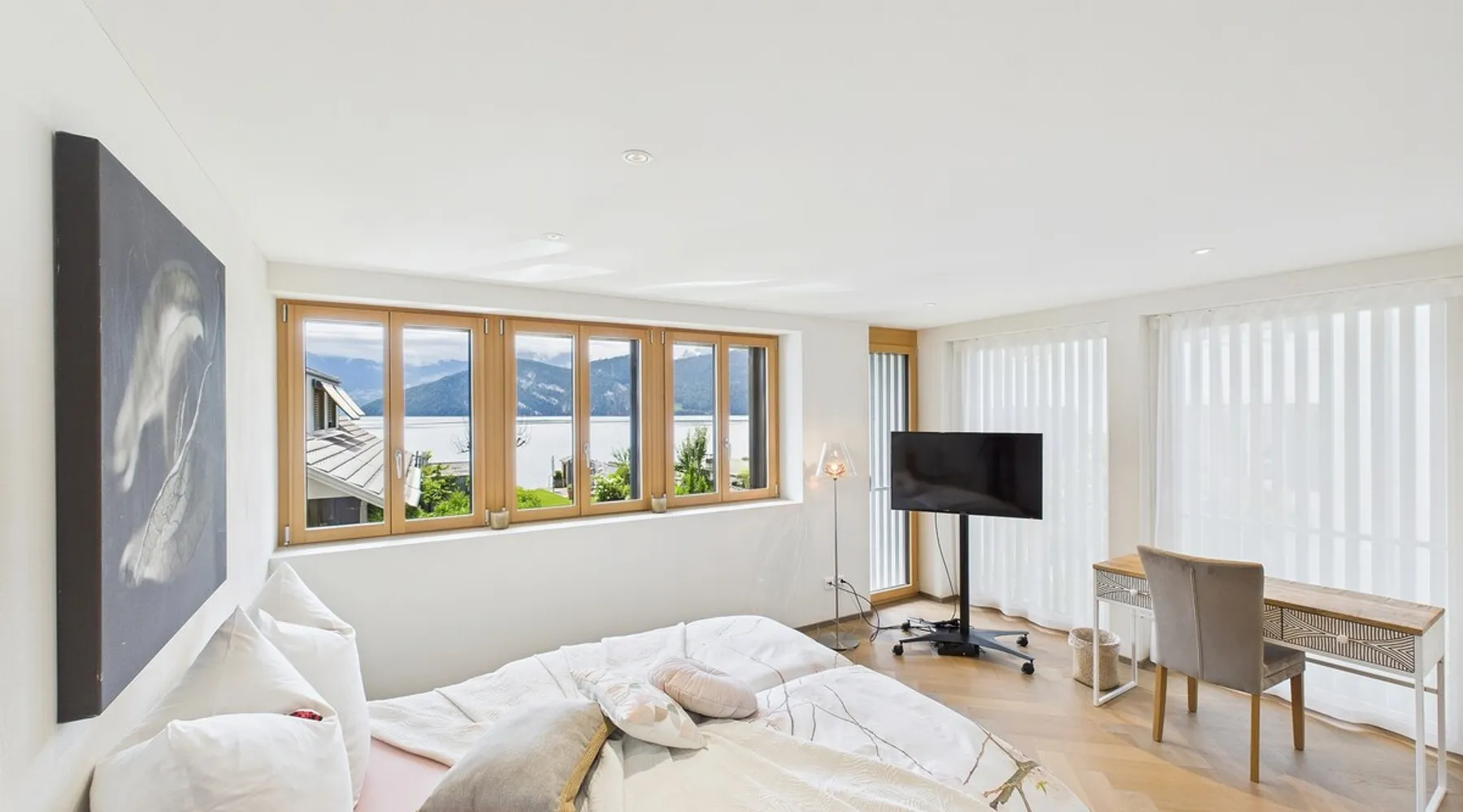 Exclusive and charming guesthouse right in the heart of Weggis/Hertenstein. In the former fishing you will experience a feeling of the extra class and it offers you absolute relaxation directly on the lake. The entire gallery, including the living room and kitchen, is inviting and is flooded with sunshine or, in the event of rain and storm, always a haven of peace in front of the window. The open kitchen/living room is very modern, chic but also cozy. It shines through timelessly elegant furnishings with real chics. The space The rooms impress with a unique mixture of design and function. Both rooms are very spacious and with direct lake views. Guest access Two parking spaces available right next to the house (medium and left parking). Other public parking spaces are available directly below the property (blue zone). These guest parking spaces are reserved for you. Other things to note In our duplex apartment, you are surrounded by aesthetic design as well as practical functionality.