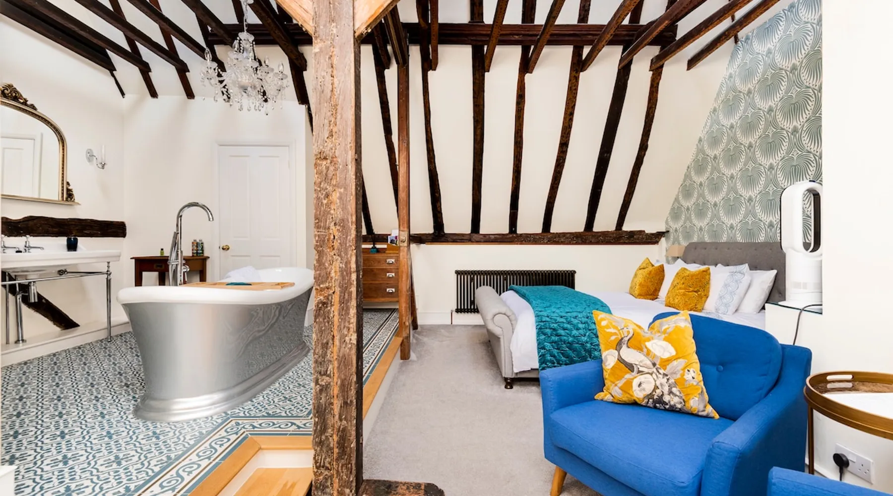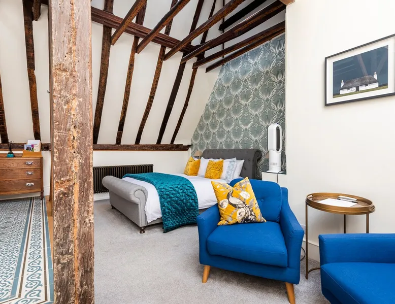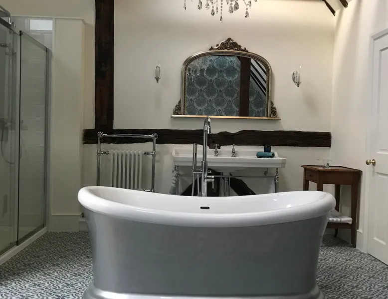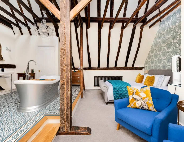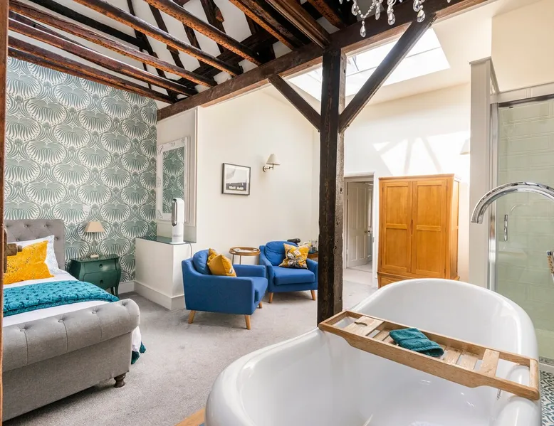 Welcome to Number 5 Rye. This beautifully refurbished large bedroom with superb open en-suite is the perfect place for anybody wishing to spend a couple of days or more visiting the historic and ancient town of Rye. The bedroom consists of a king size bed and seating area, whilst the open en-suite boasts a magnificent double ended slipper bath, extra large shower and private enclosed toilet. The perfect space for that extra special romantic treat or special occasion getaway. The space A lovely light and airy room in one of the oldest rooms of our property, offering private space for visitors to Rye. Completely remodelled and refurbished in 2018, the room includes a king sized bed, large wardrobe, chest of drawers plus tea and coffee making facilities. The large open En-suite private bathroom includes a freestanding slipper bath, large separate shower and enclosed toilet. Guests may also make use of a guest sitting room with views across the rural landscape. Leading directly off the guest sitting room is a roof terrace which guest are more than welcome to use to watch the gorgeous sunsets of Rye. The TV with DVD player are also available. This is a quality home from home in our boutique bed and breakfast at Number 5 Rye. During your stay We are here to help you enjoy your visit to Rye and are on hand if needed. Other things to note Please note the property is located on the first floor and access is via stairs from the ground floor. Due to the configuration of the house, we are unable to accept guests with babies or children. Weekend bookings require a minimum of 2 nights. Parking is available from £2.50 per day in the Cattle Market Car Park, which is located approximately 2 minutes walk away. Alternatively parking is also available at Rye Station. Bicycles can be securely stored in the property. If driving, when arriving drop off your bags at our front door and then go and park your car in the car park which is 2 minutes walk from our house.